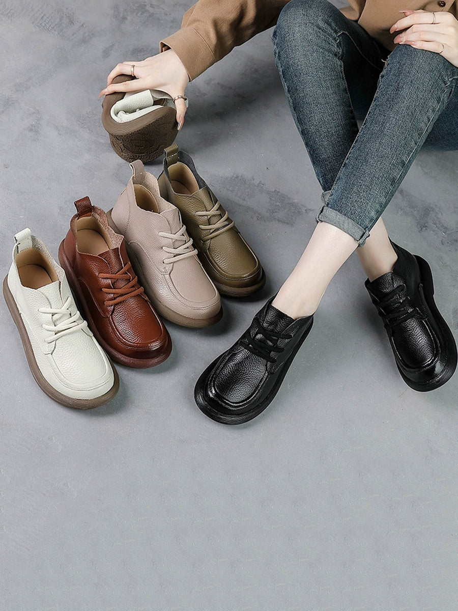 Dámské zimní boty na nízkém podpatku z pravé kůže
