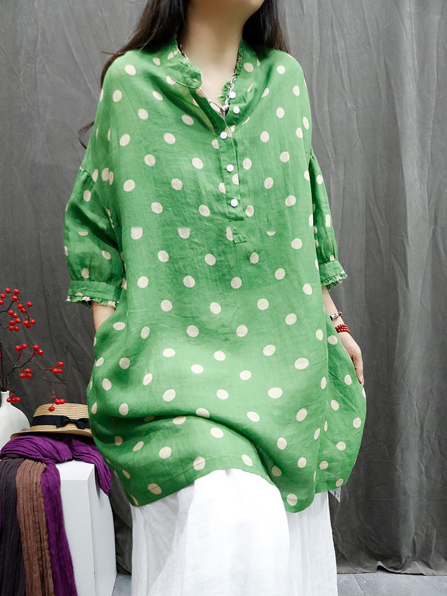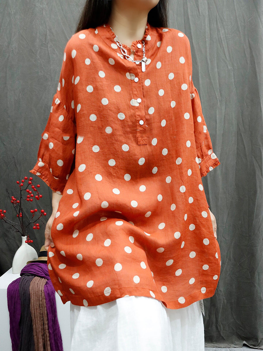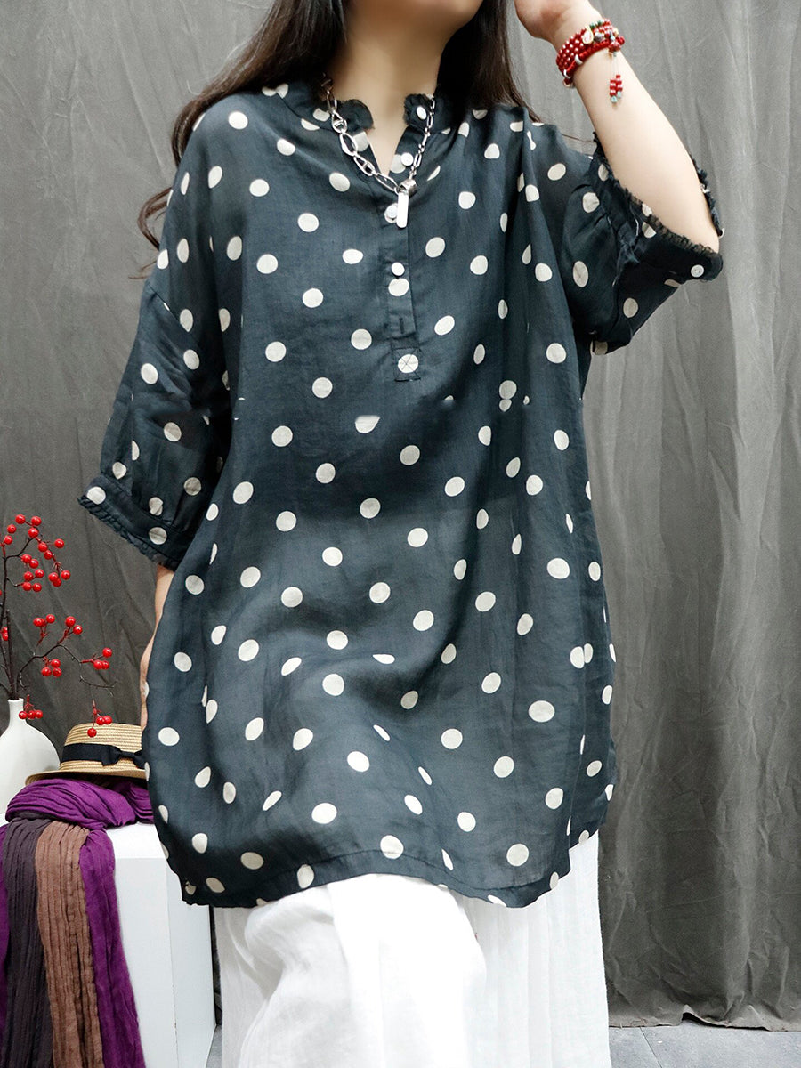 Dámské letní tričko s uměleckým puntíkem a výstřihem do O-neck, 100% ramie