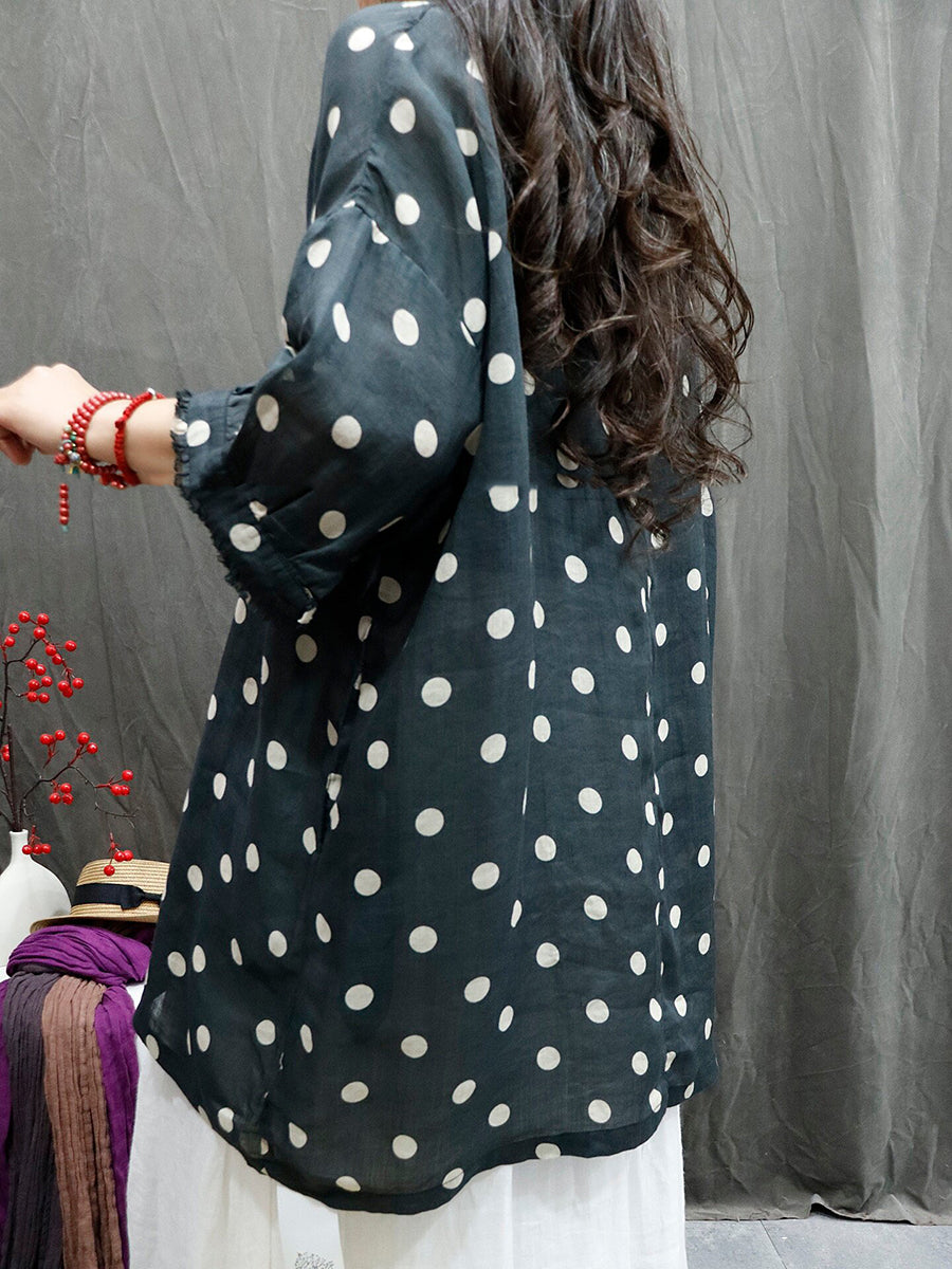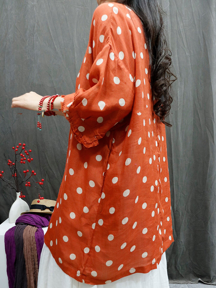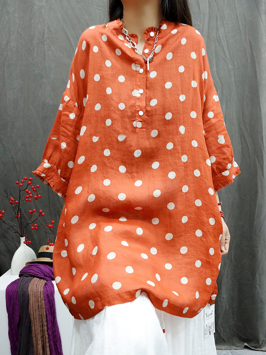 Dámské letní tričko s uměleckým puntíkem a výstřihem do O-neck, 100% ramie