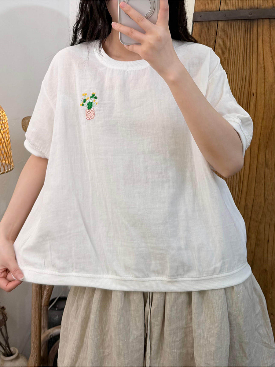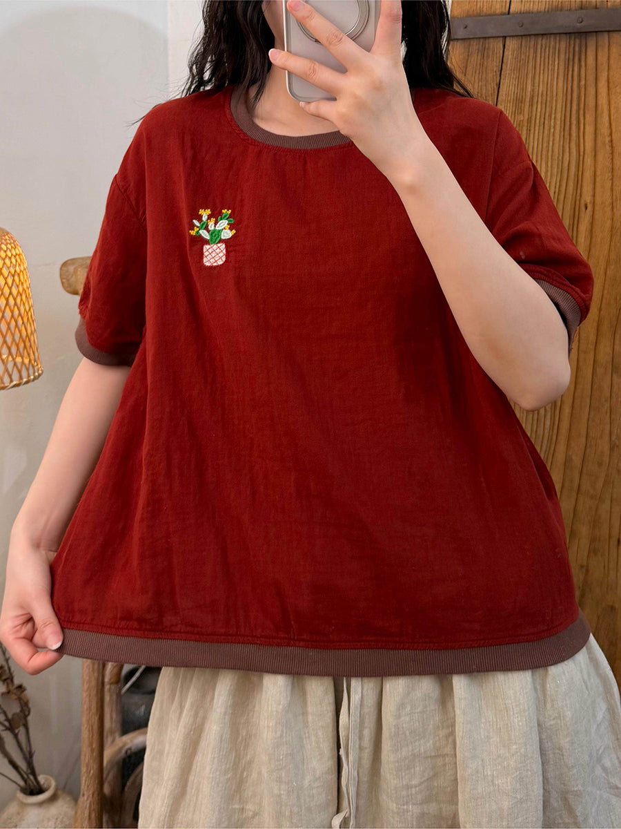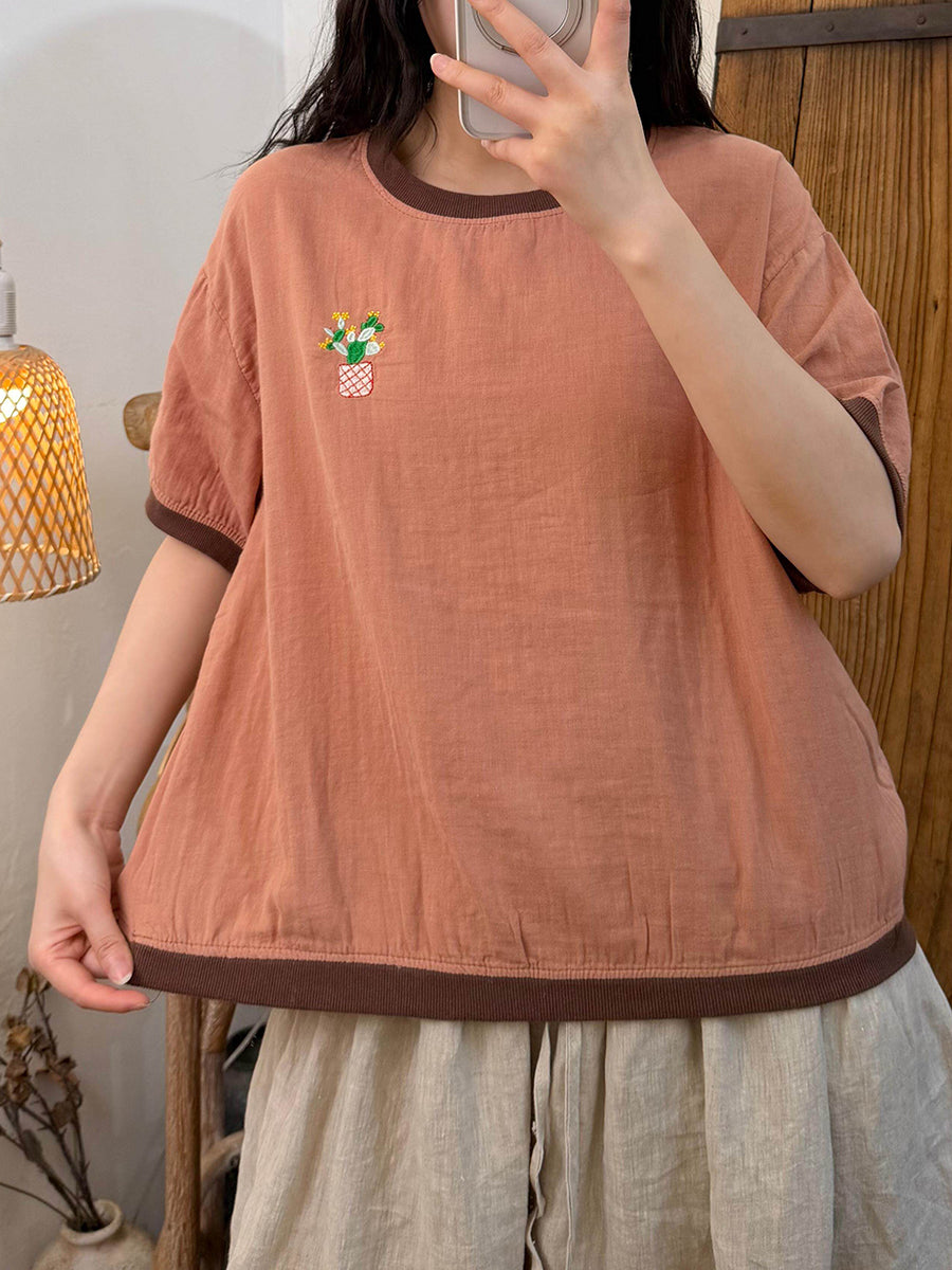 Dámské letní umělecké barevné bavlněné tričko s O-krkem