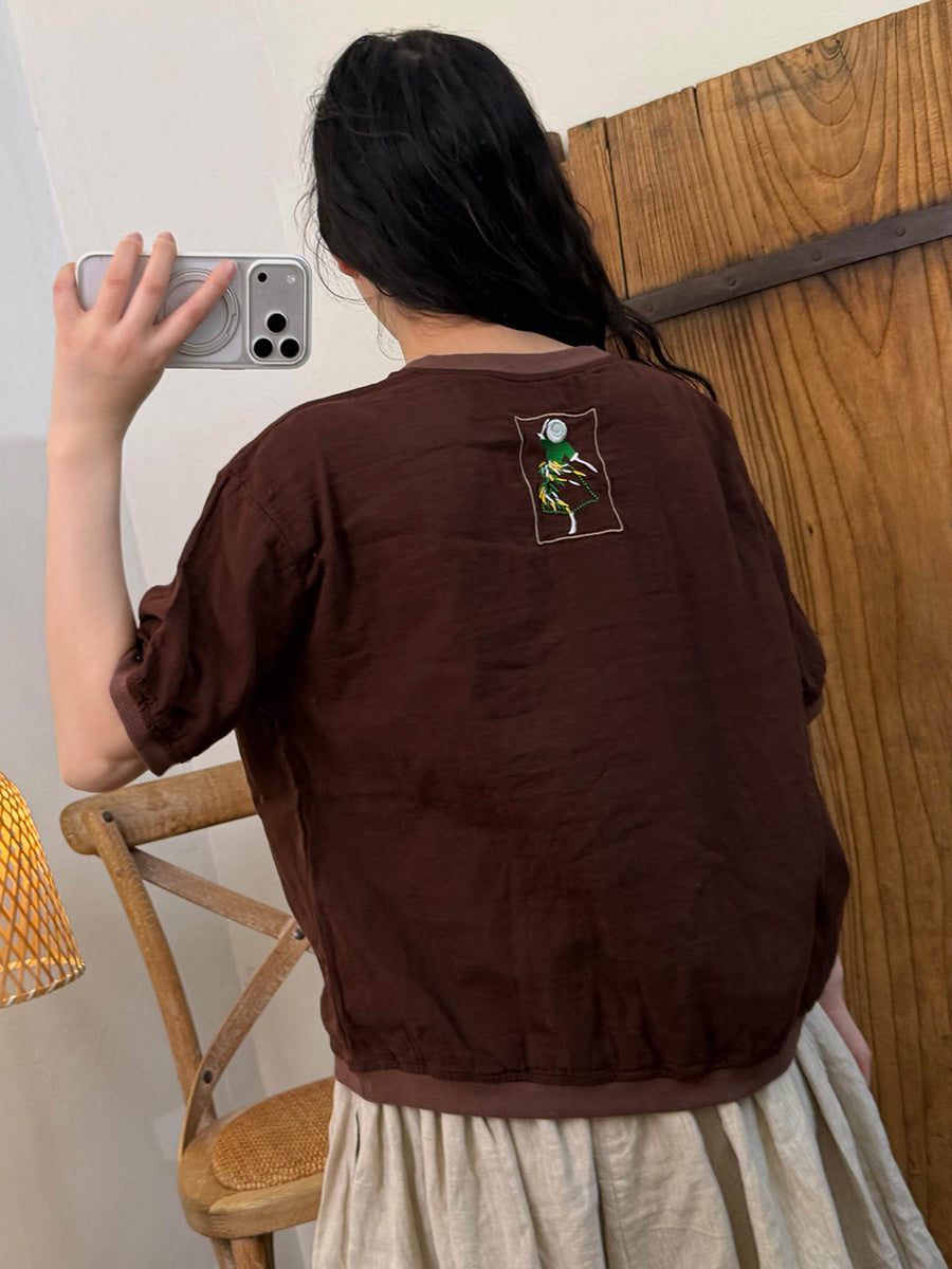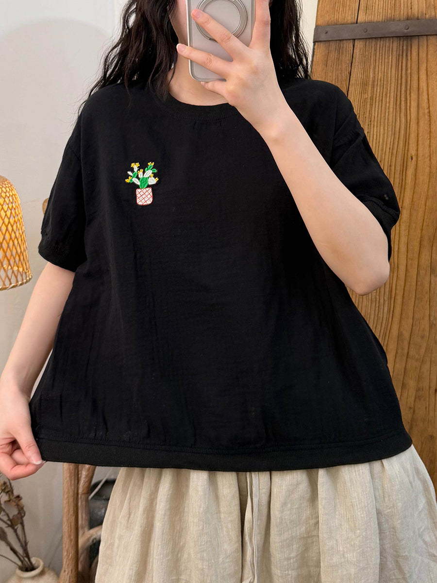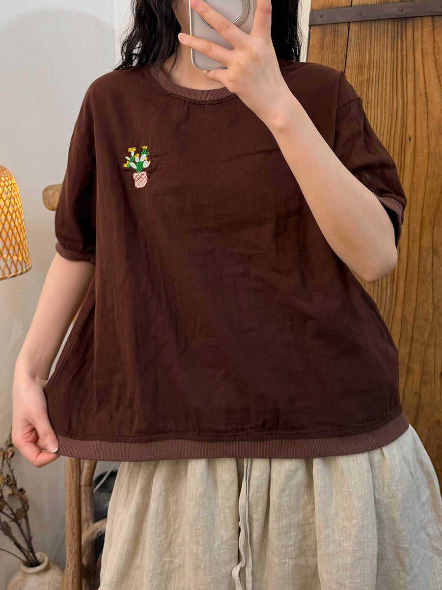 Dámské letní umělecké barevné bavlněné tričko s O-krkem