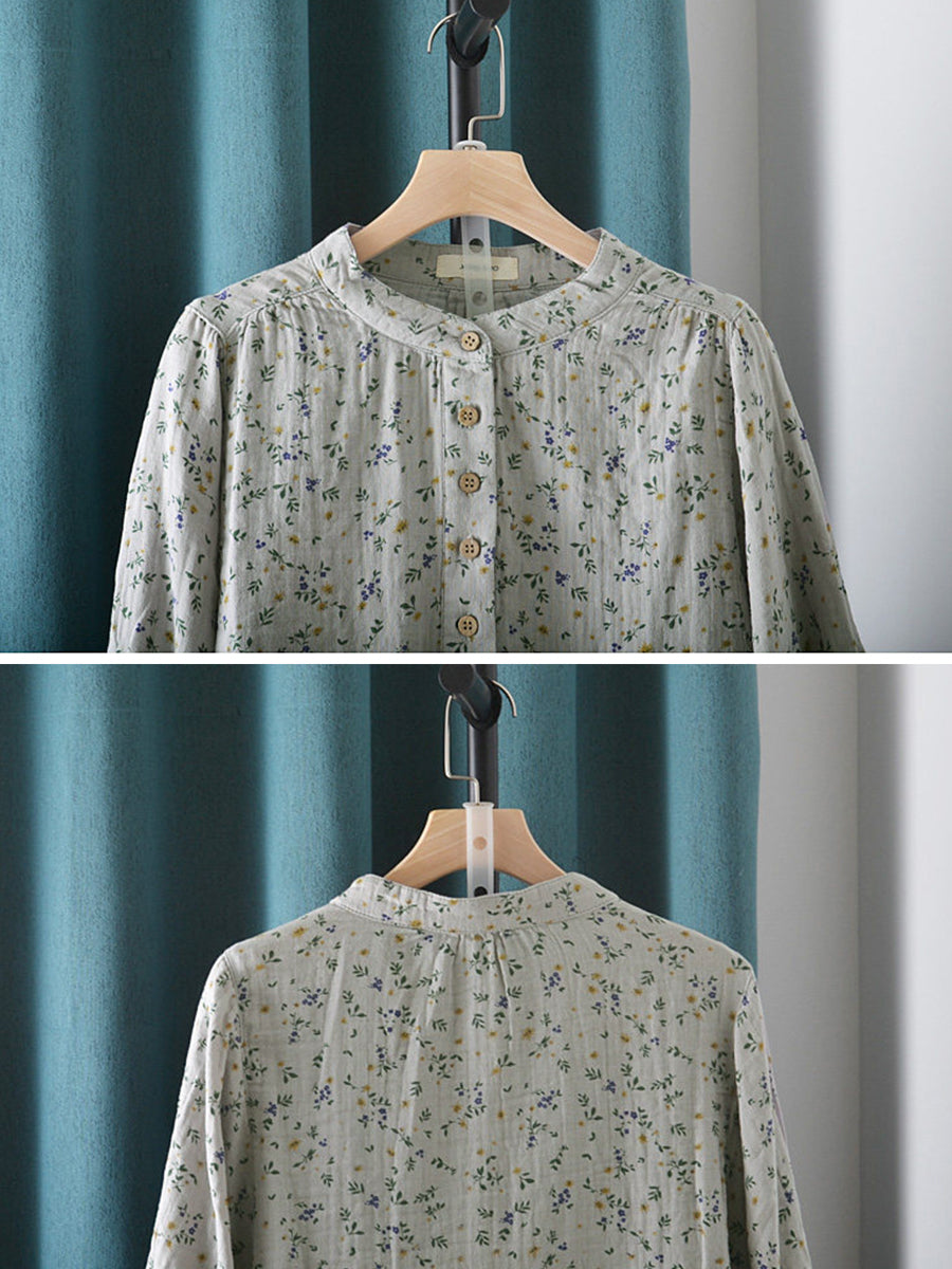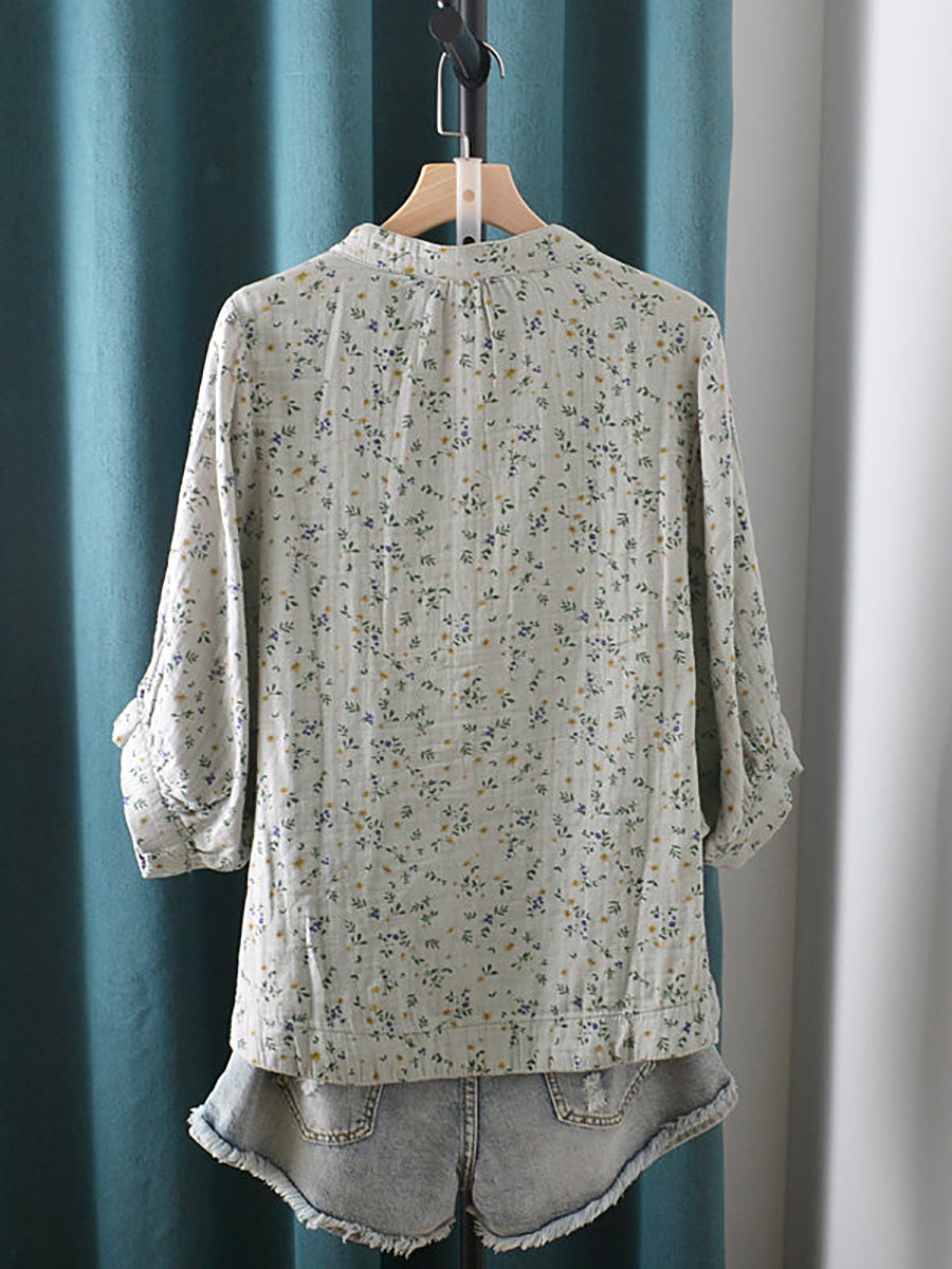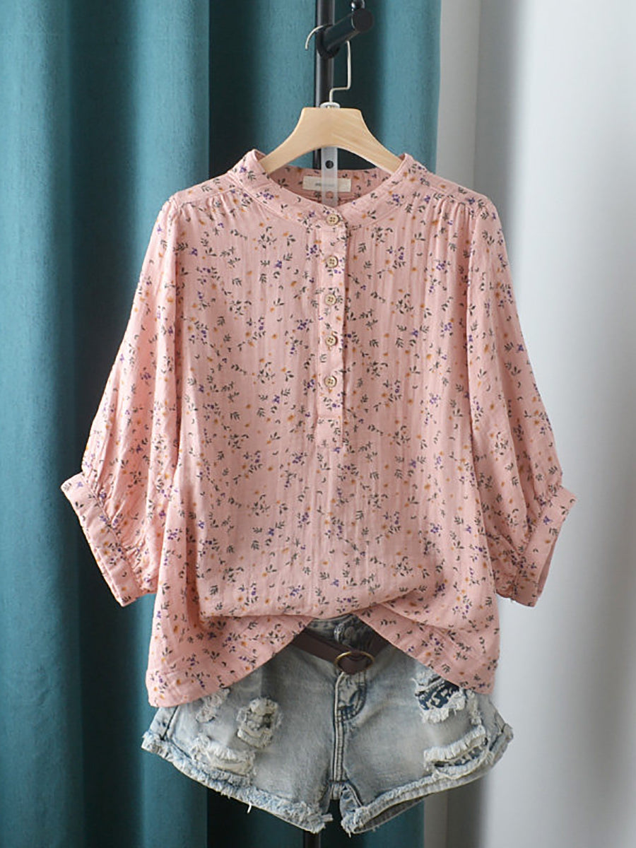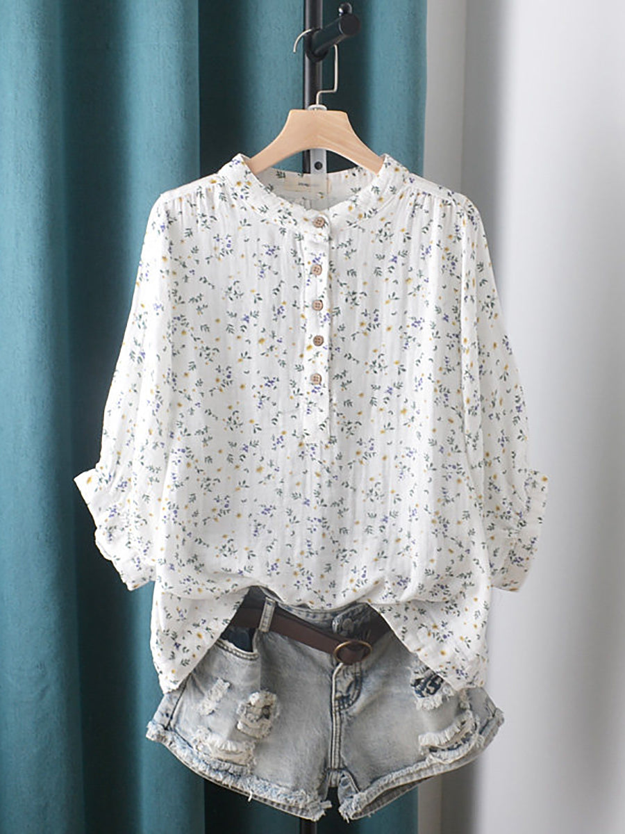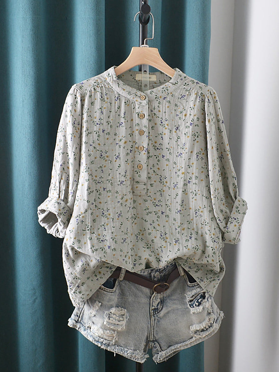 Dámská letní umělecká květinová halenka se stojáčkem ze 100% bavlny