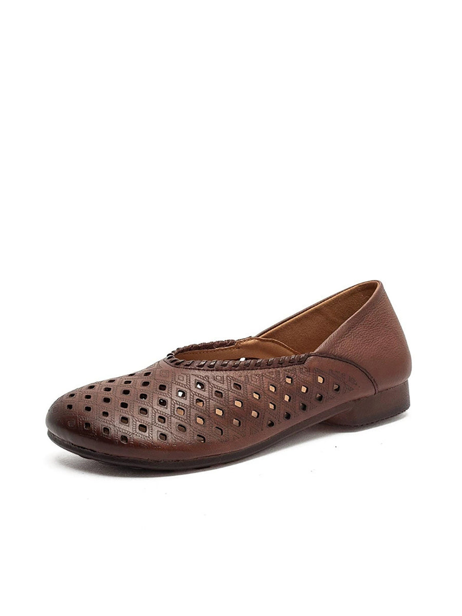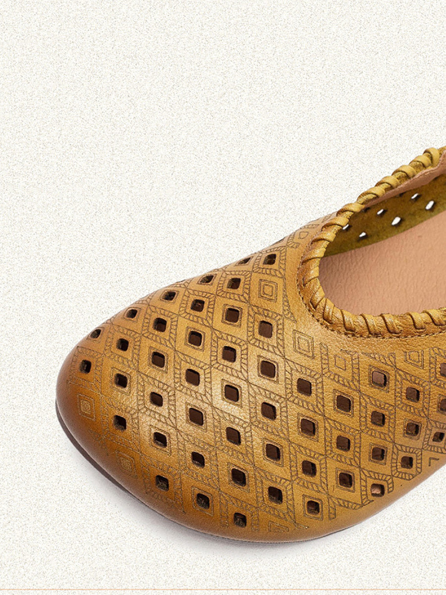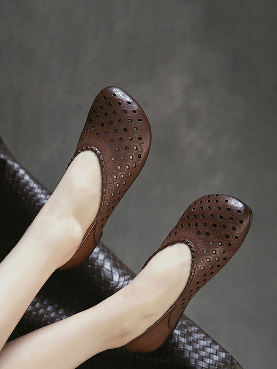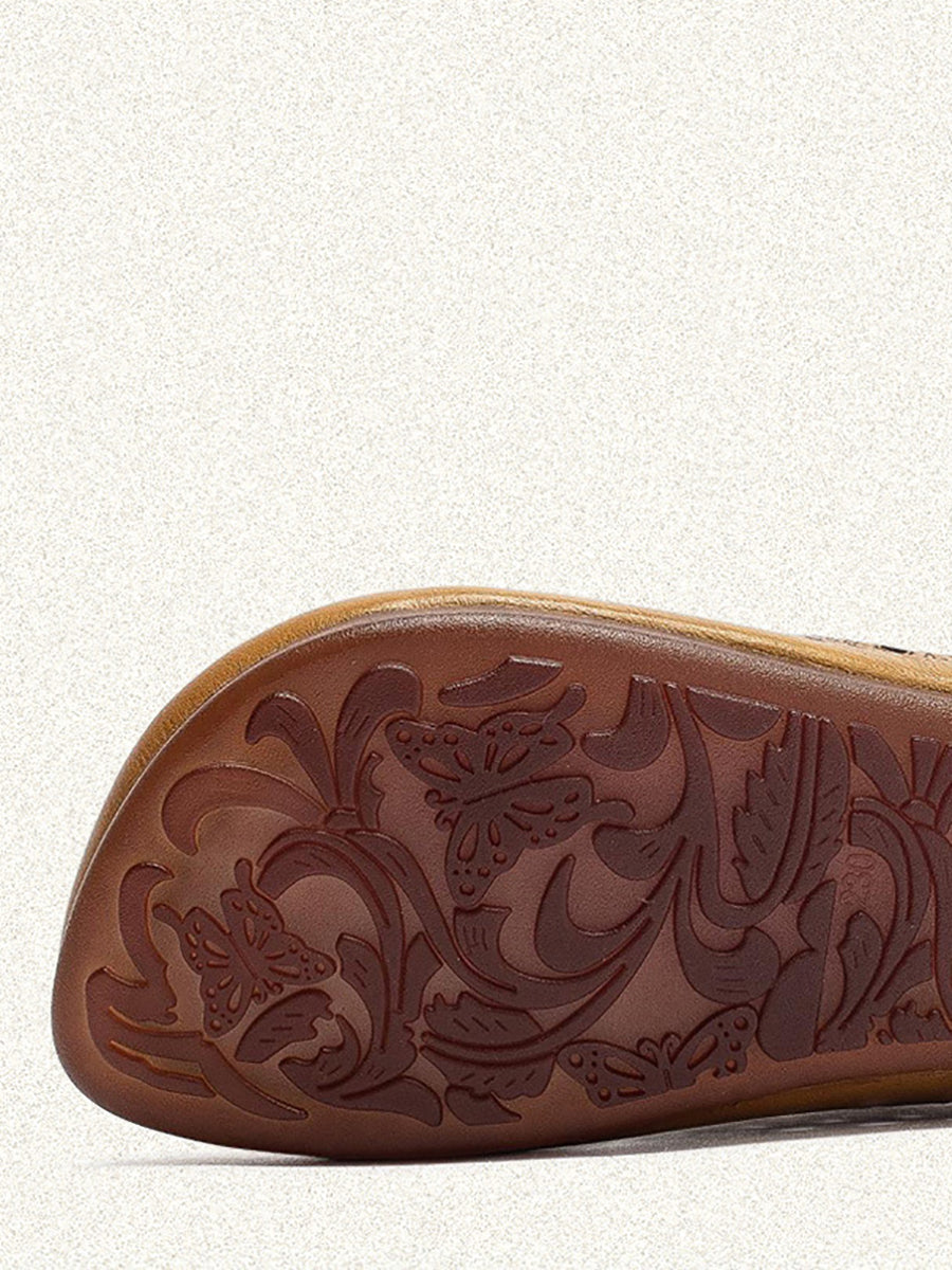 Dámské retro sandály z pravé kůže s otvorem na nízkém podpatku