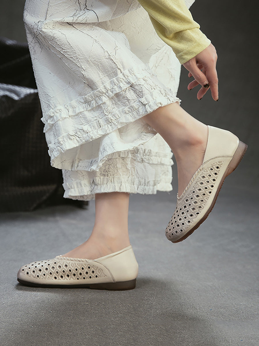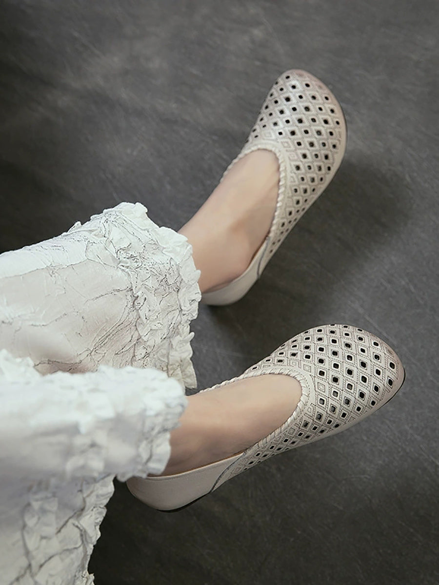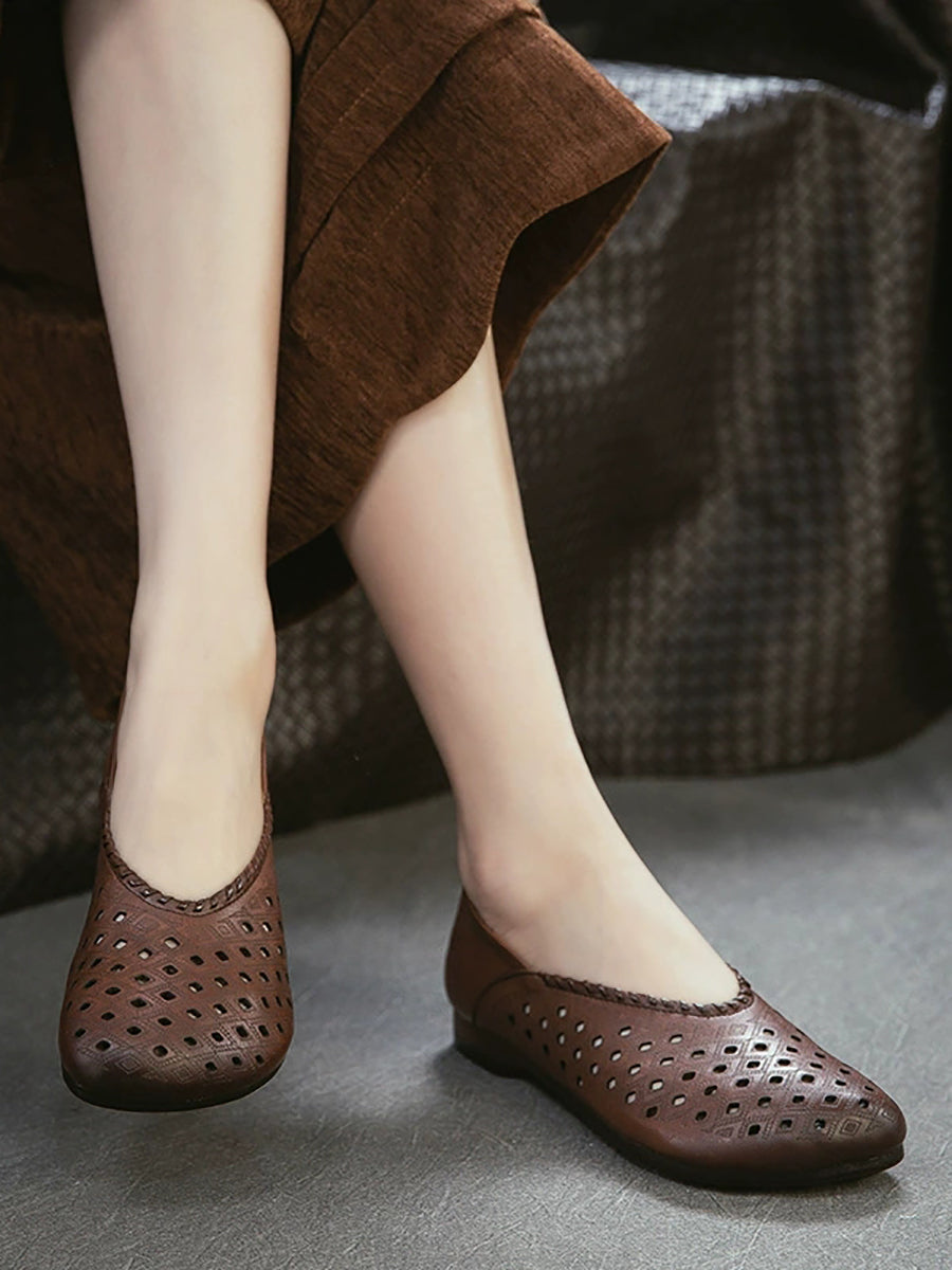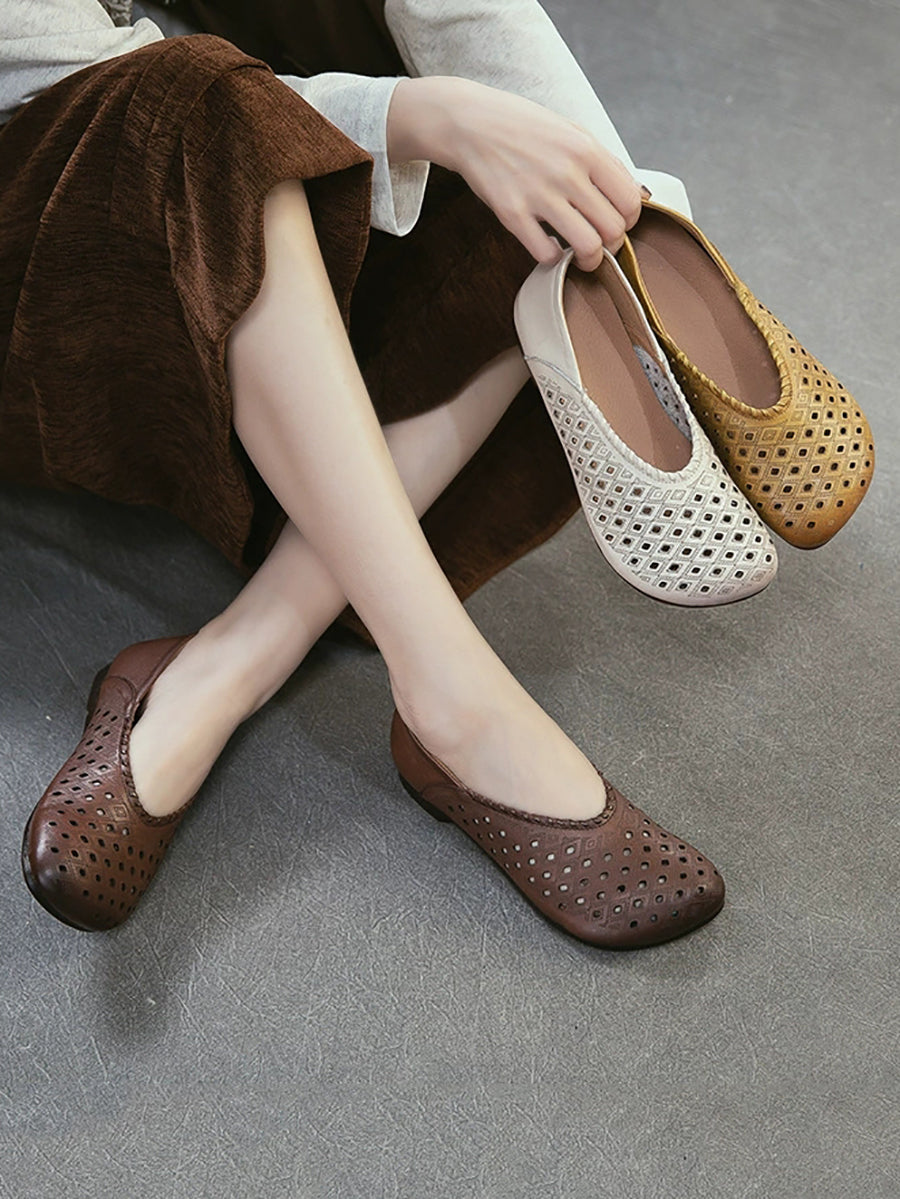 Dámské retro sandály z pravé kůže s otvorem na nízkém podpatku