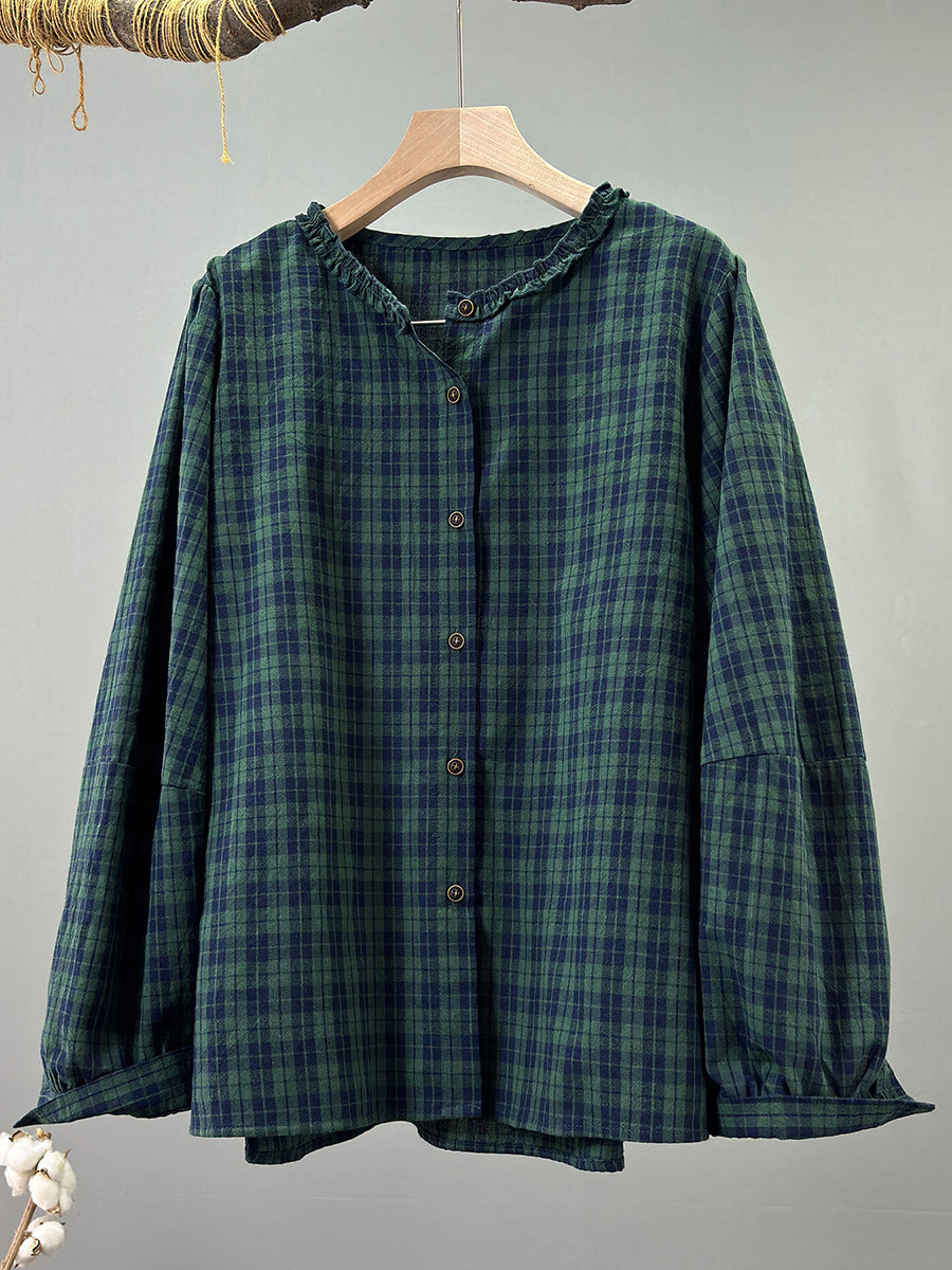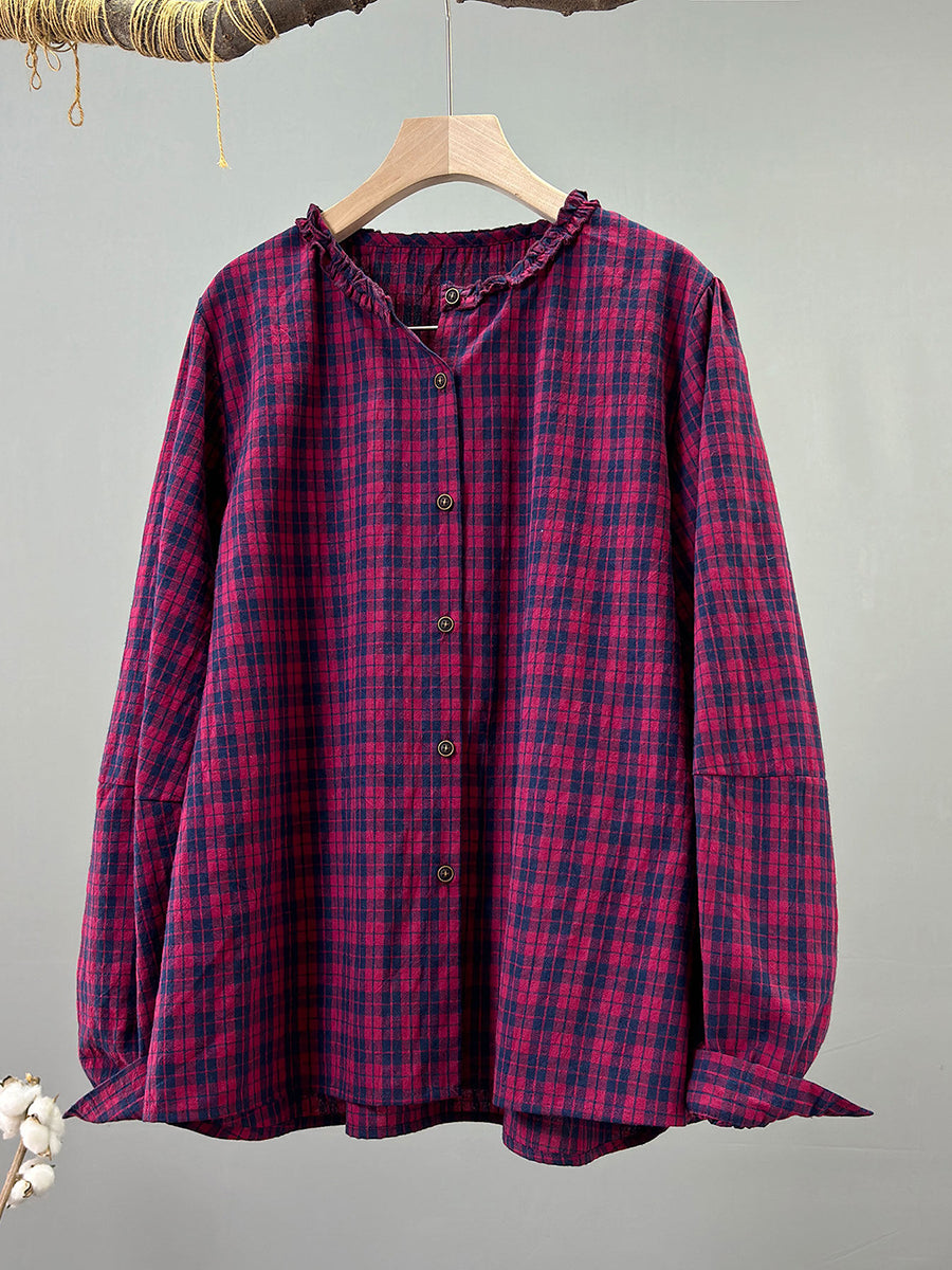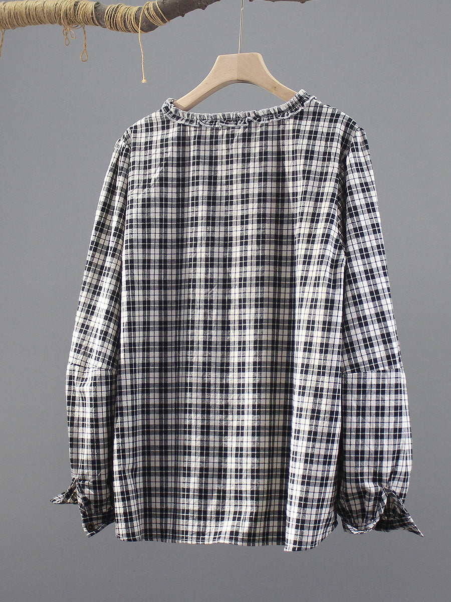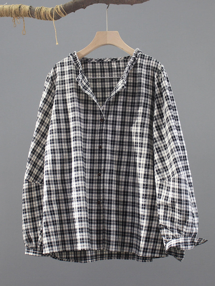 Dámské jarní vintage kostkované tričko s výstřihem do V, 100% bavlna