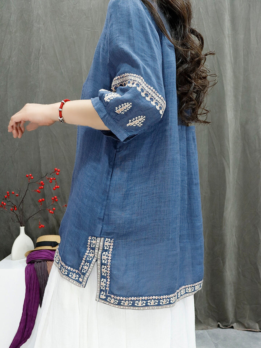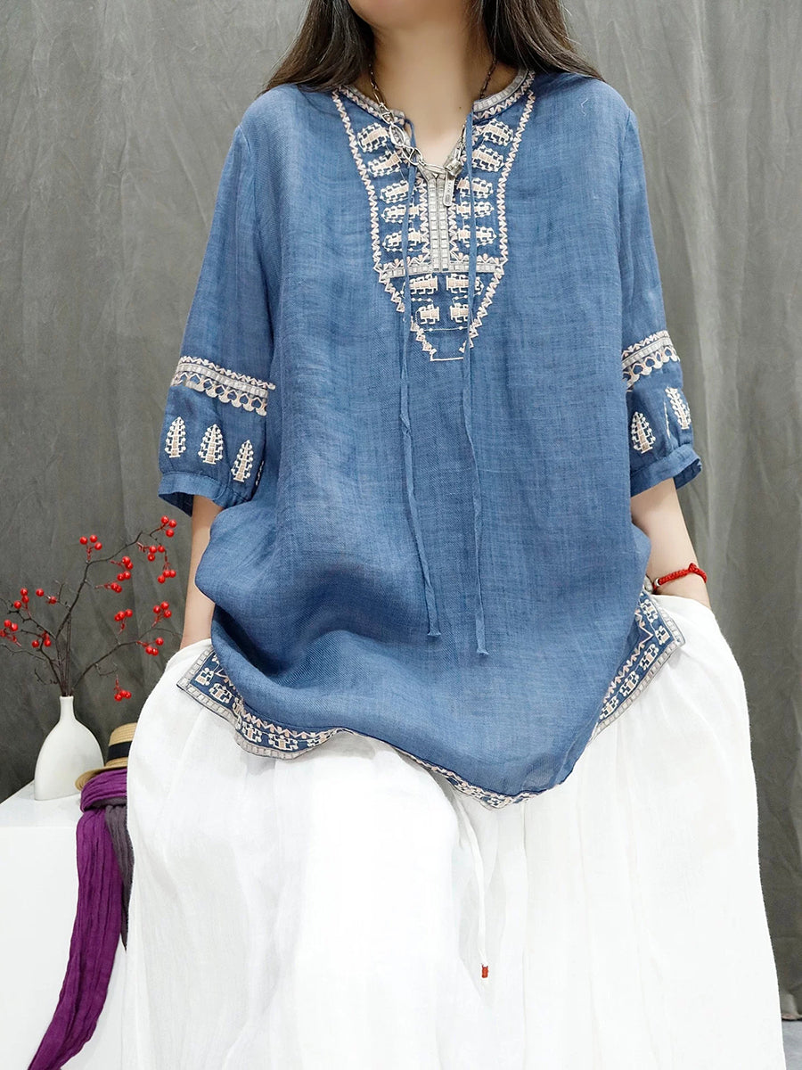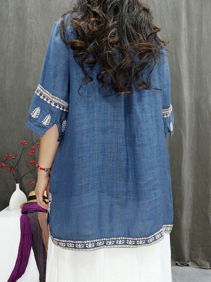 Dámská letní retro vyšívaná halenka ze 100% ramie
