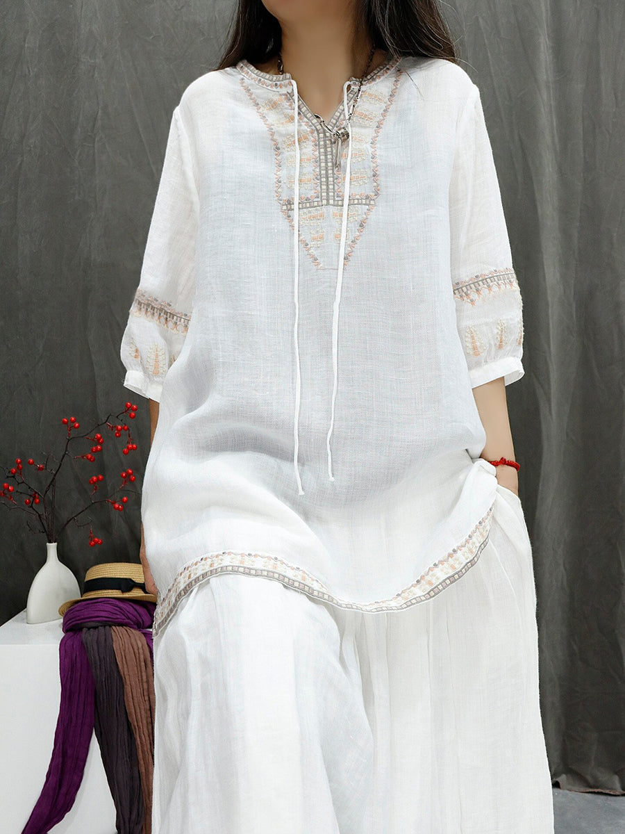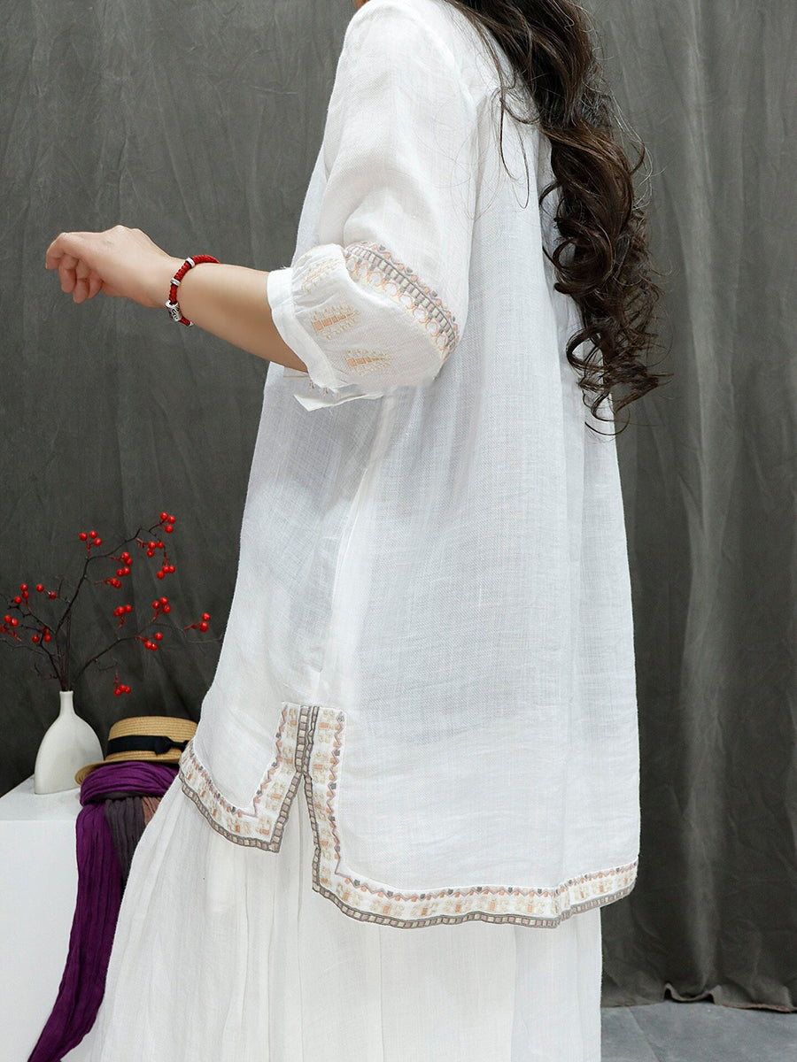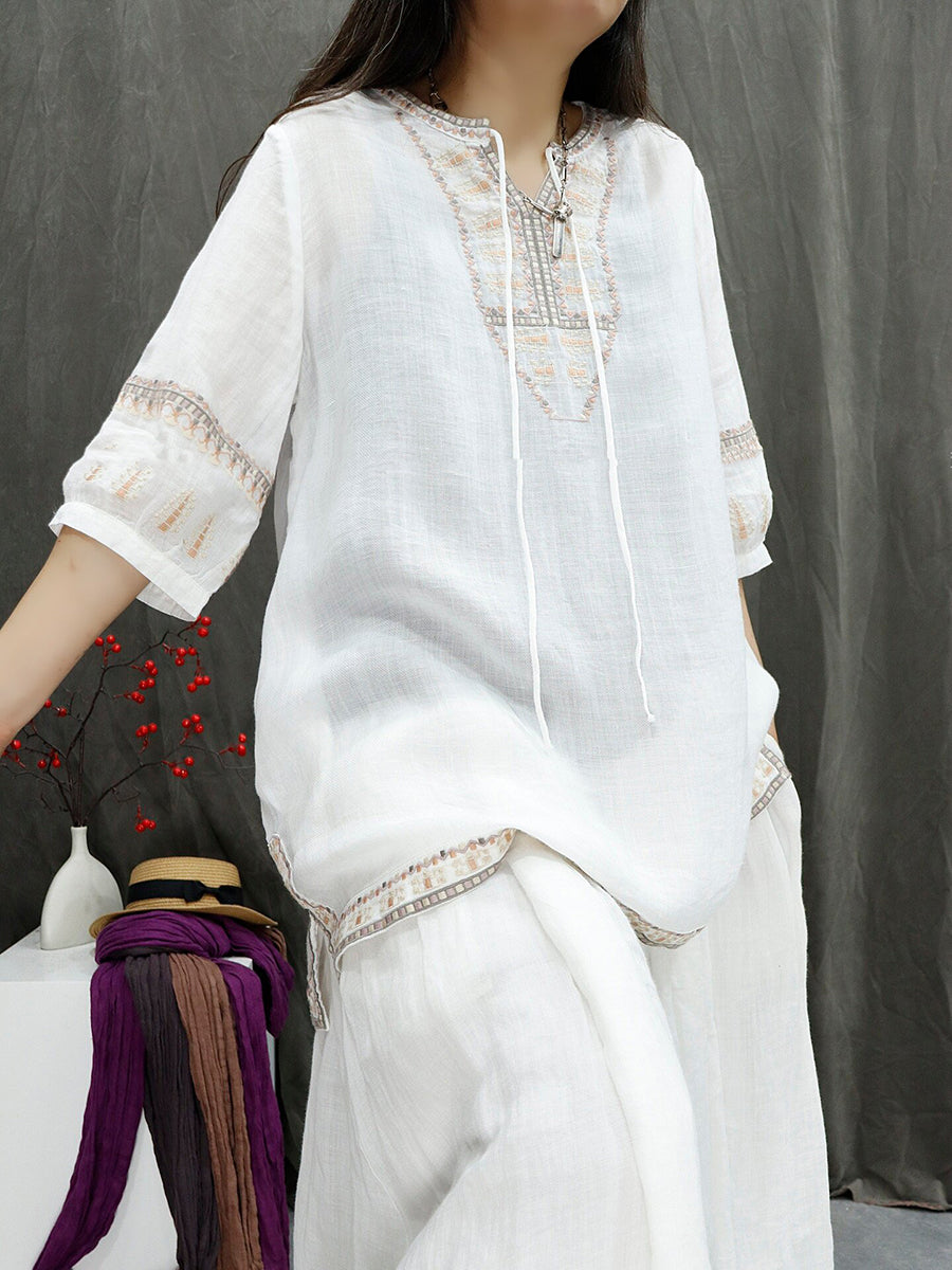 Dámská letní retro vyšívaná halenka ze 100% ramie