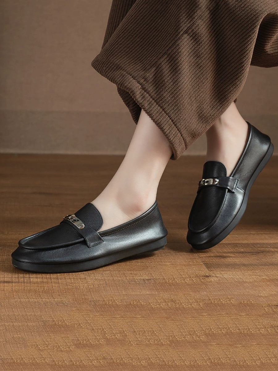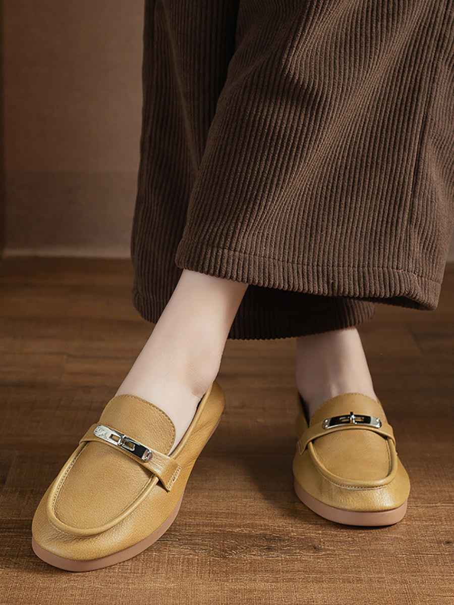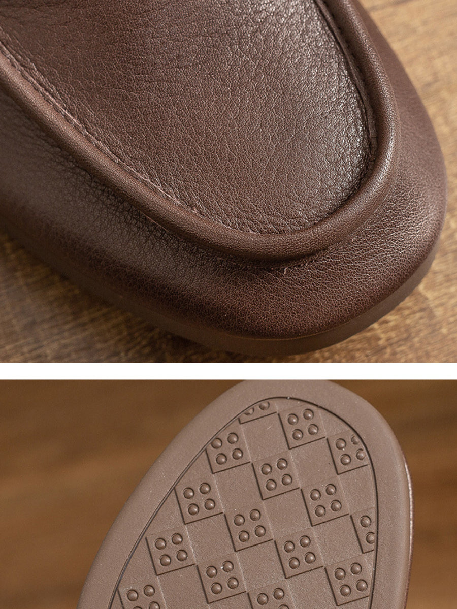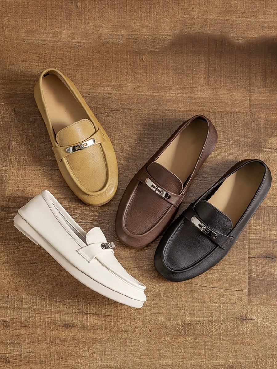 Dámské vintage kožené ploché mokasíny