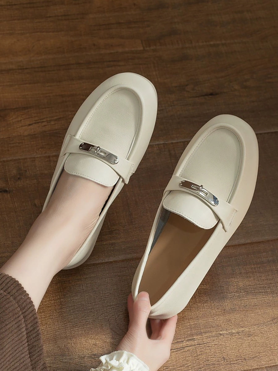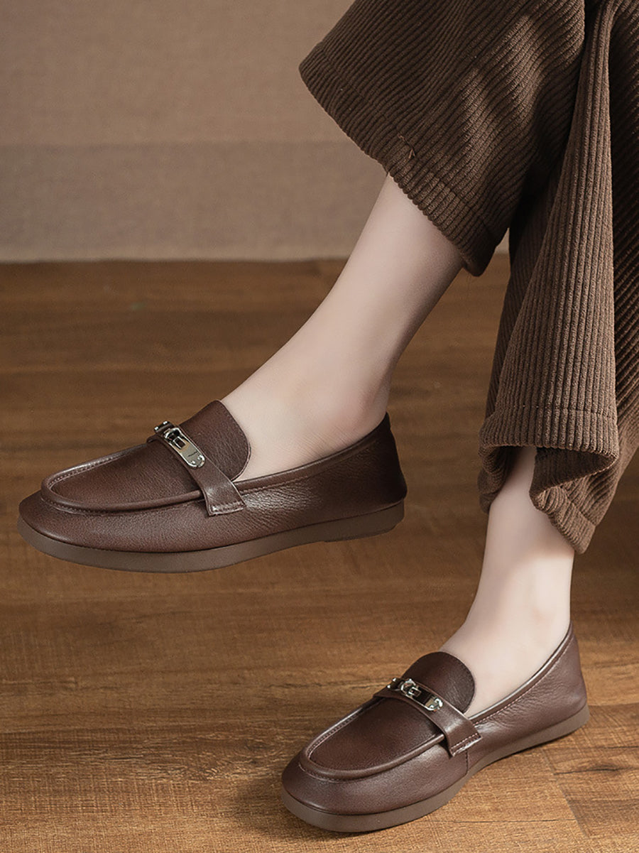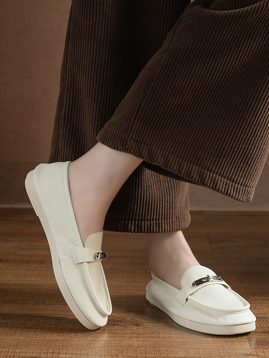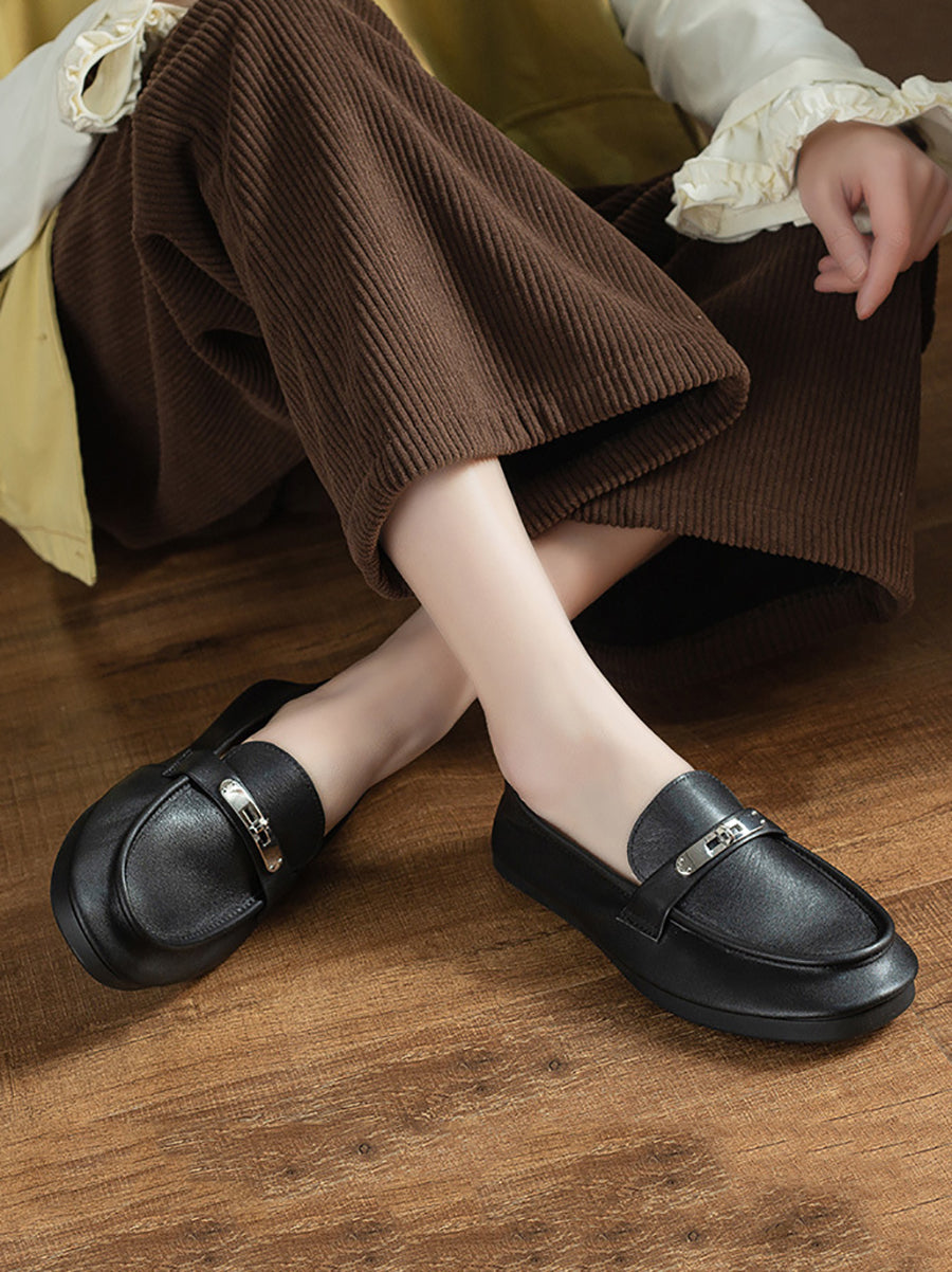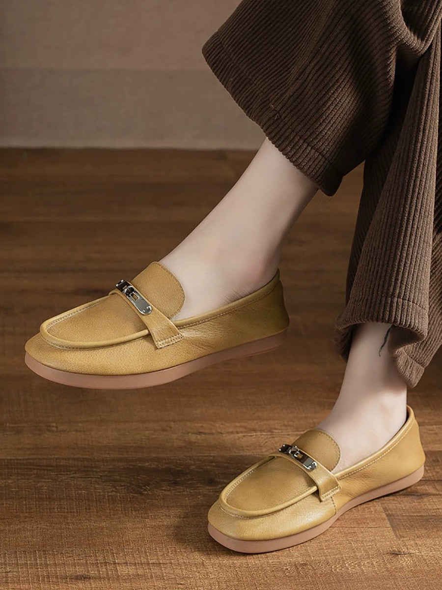 Dámské vintage kožené ploché mokasíny