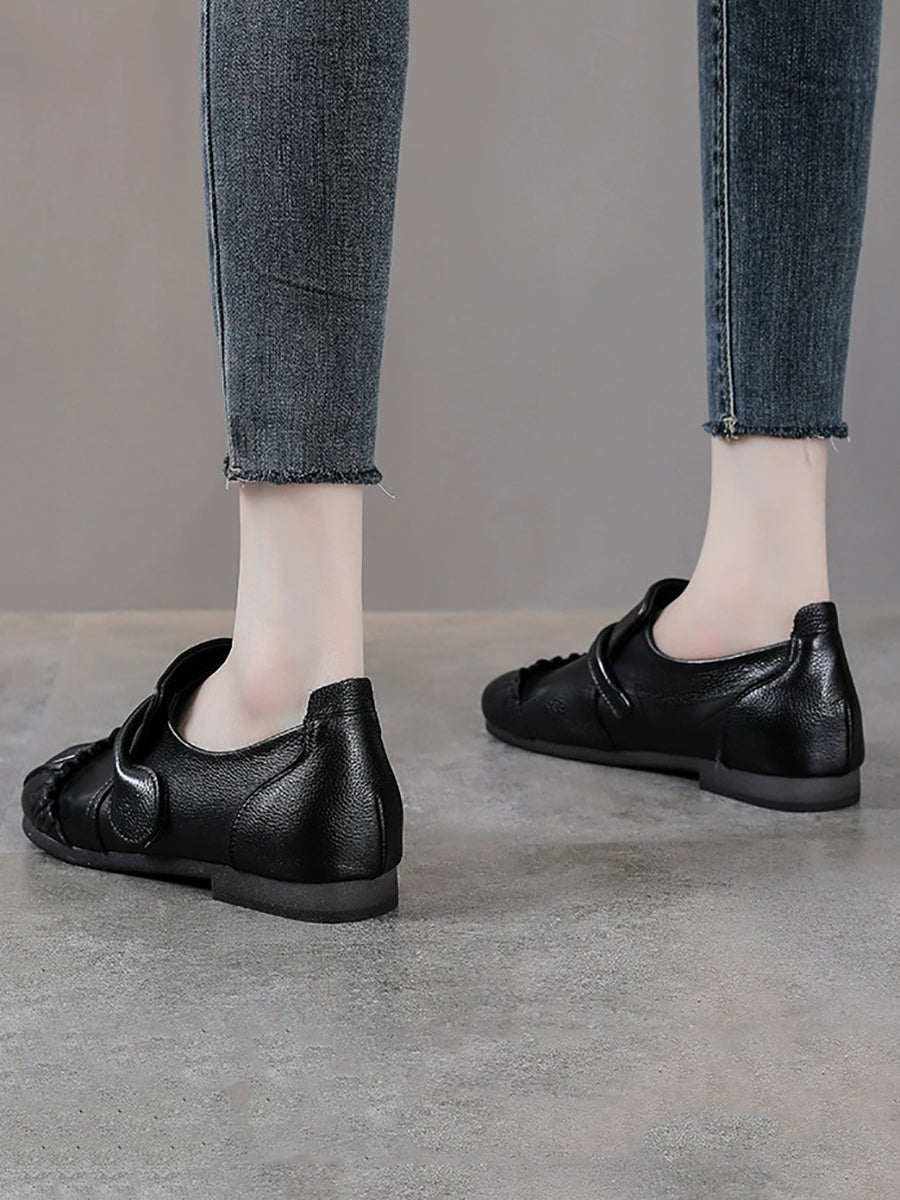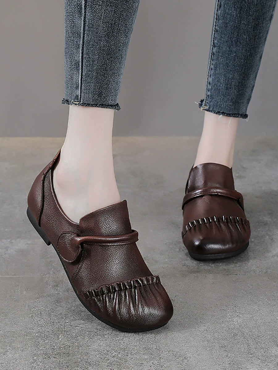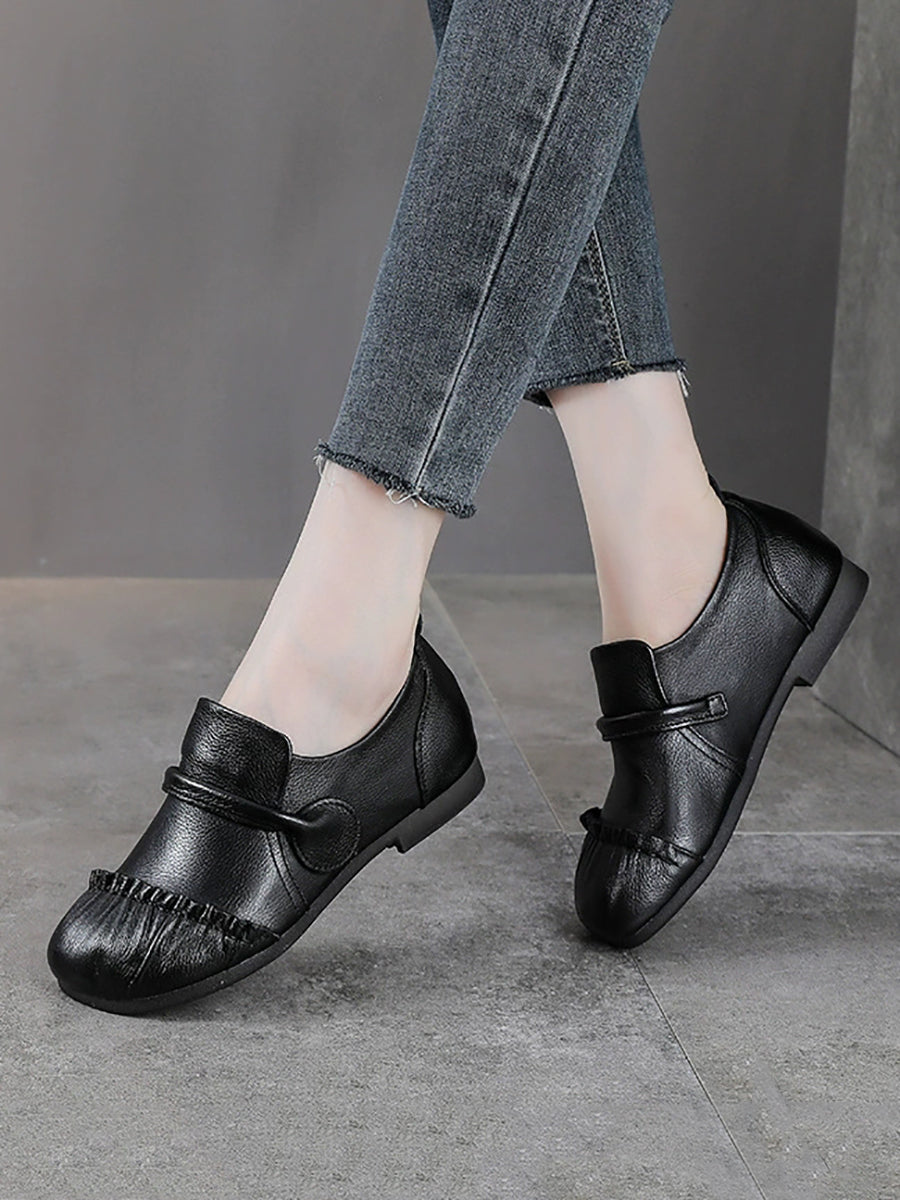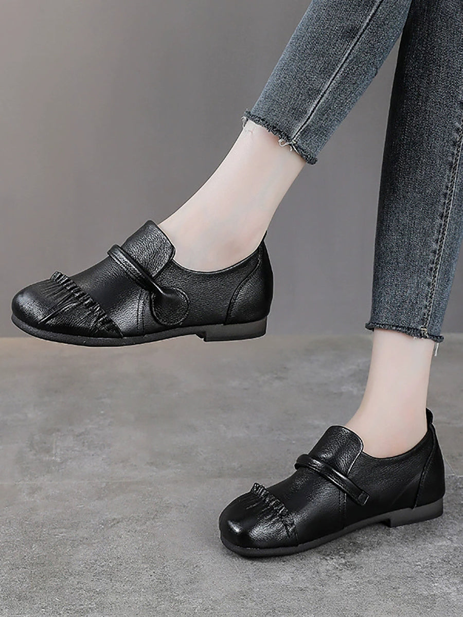 Dámské vintage boty na nízkém podpatku z pravé kůže
