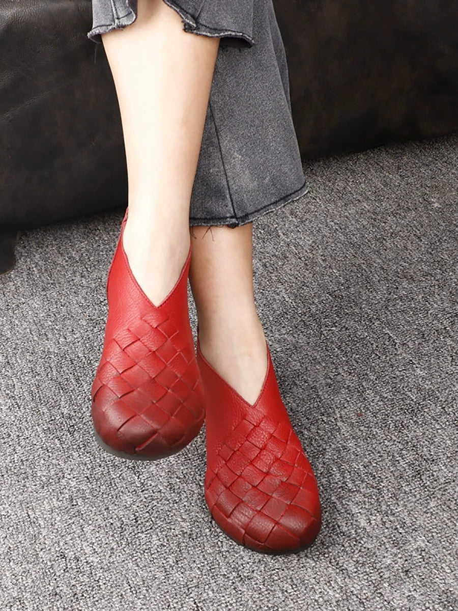 Dámské vintage boty z pravé kůže s nízkým podpatkem
