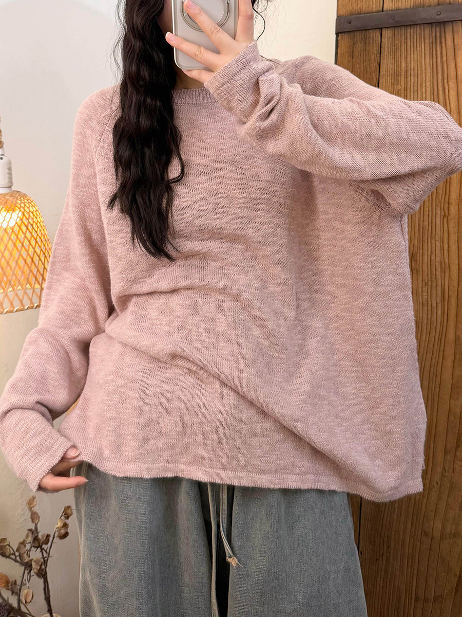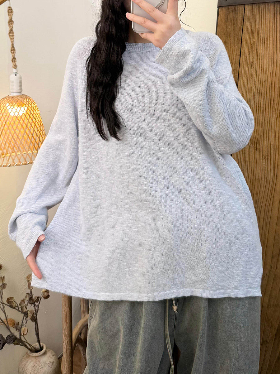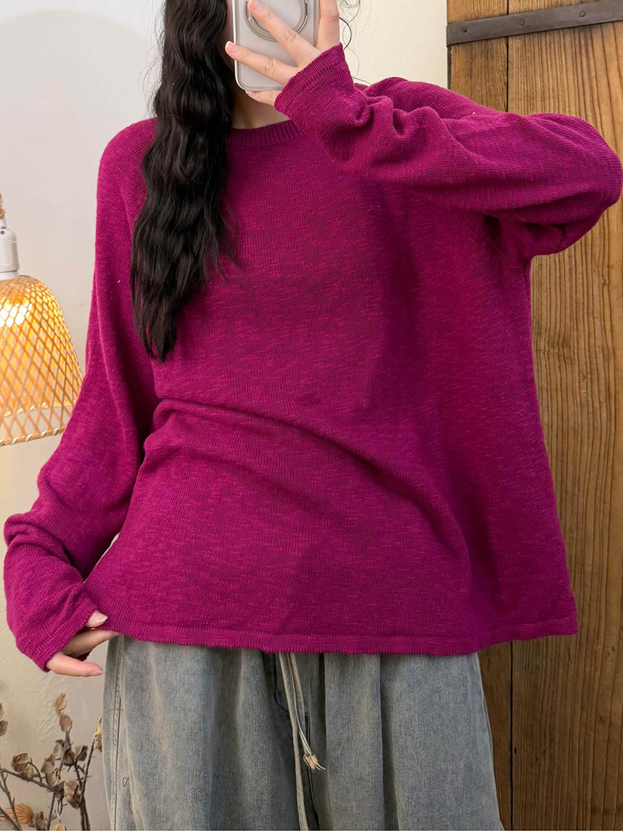 Dámské jarní ležérní pletené tričko s výstřihem do O-neck v čistých barvách