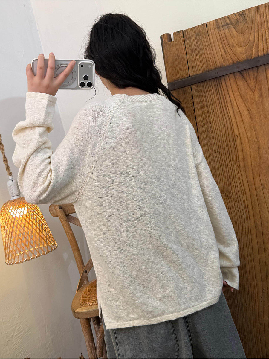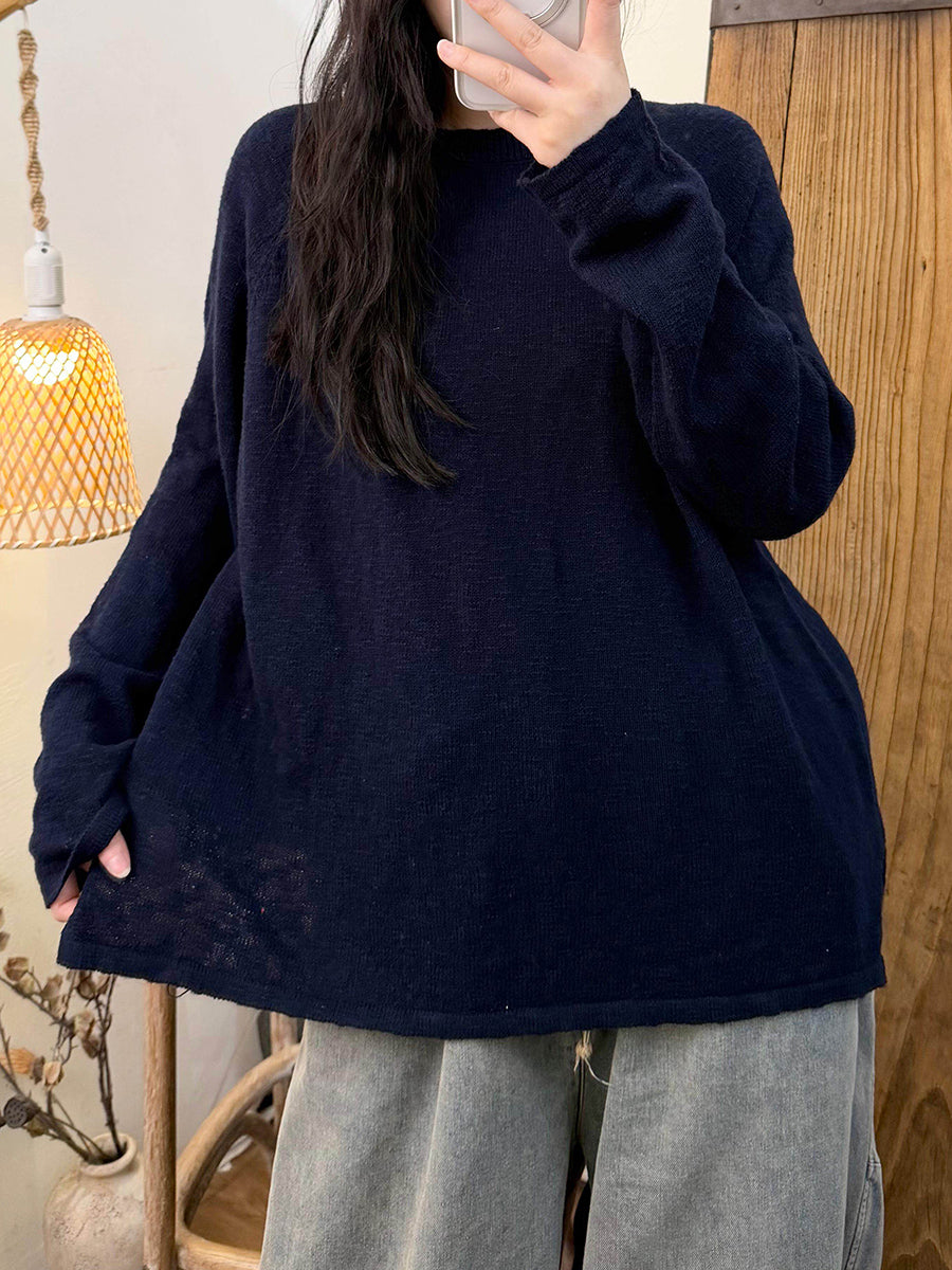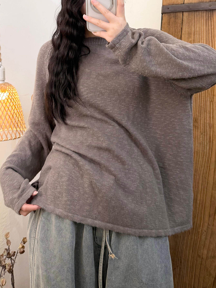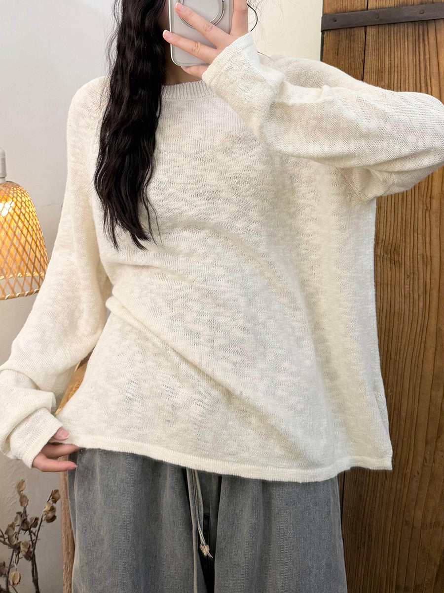 Dámské jarní ležérní pletené tričko s výstřihem do O-neck v čistých barvách