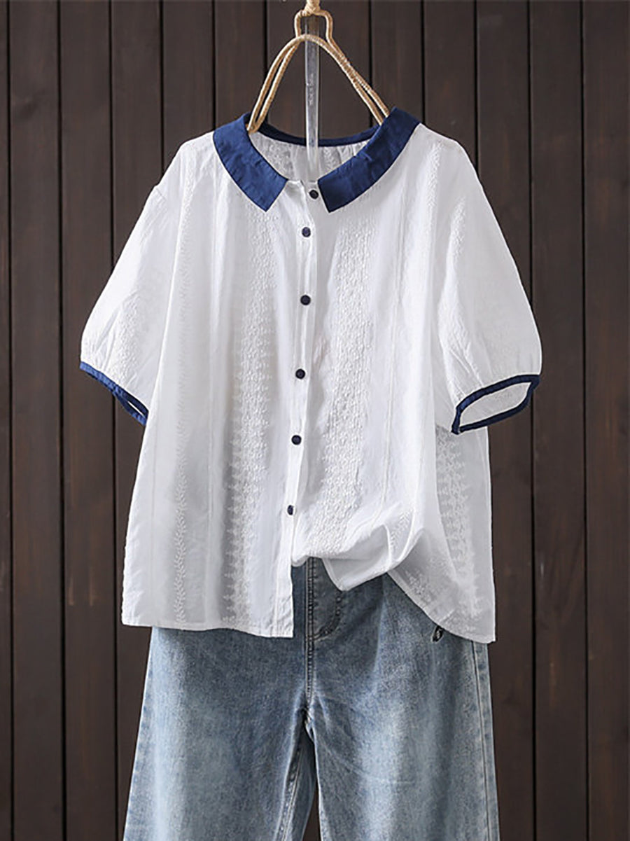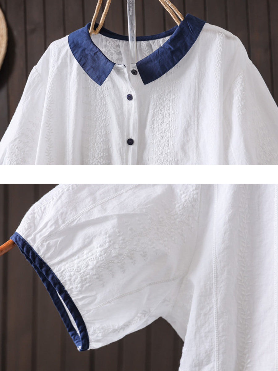 Dámské letní umělecké vyšívané barevné bloky ze 100% bavlny