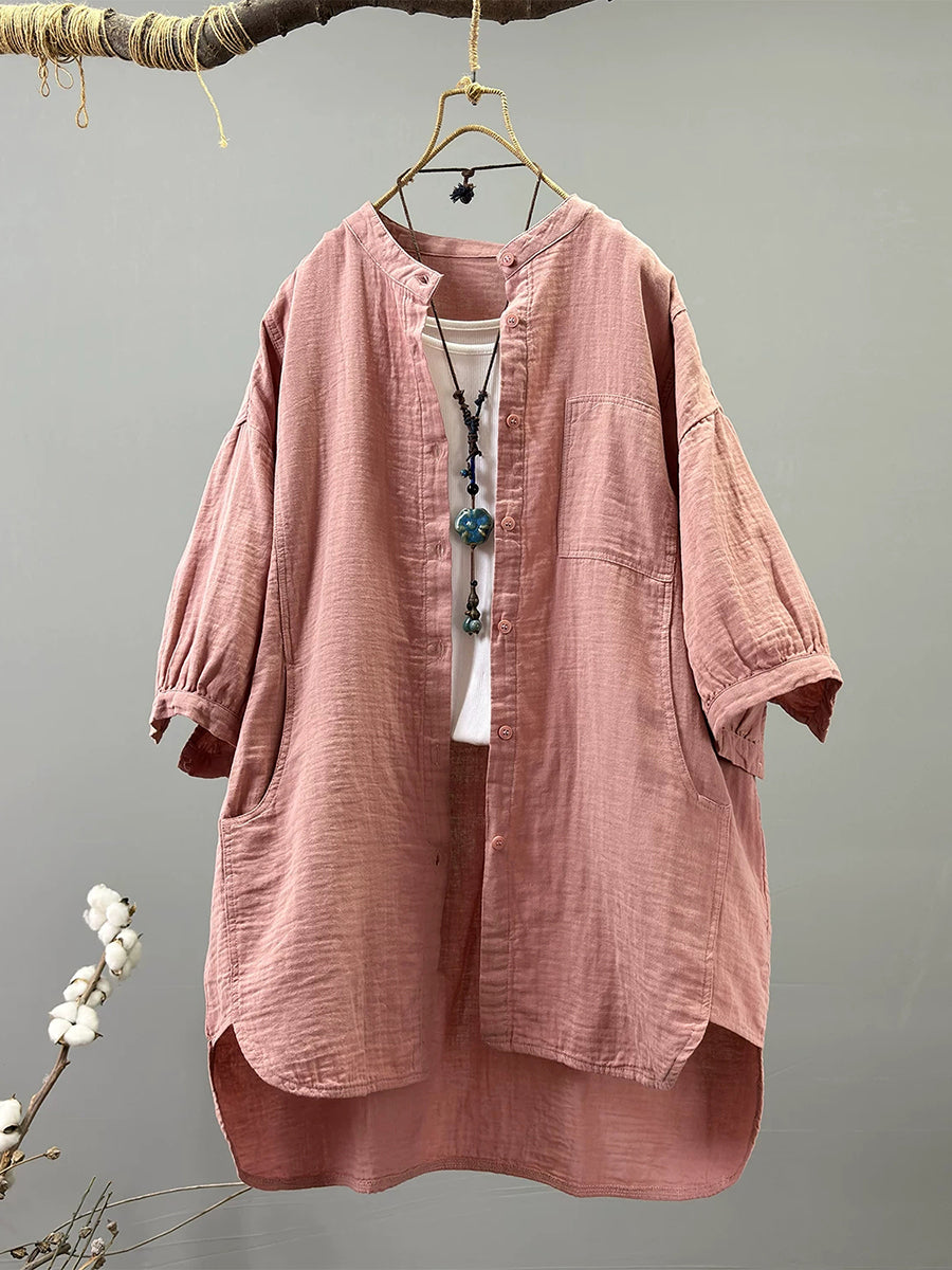 Dámská letní umělecká košile se stojáčkem, 100% bavlna