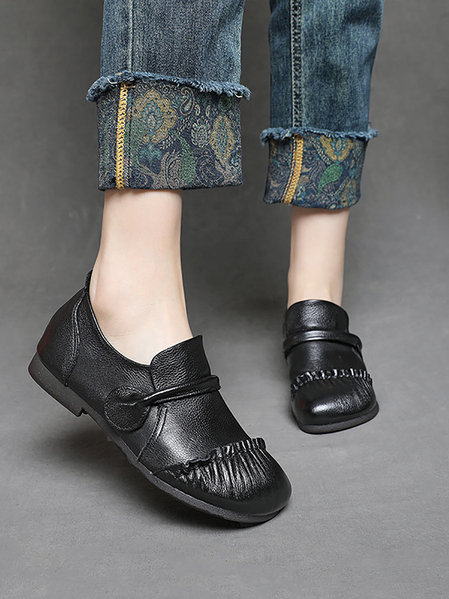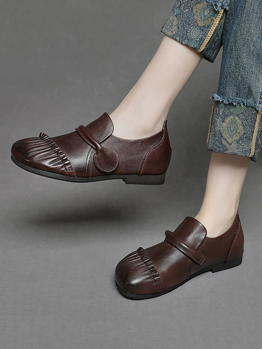Dámské vintage boty z pravé kůže na nízkém podpatku