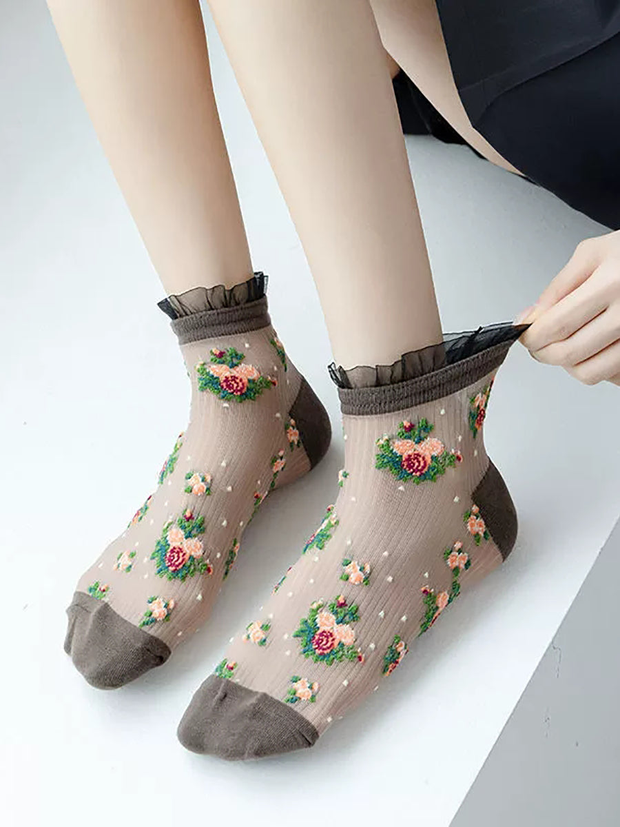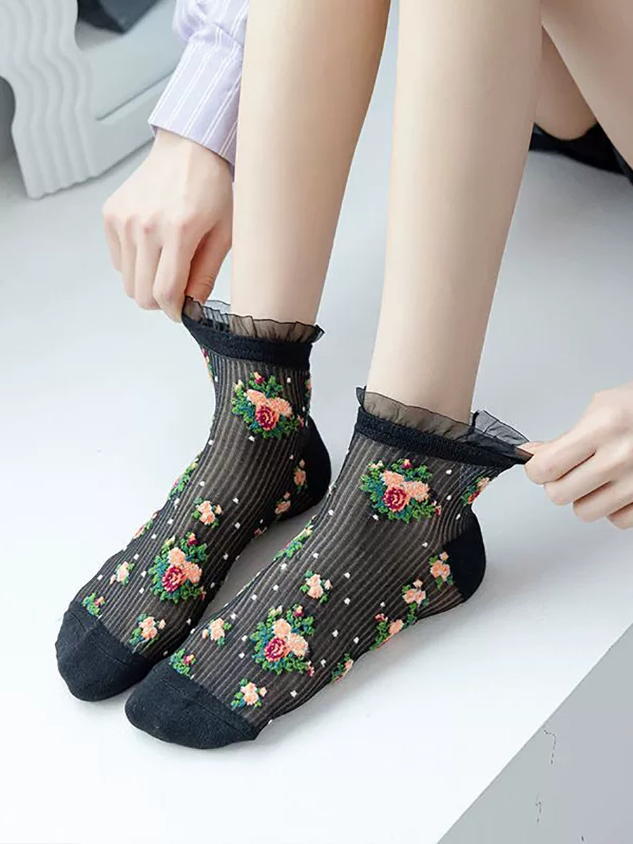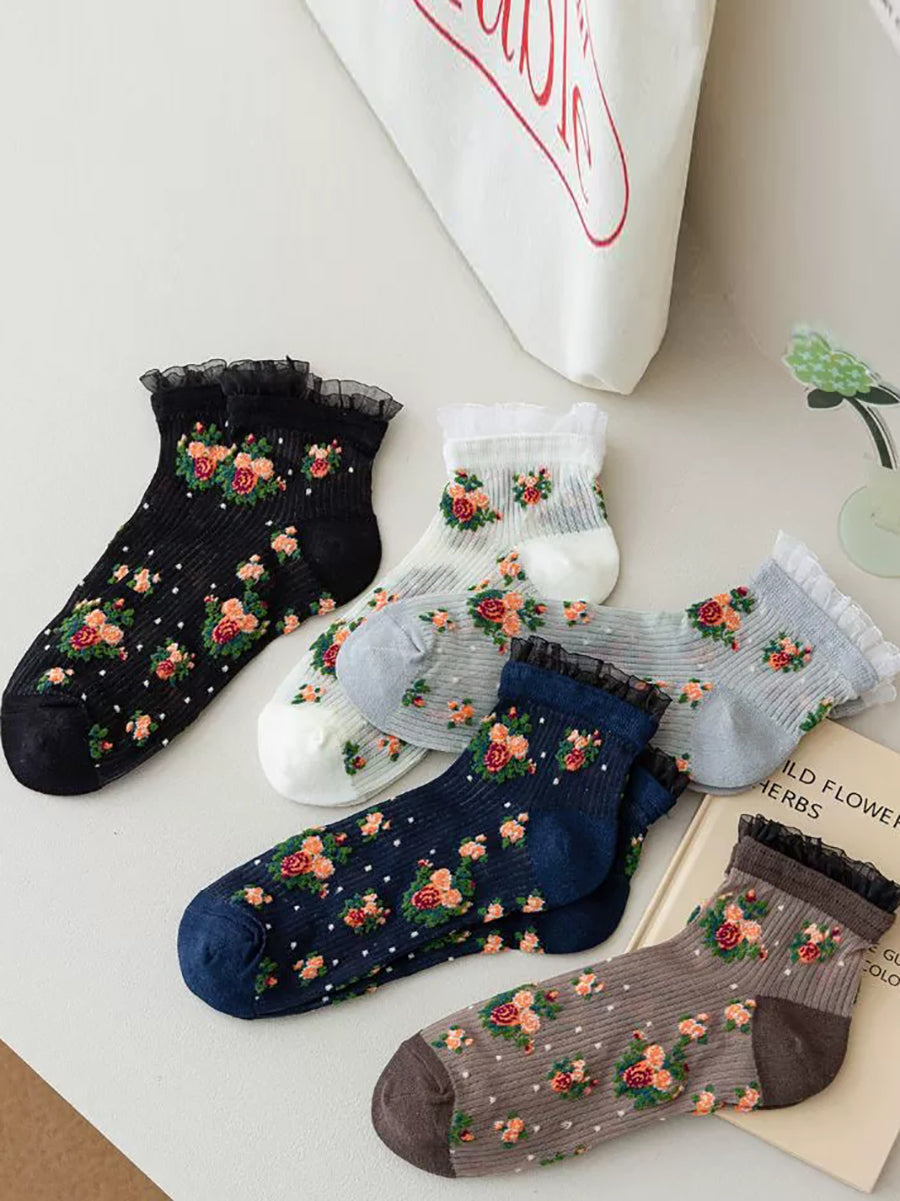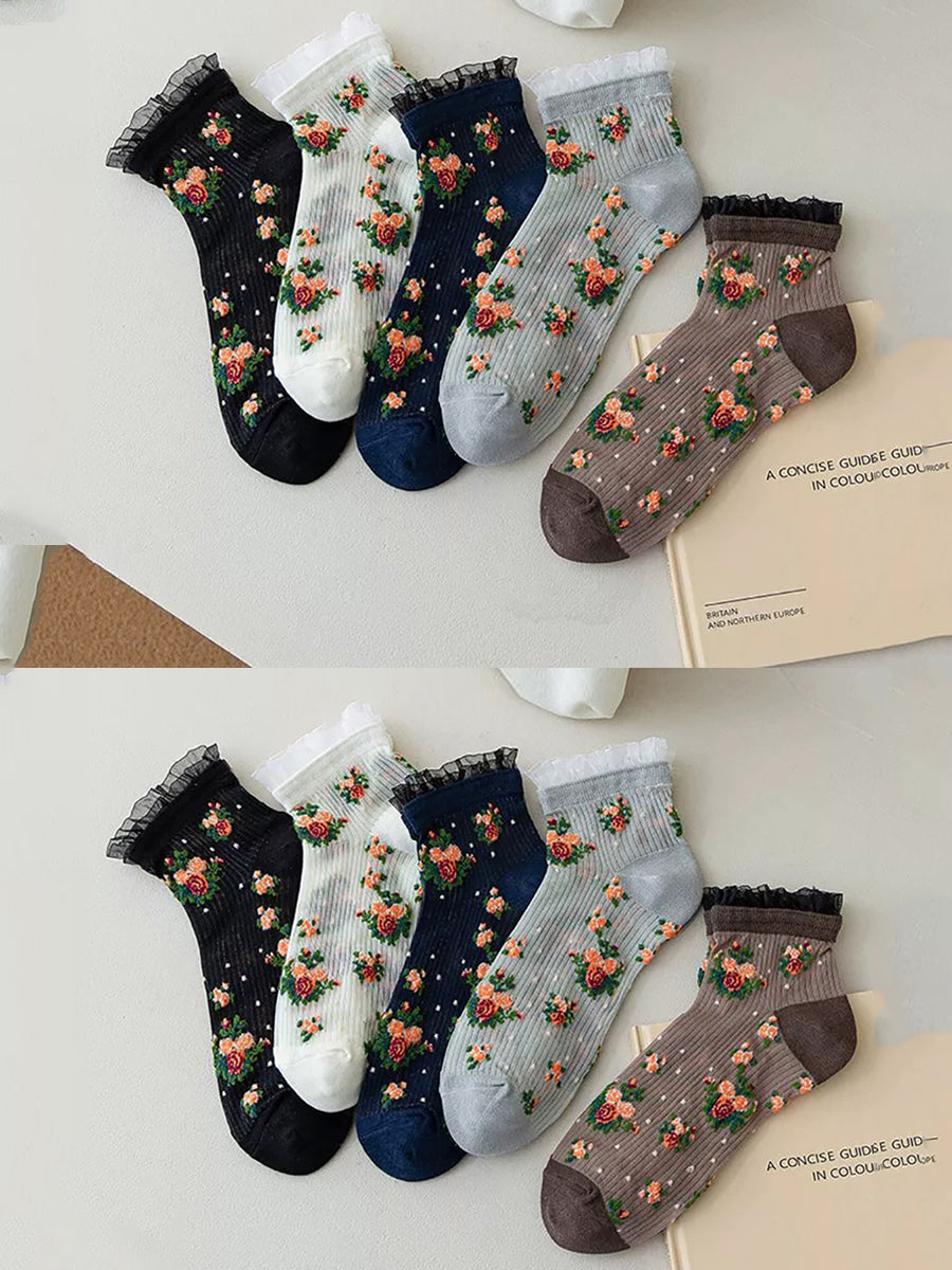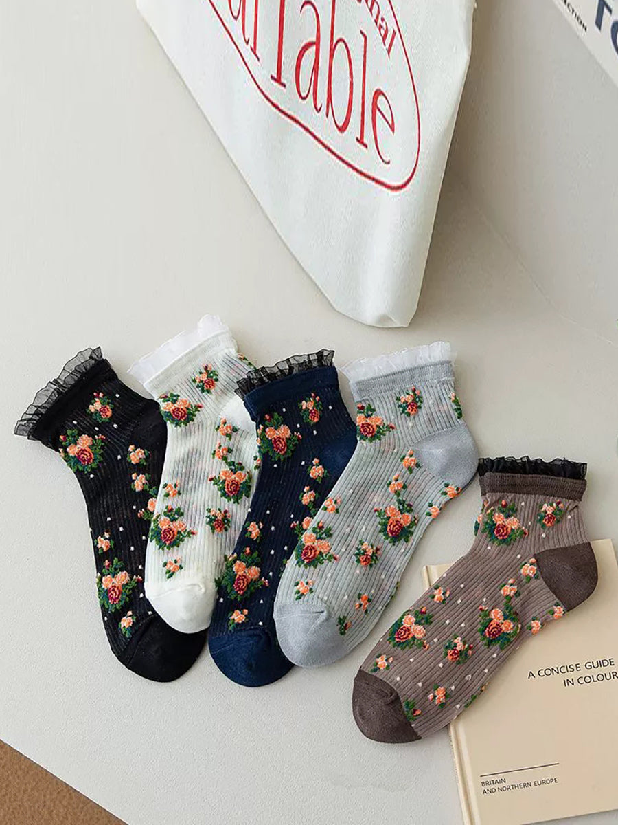 5 párů dámských letních tenkých květinových ponožek