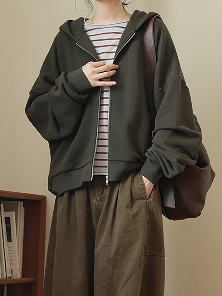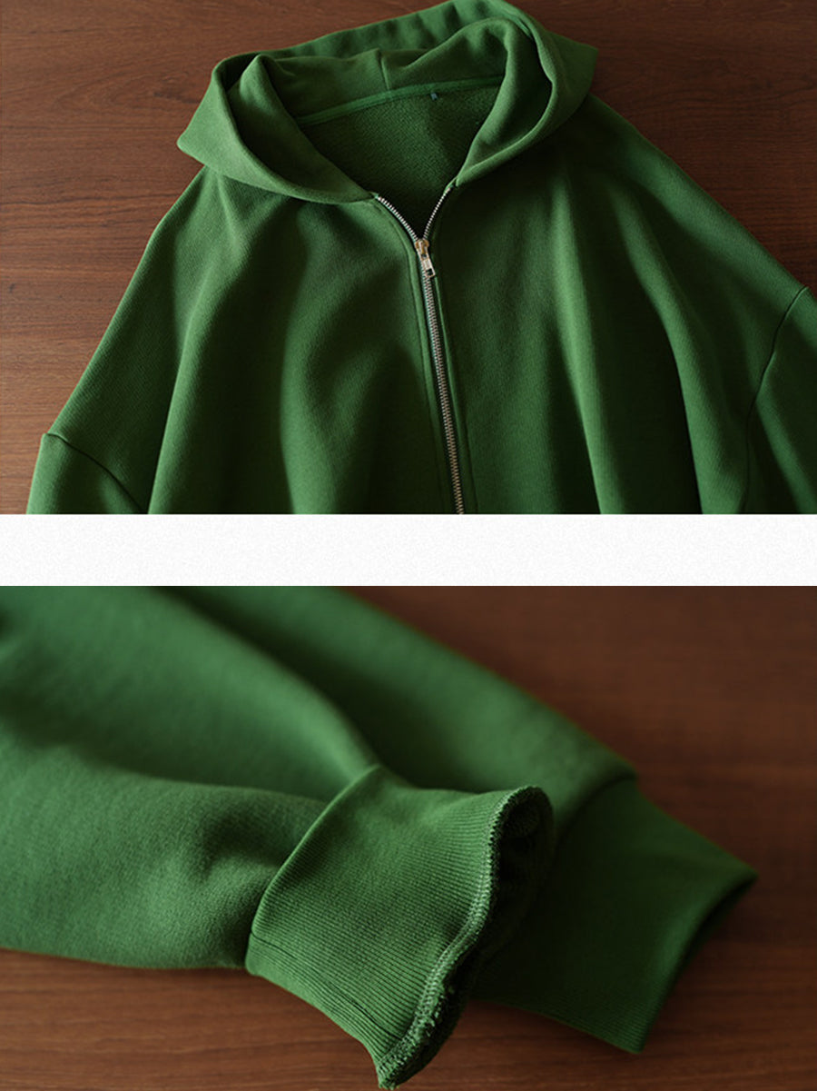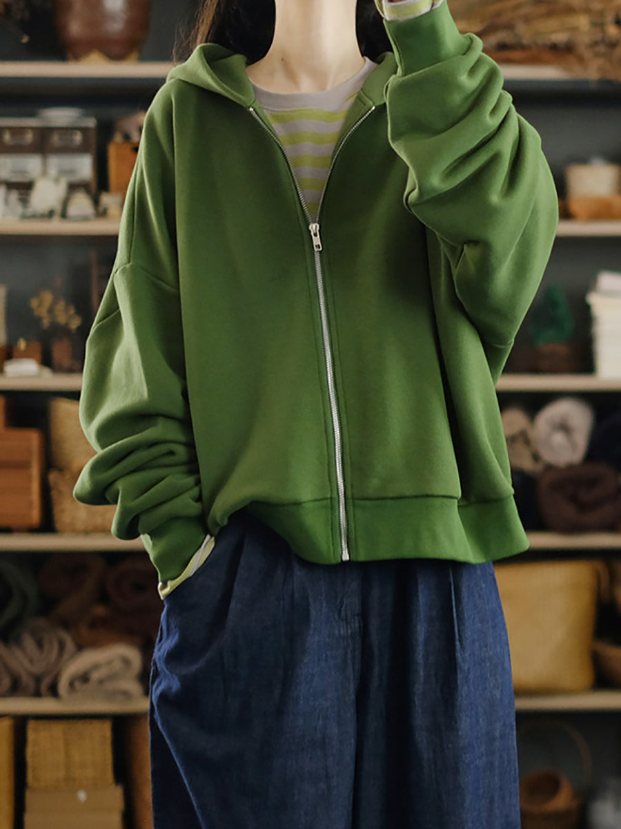 Dámský jarní ležérní bavlněný kabát s kapucí z čisté barvy