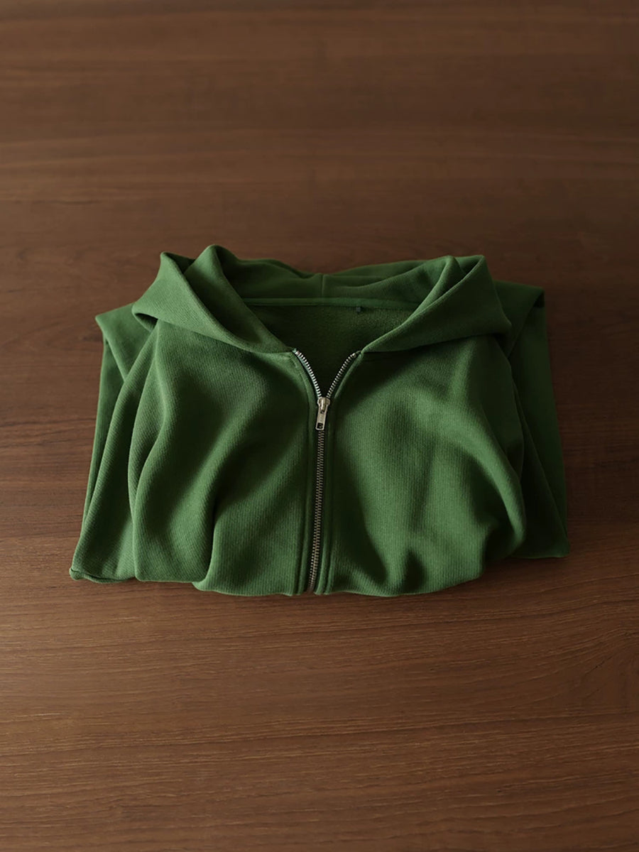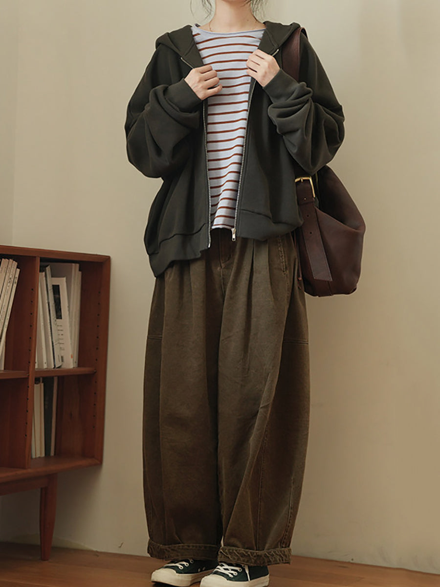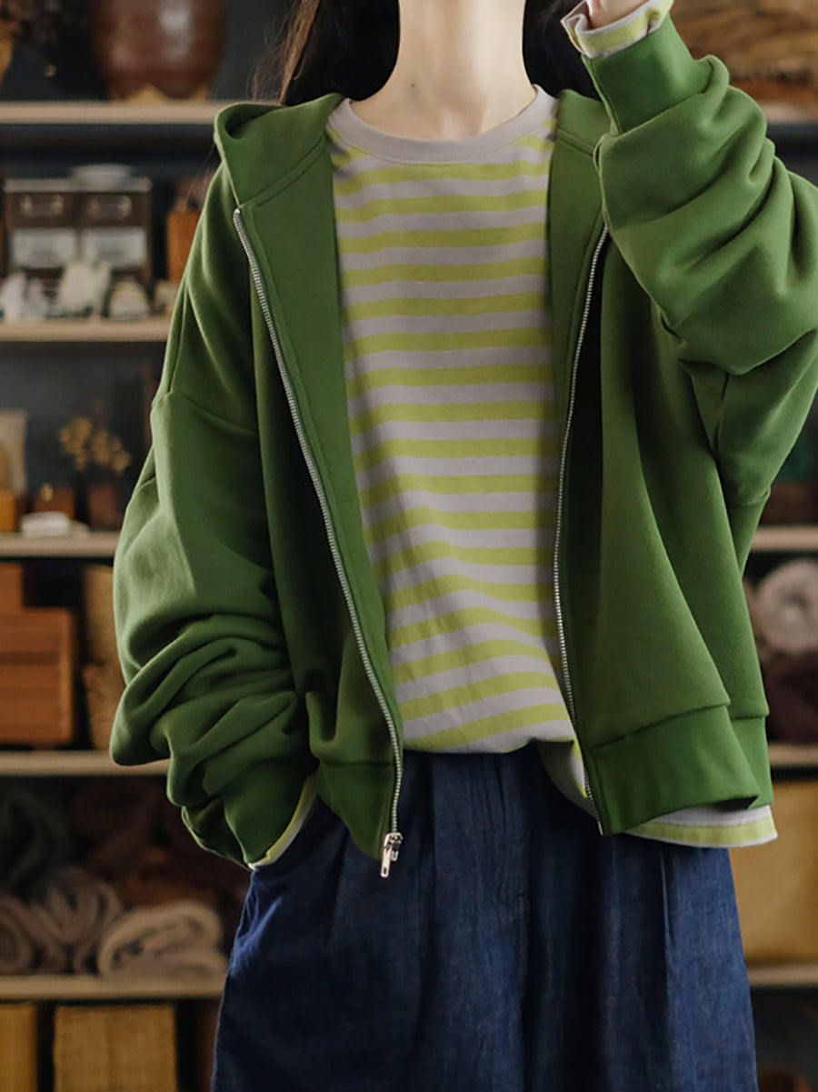 Dámský jarní ležérní bavlněný kabát s kapucí z čisté barvy