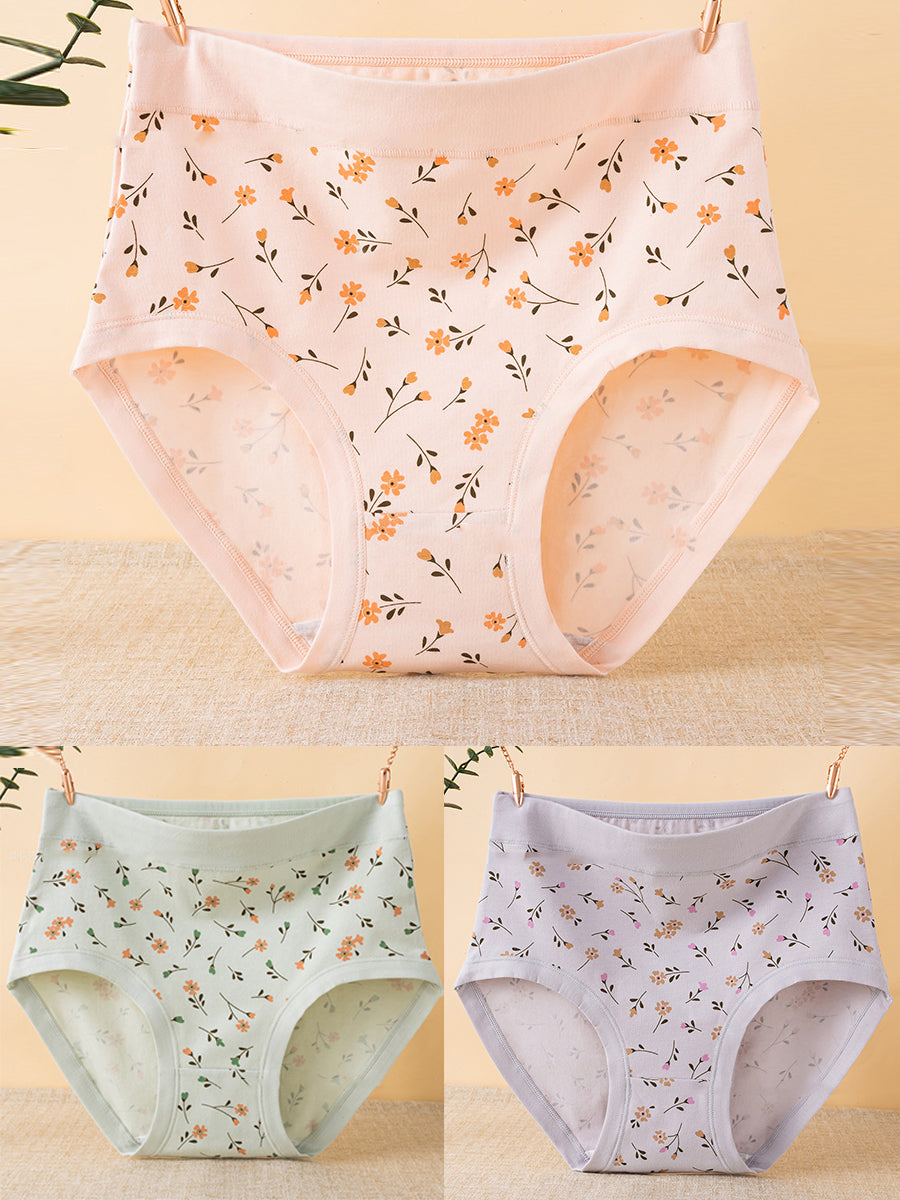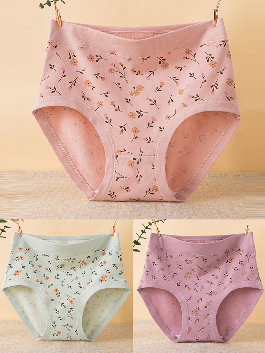 3dílné dámské umělecké květinové spodní prádlo s vysokým pasem