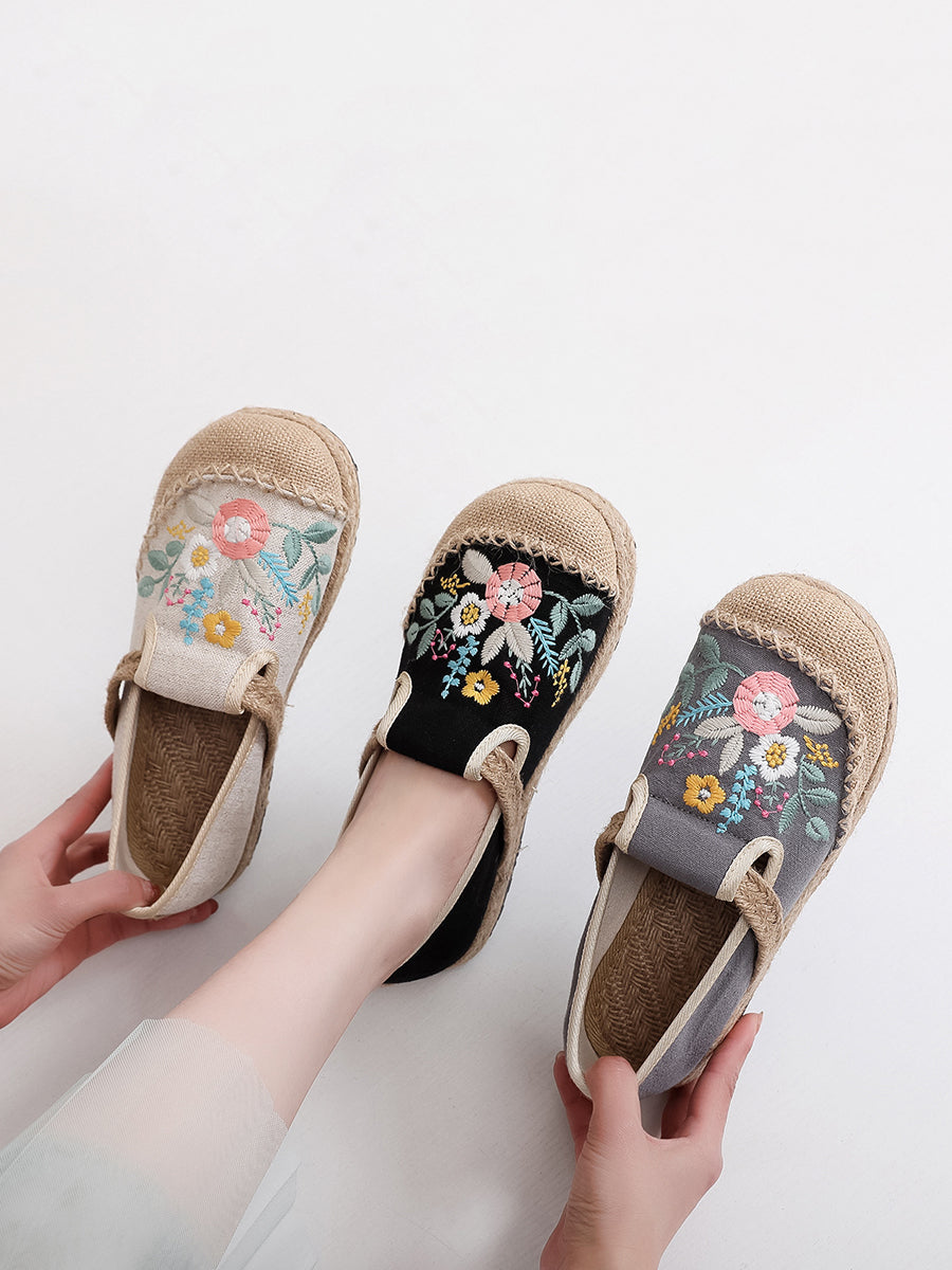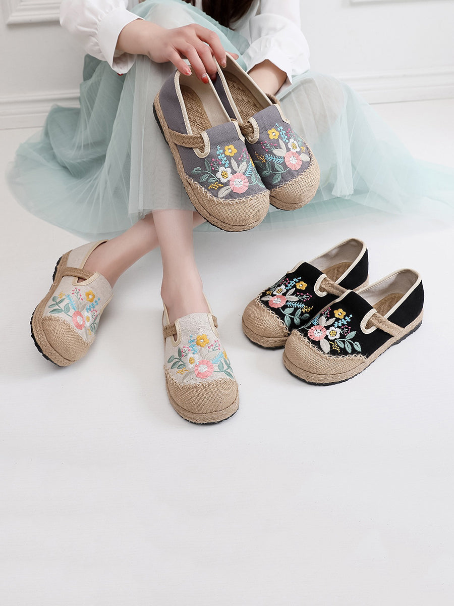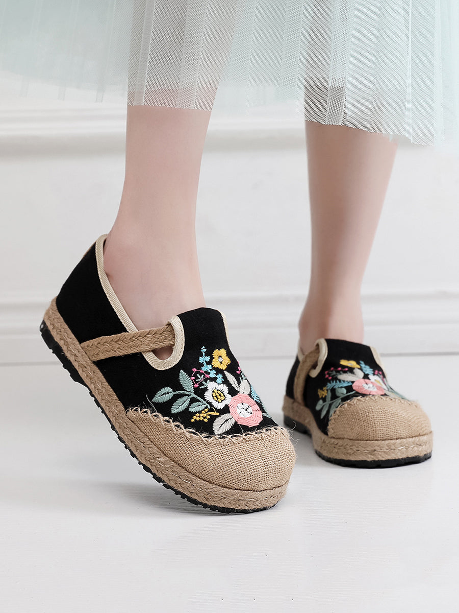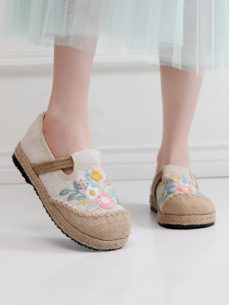 Dámské letní etnické květinové výšivkové lněné boty