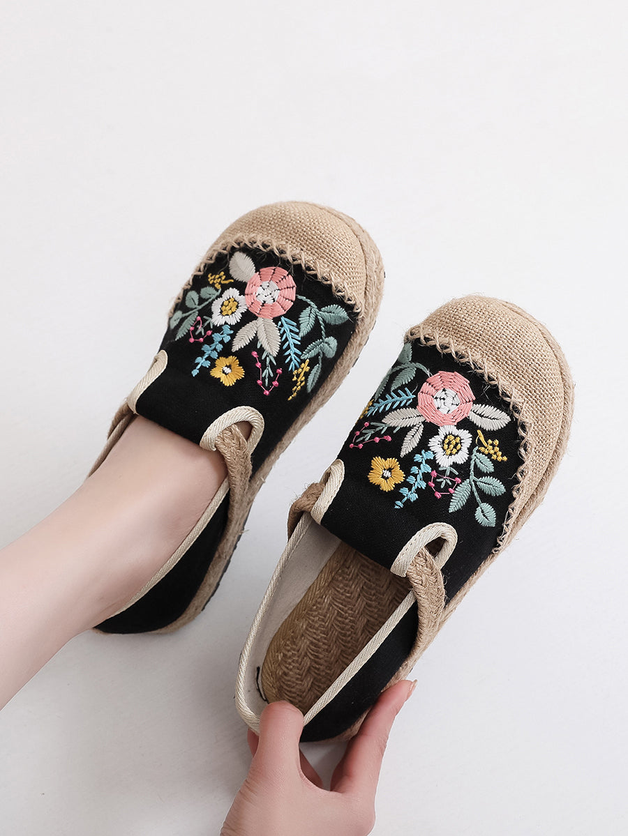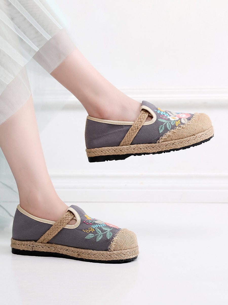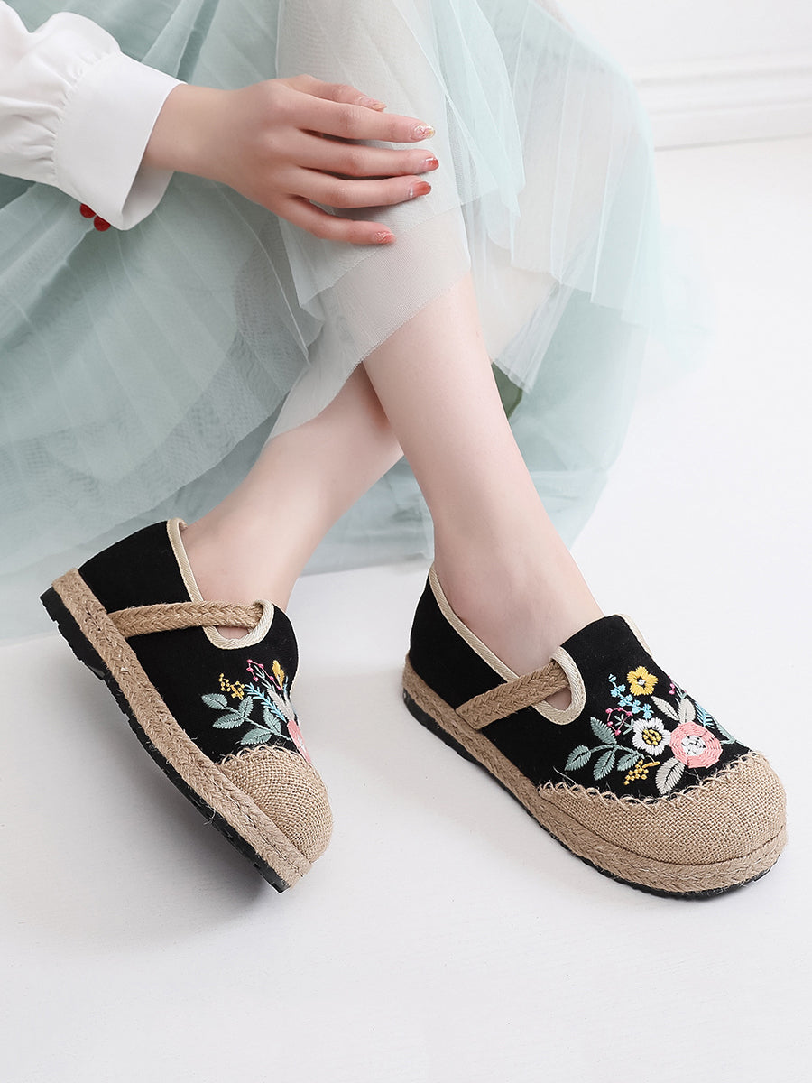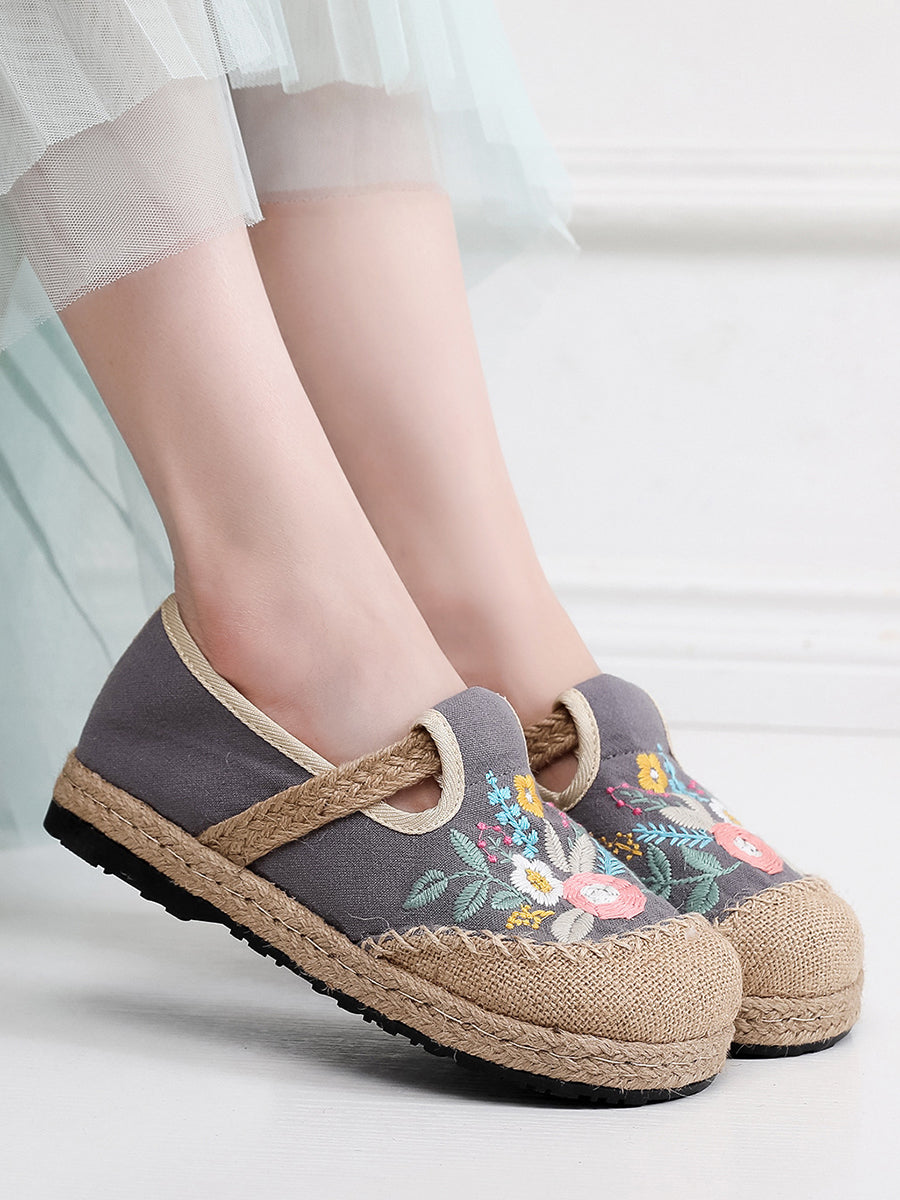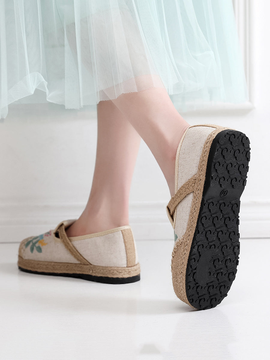 Dámské letní etnické květinové výšivkové lněné boty