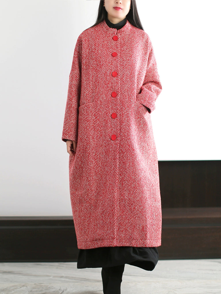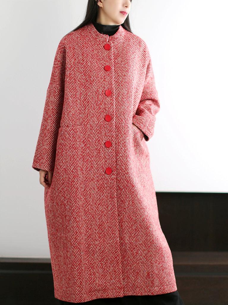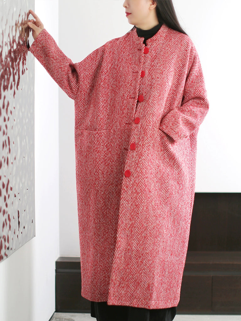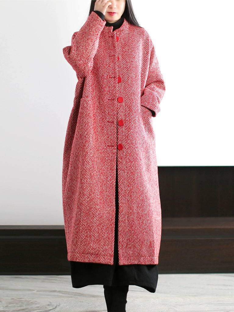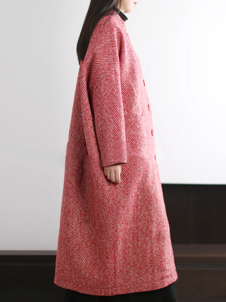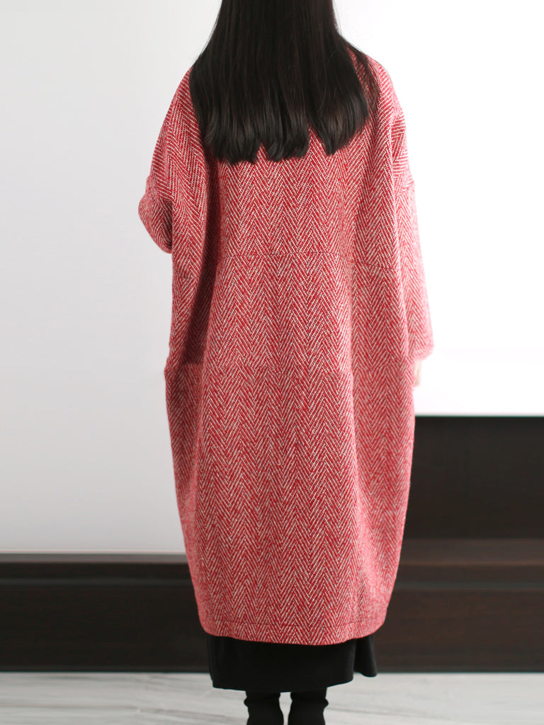 Dámský vintage zimní vlněný kabát ve tvaru kokonu