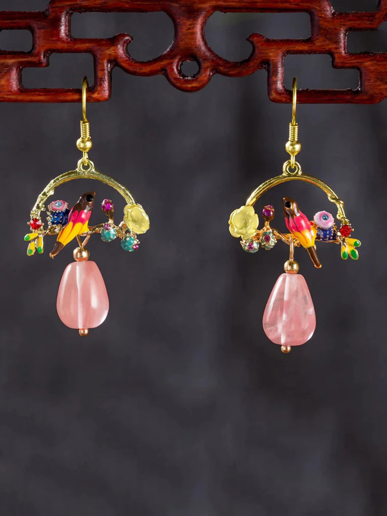 Pták A Květina Chalcedon Přívěsek Náušnice