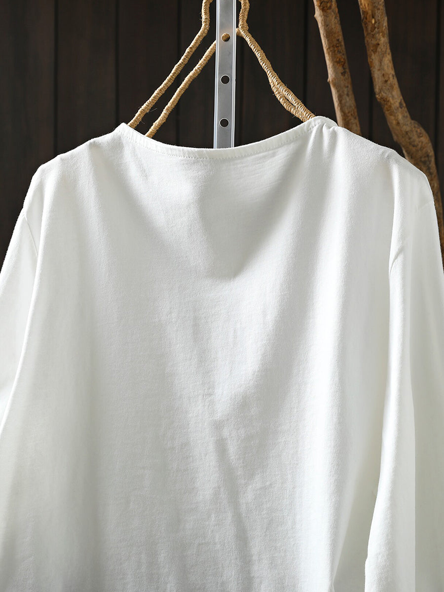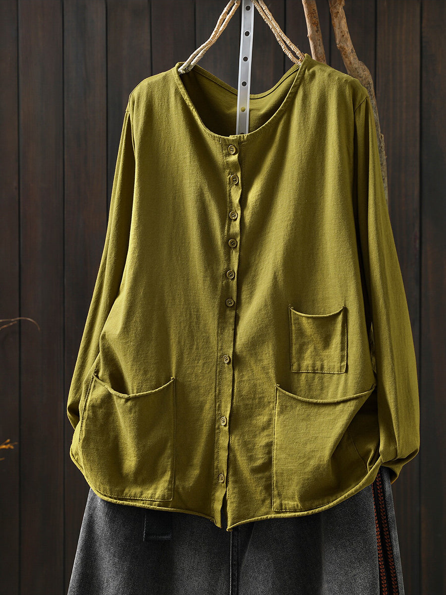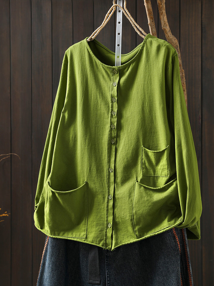 Dámská jarní umělecká čistě barevná halenka s výstřihem do O-neck, 100% bavlna