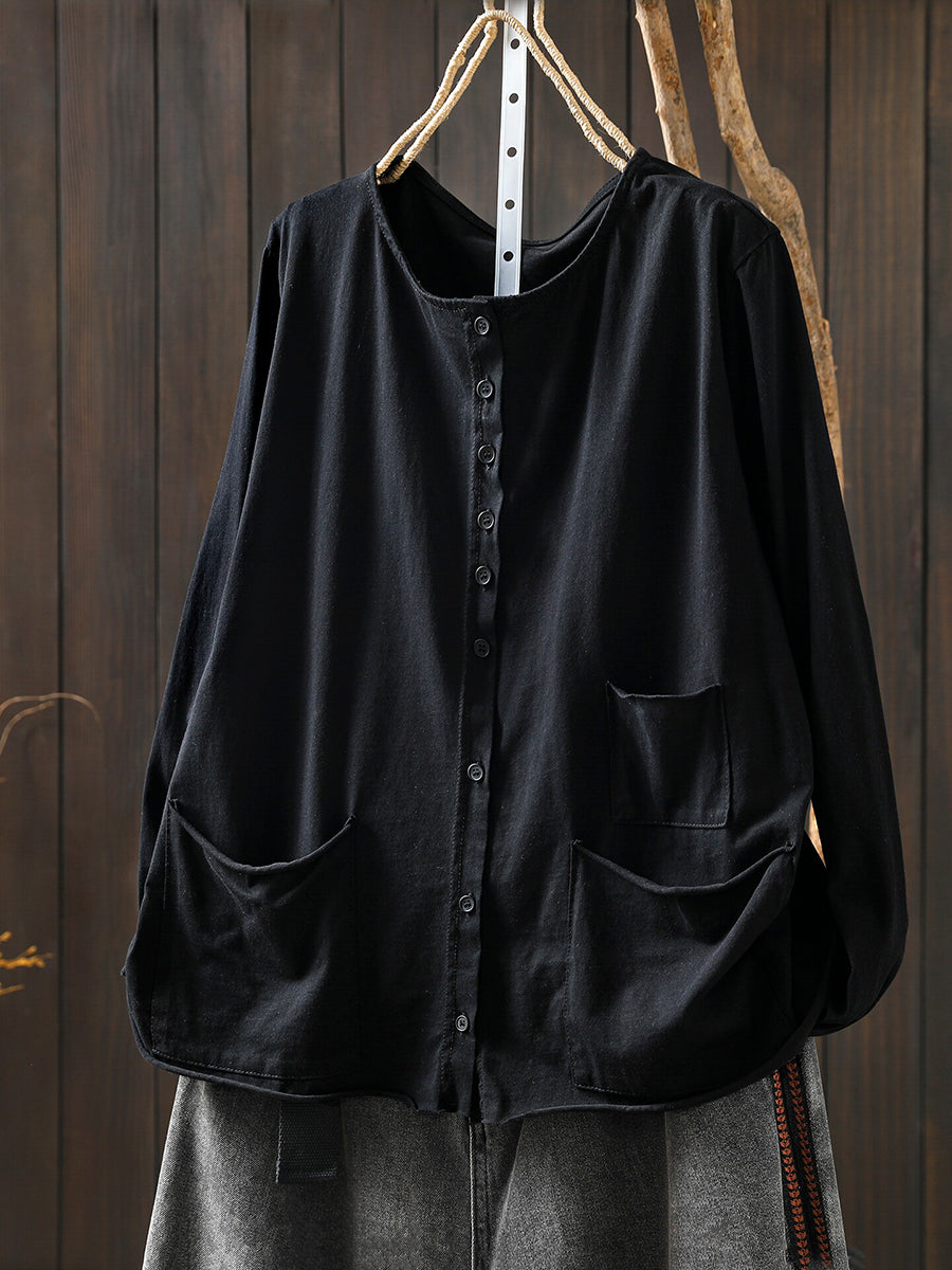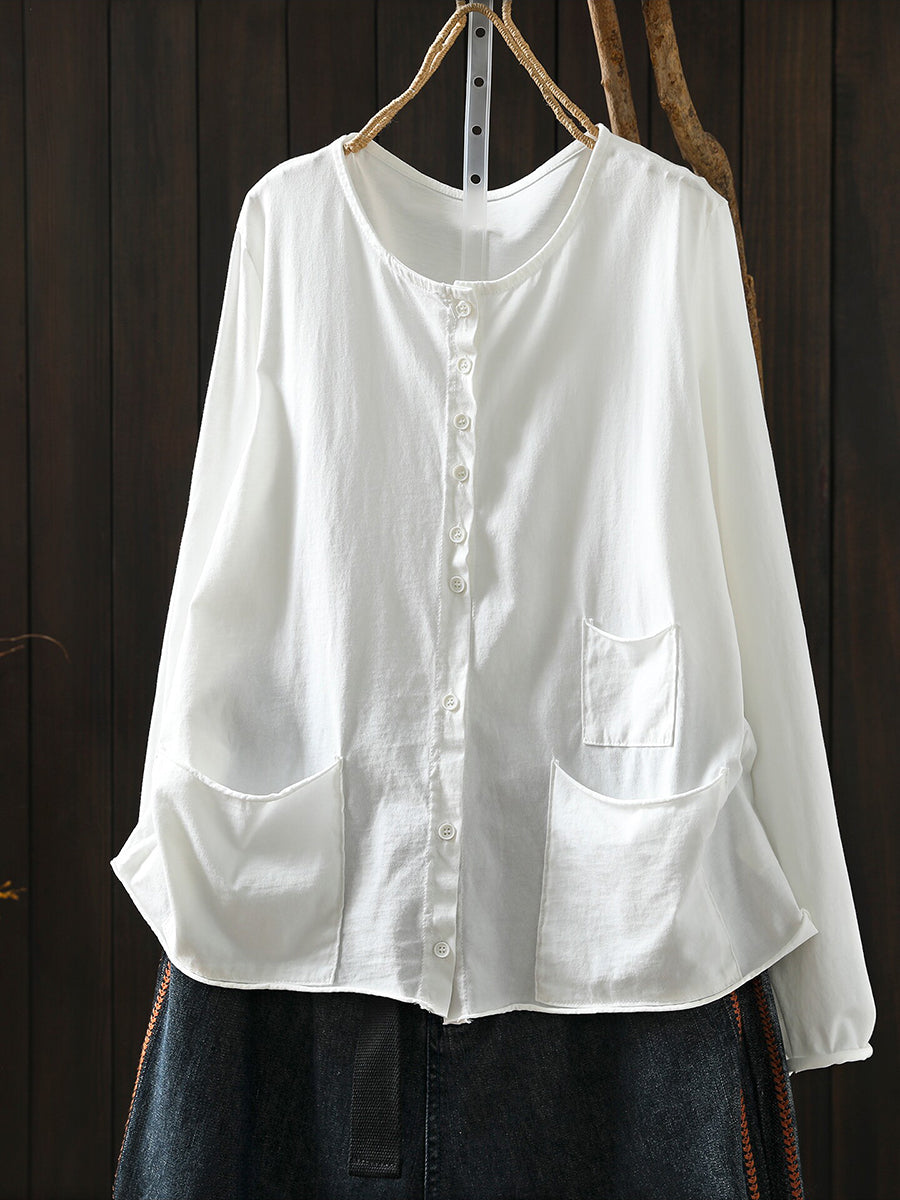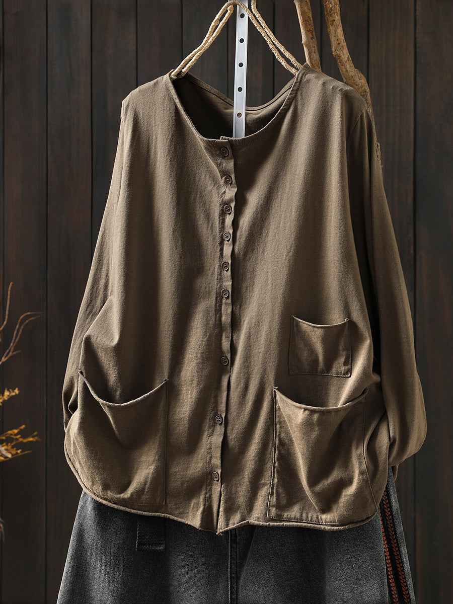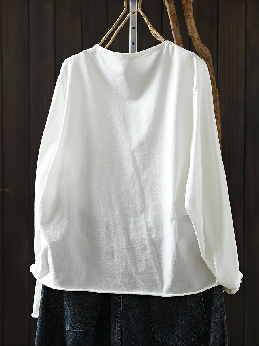 Dámská jarní umělecká čistě barevná halenka s výstřihem do O-neck, 100% bavlna