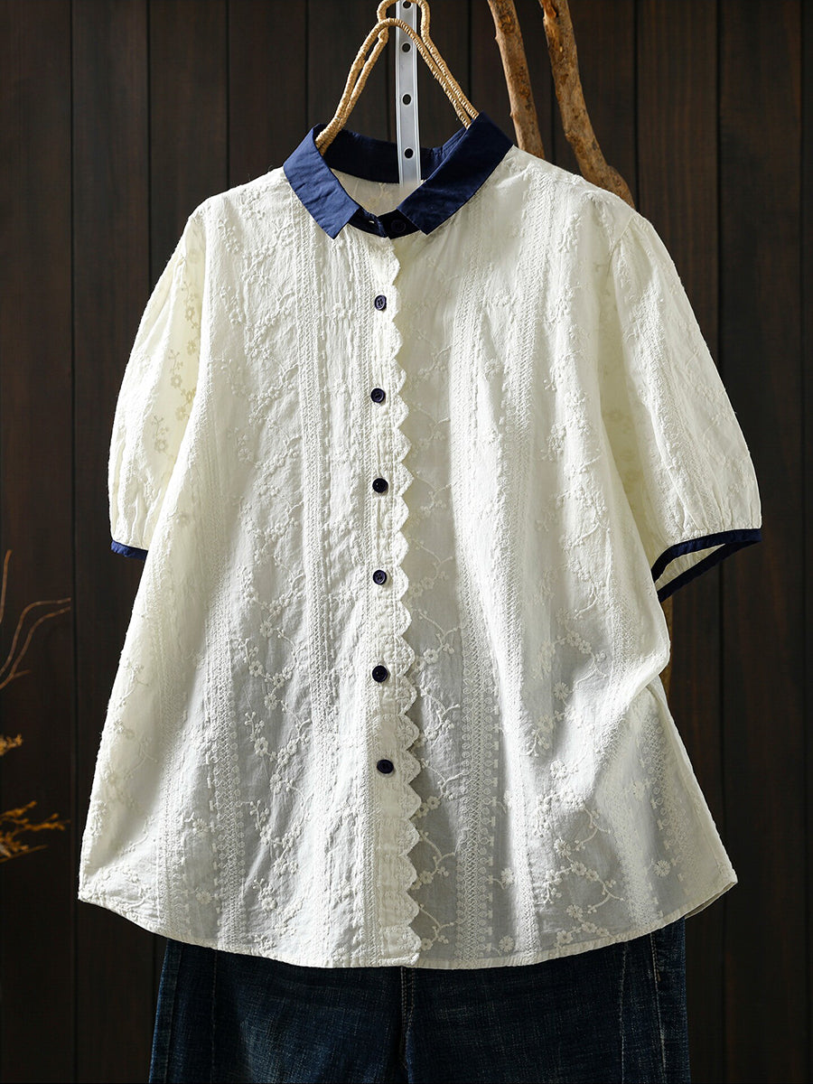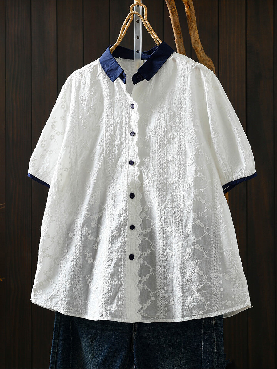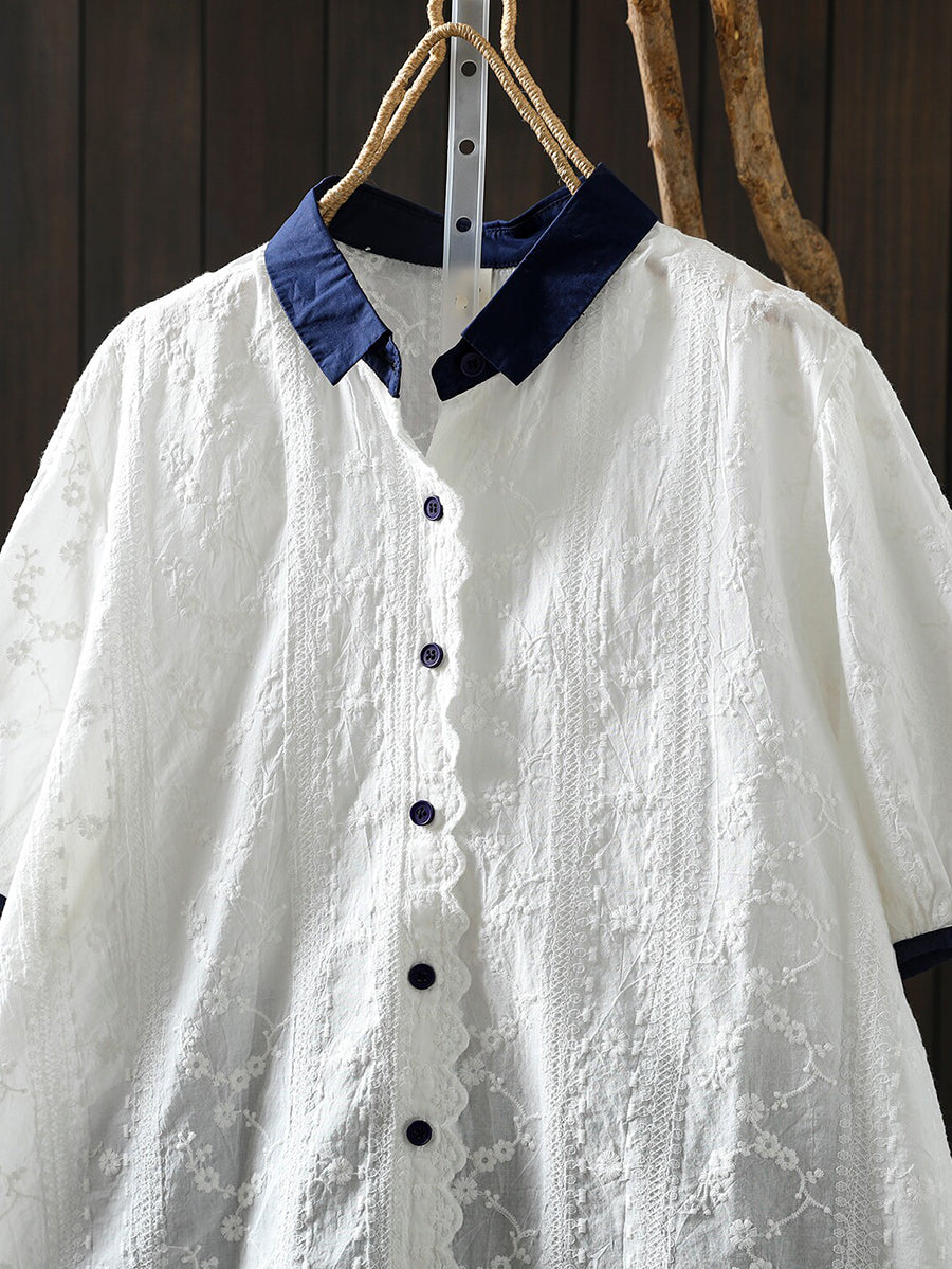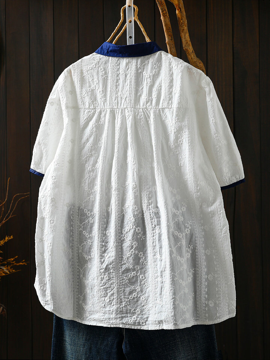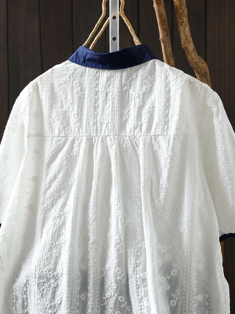 Dámské letní umělecké vyšívané tričko ze 100% bavlny