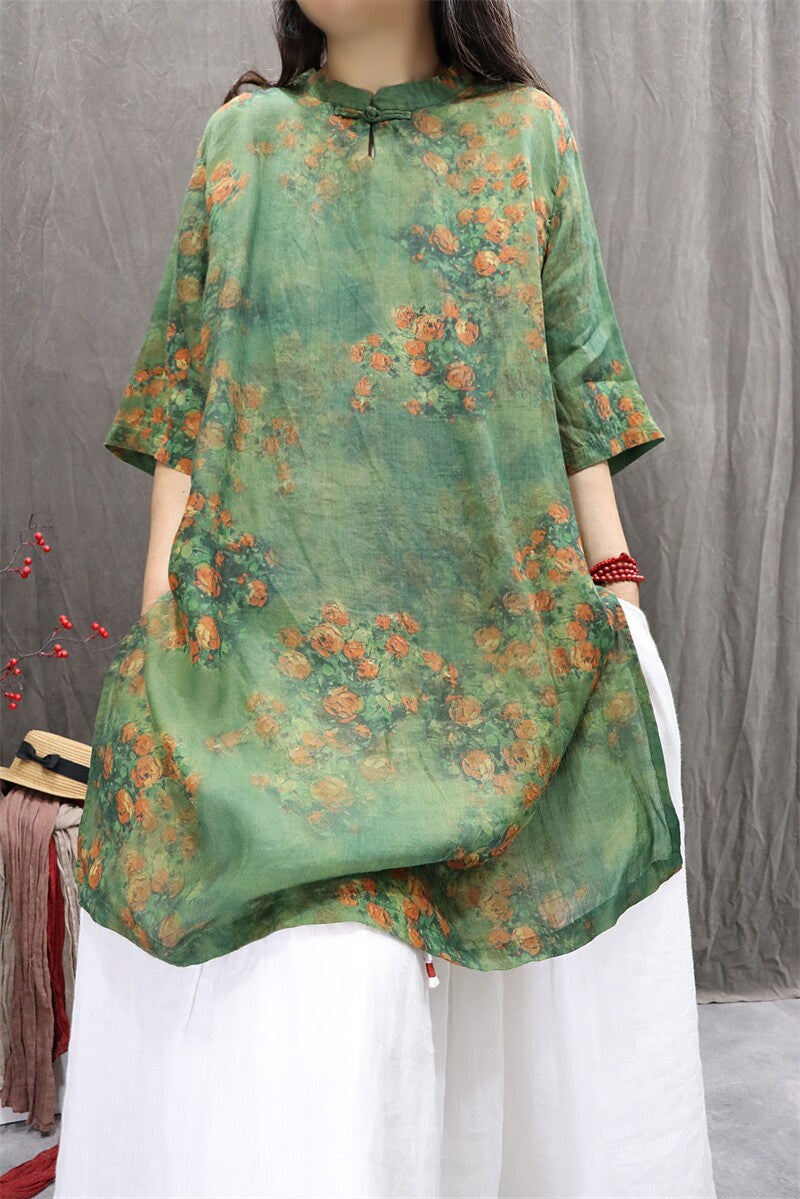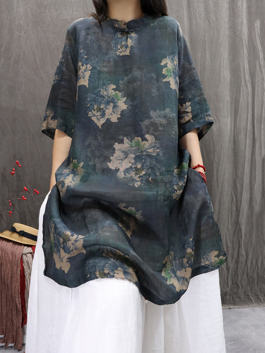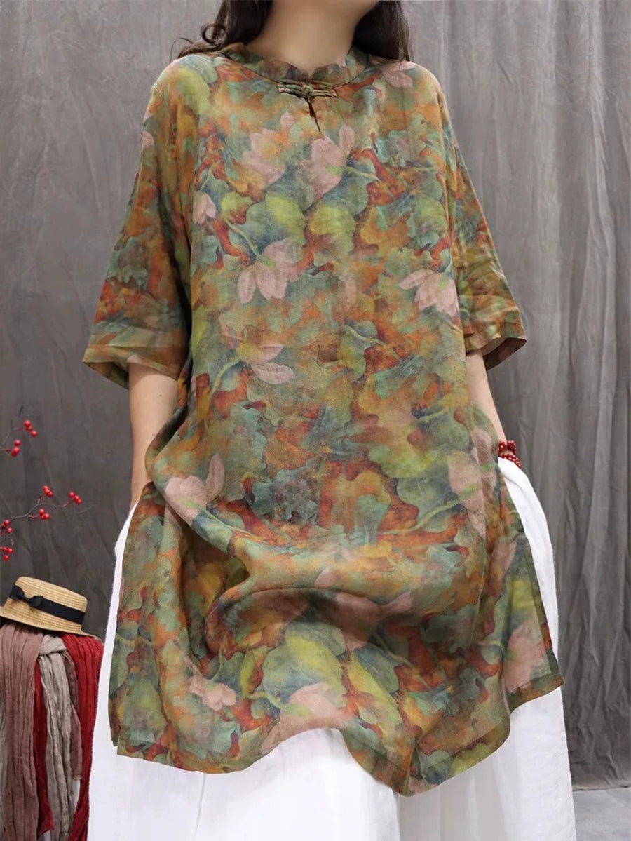 Dámské letní umělecké květinové halenky ze 100% ramie