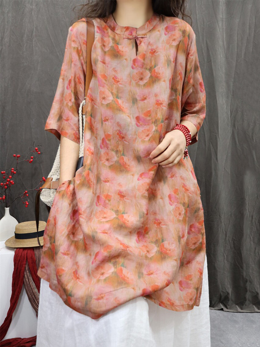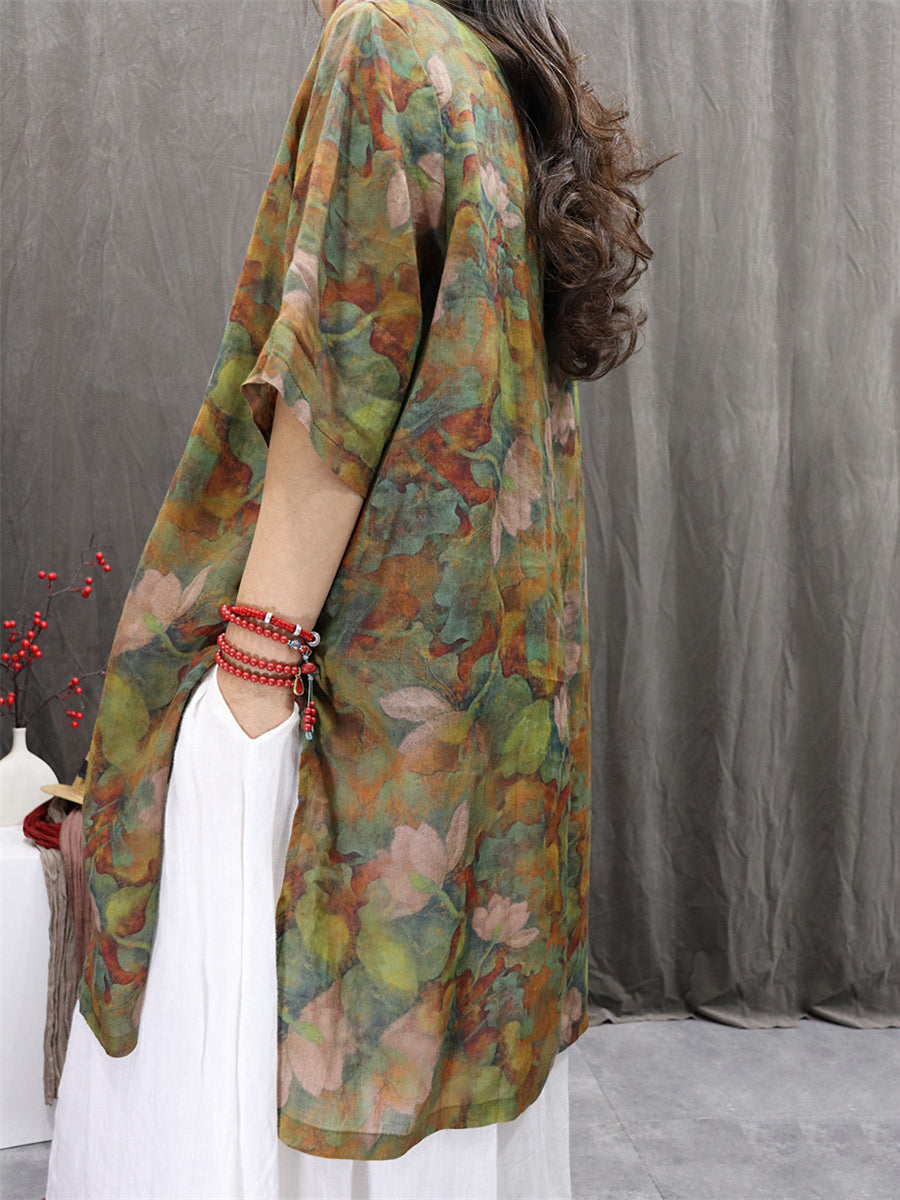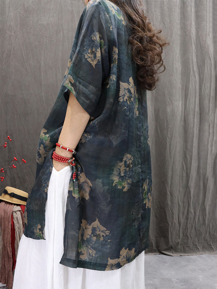 Dámské letní umělecké květinové halenky ze 100% ramie