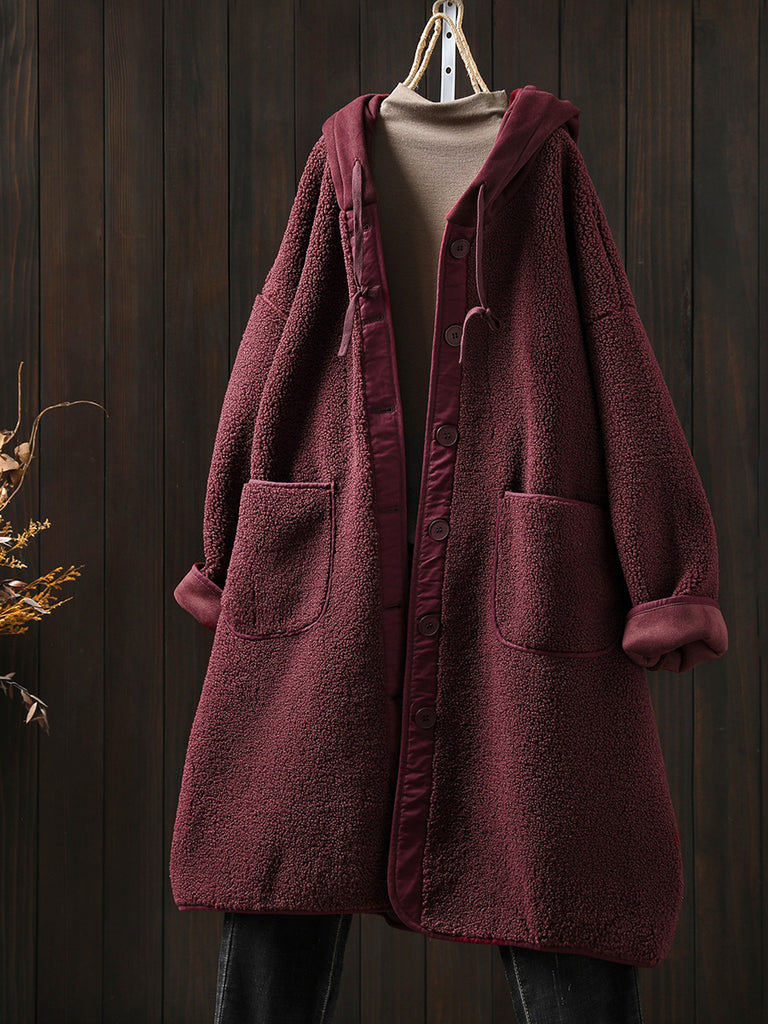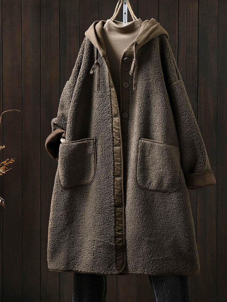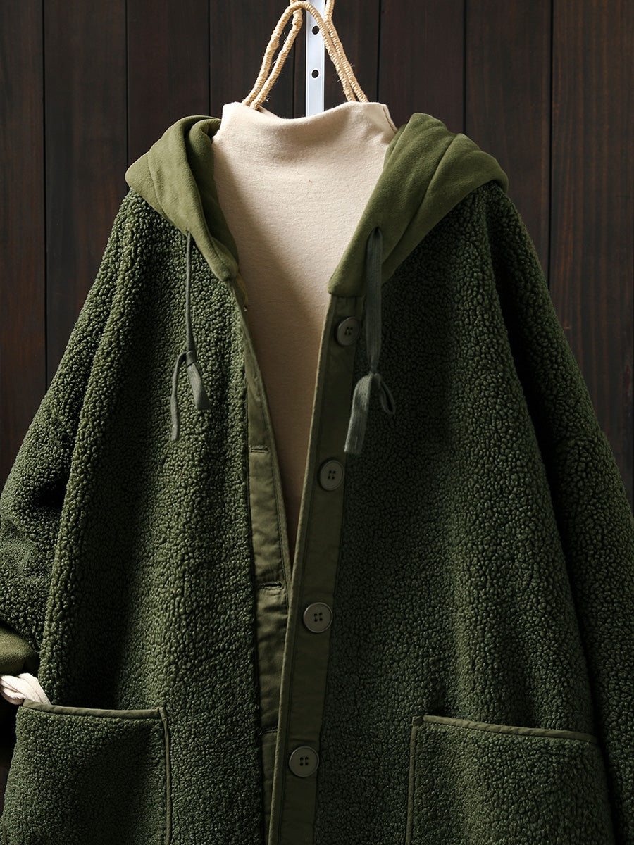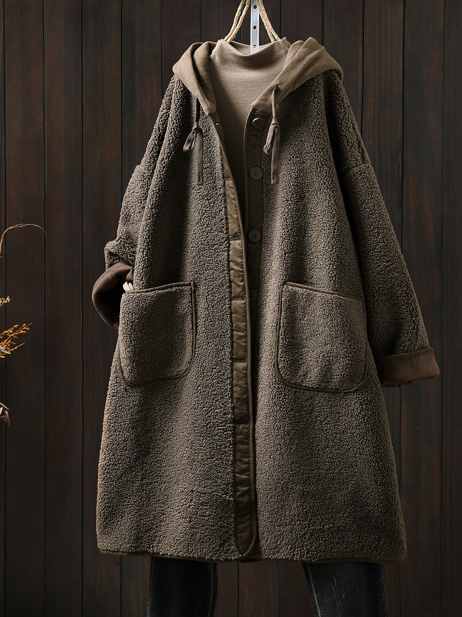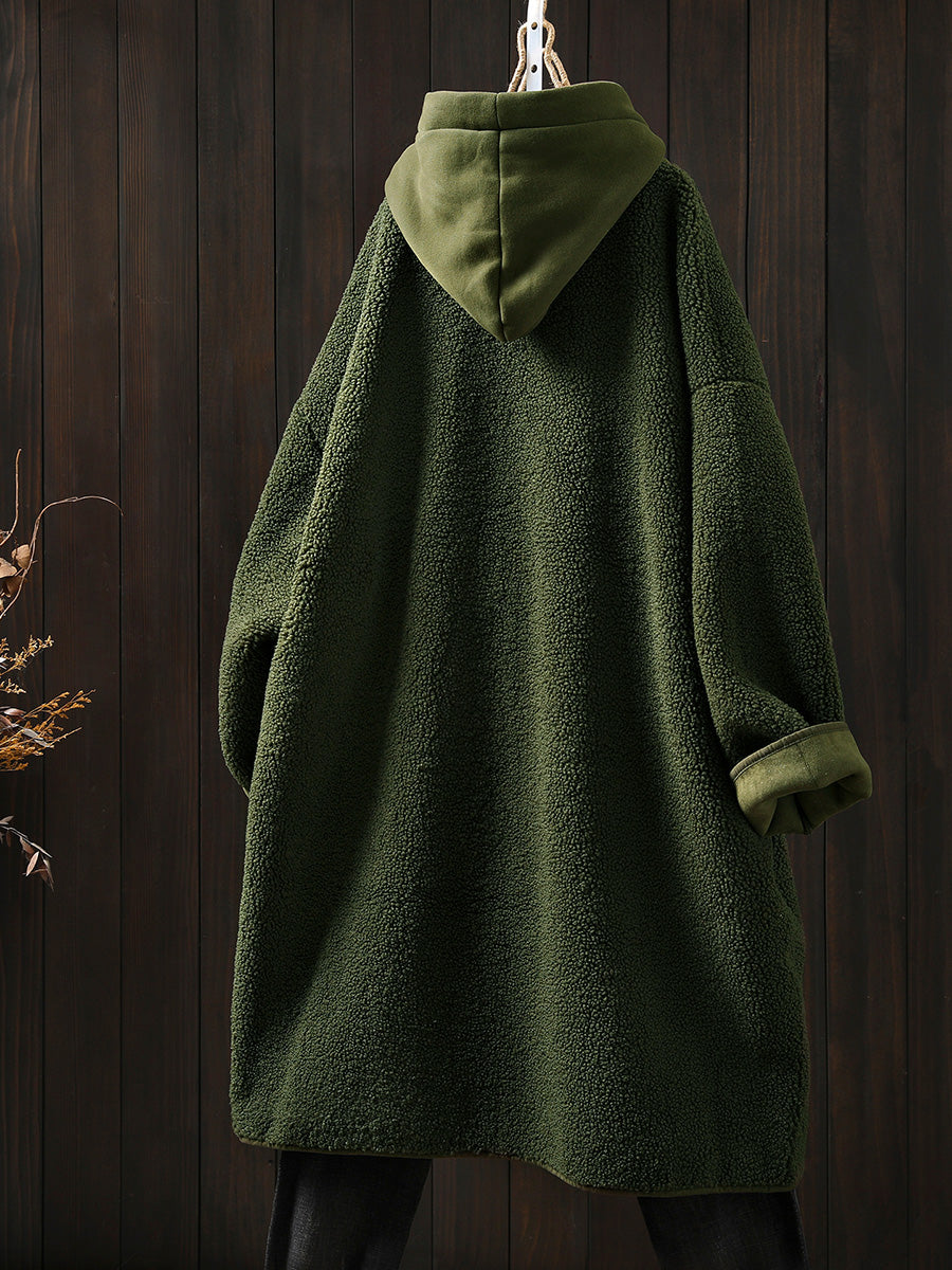 Tento dámský kabát se vyznačuje jednobarevným designem s kapucí a raglánovými rukávy po celé délce. Jeho retro styl je ideální pro podzimní i zimní období a poskytuje teplo a pohodlí během chladnějších měsíců.