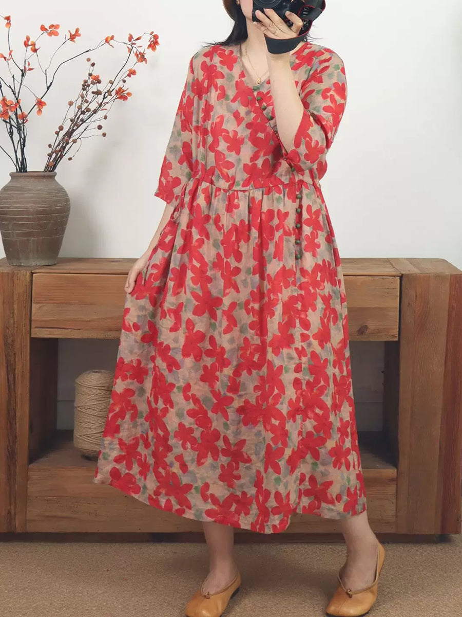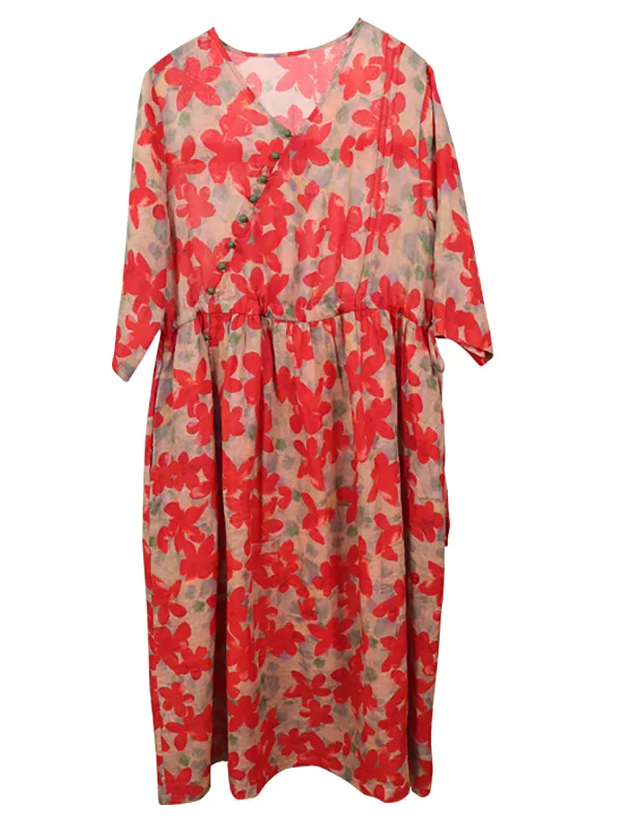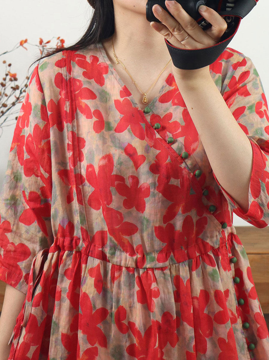 Dámské letní umělecké květinové šaty s výstřihem do V a ramie