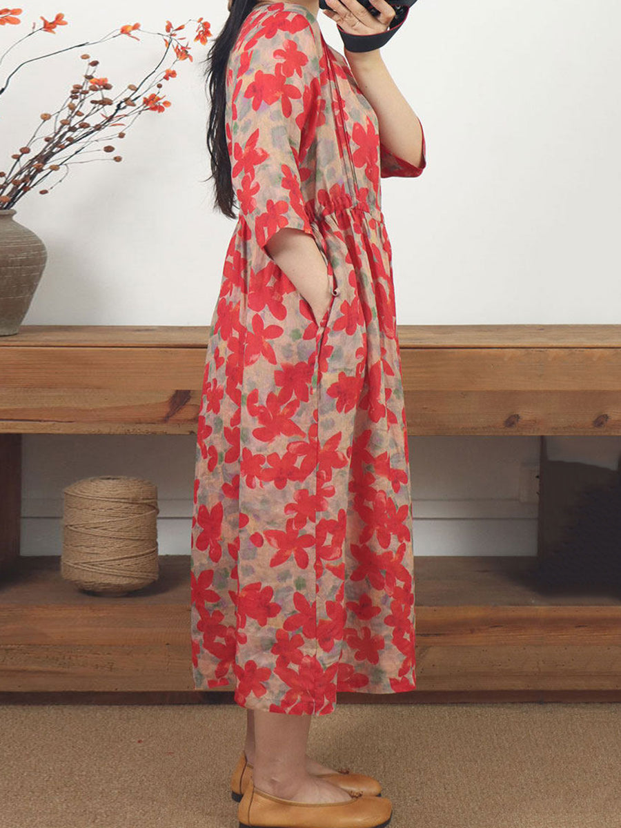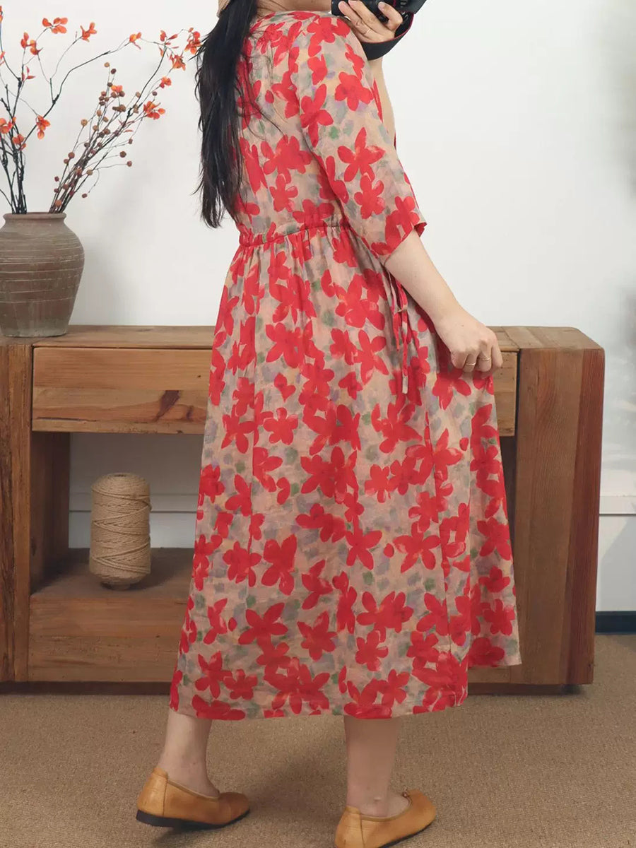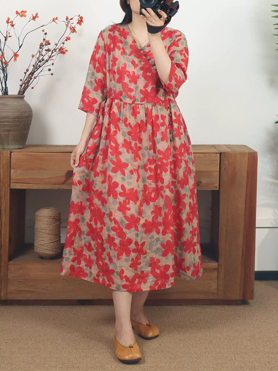 Dámské letní umělecké květinové šaty s výstřihem do V a ramie