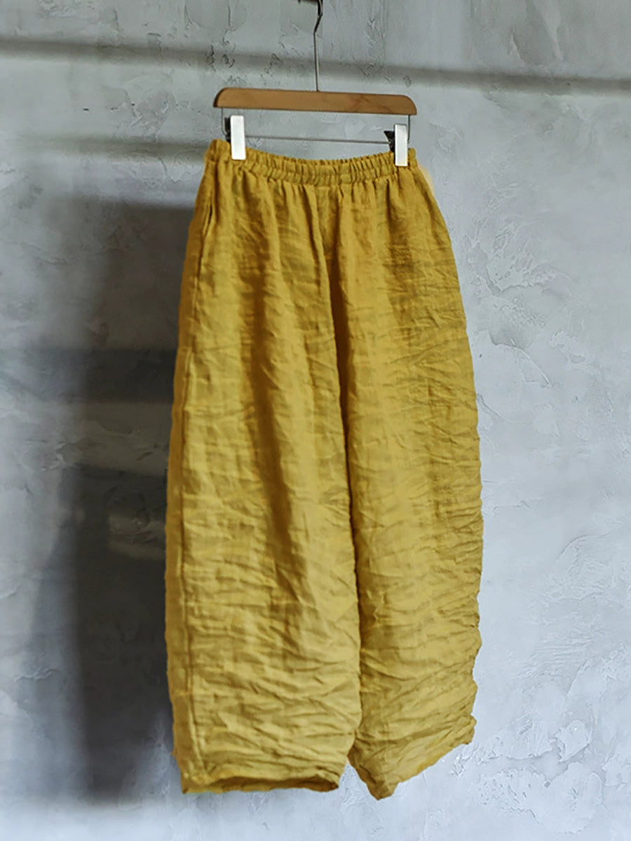 Dámské jarní retro lněné kalhoty s širokými nohavicemi