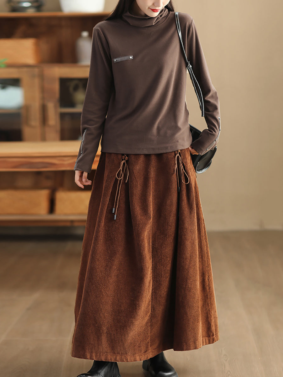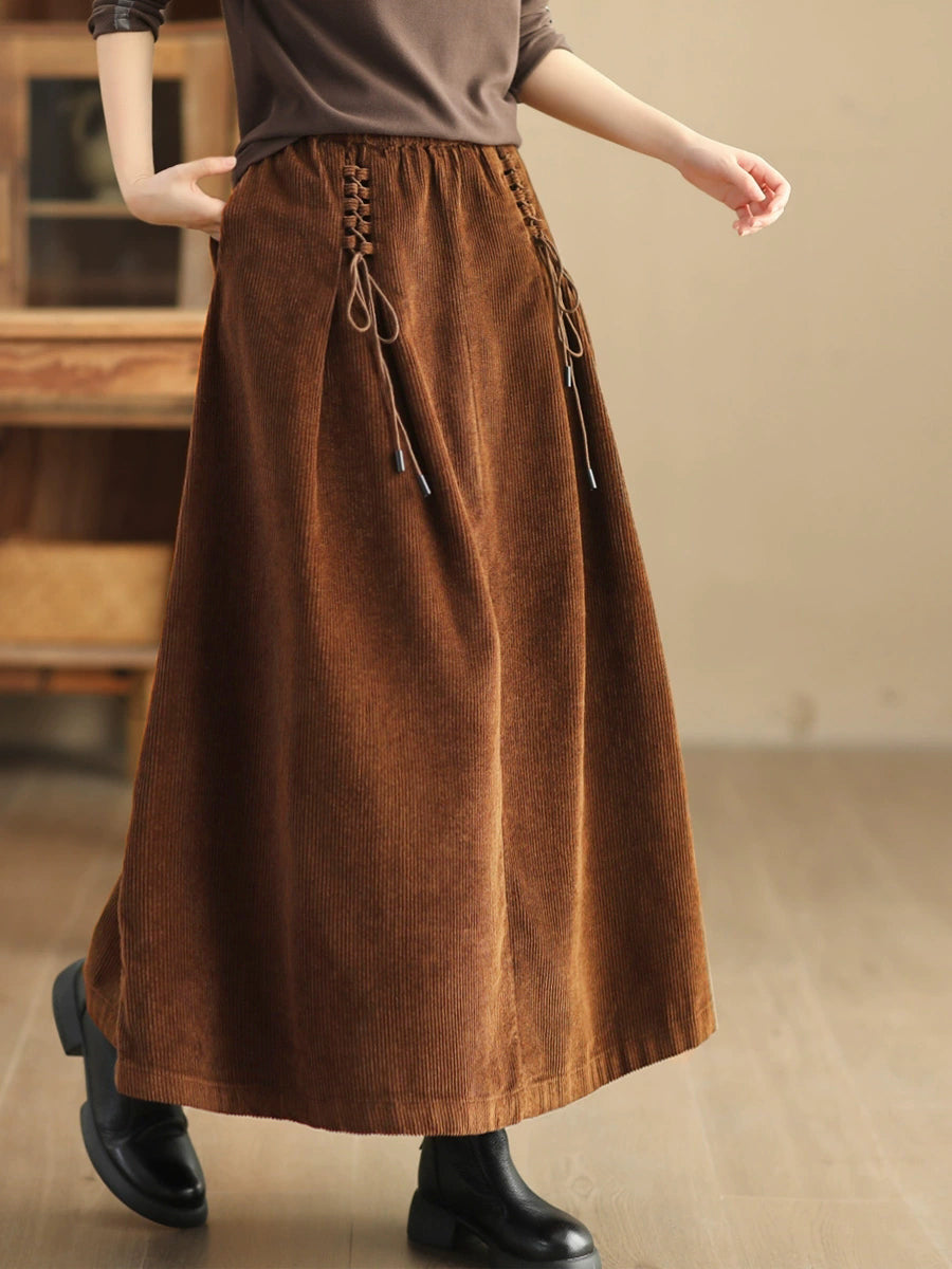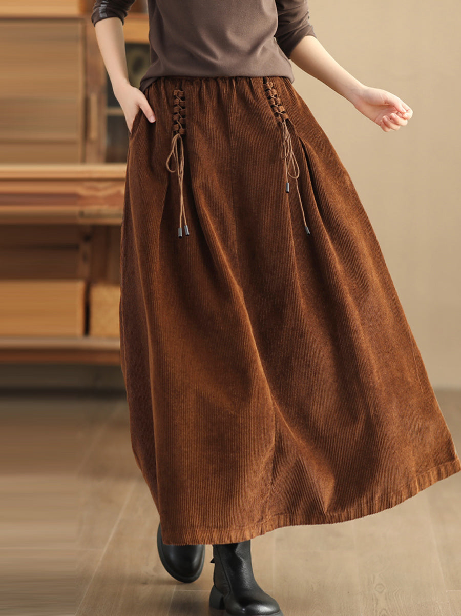 Dámská podzimní retro manšestrová sukně ve tvaru A