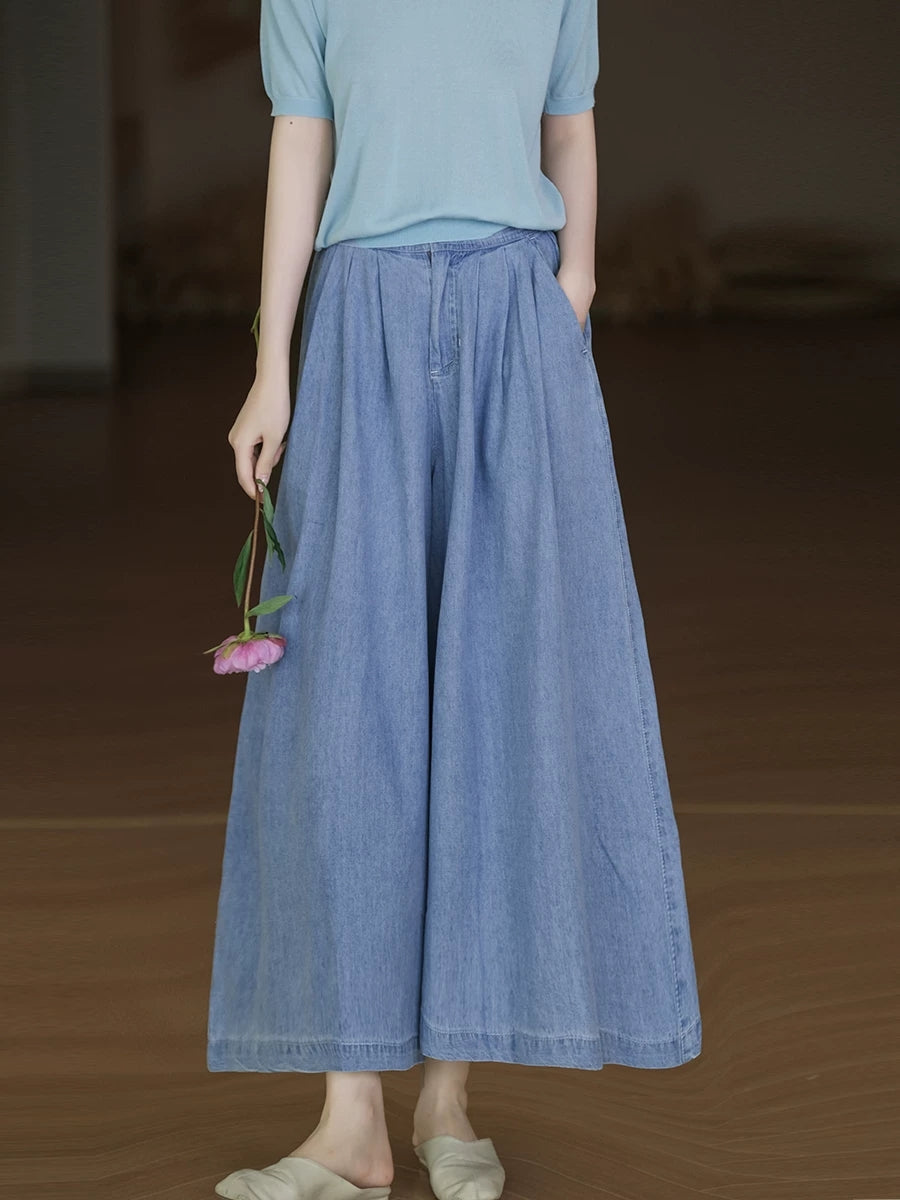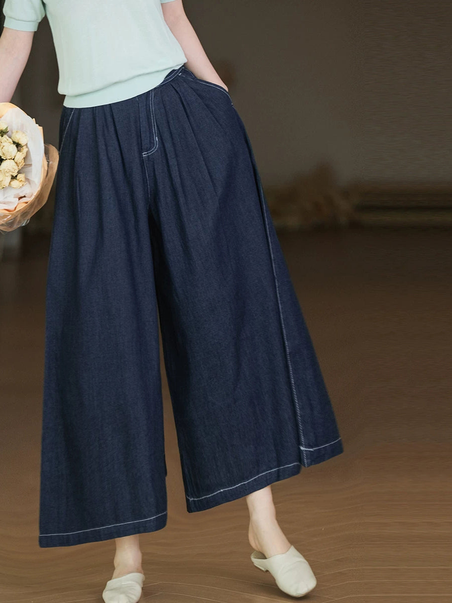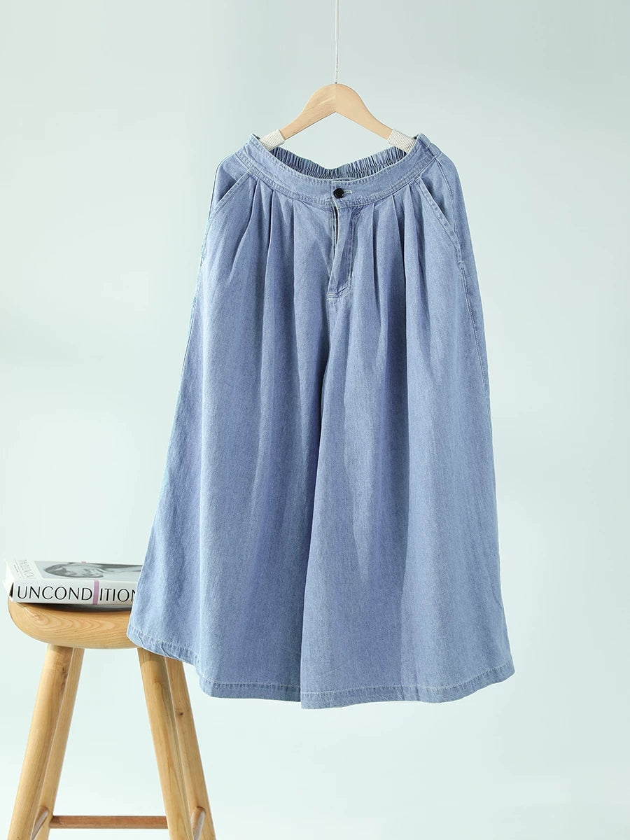 Dámské letní ležérní džíny s širokými nohavicemi v čistých barvách