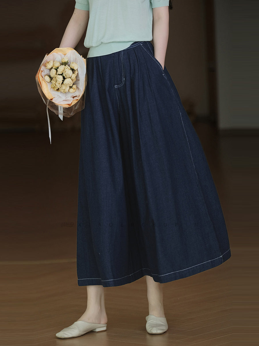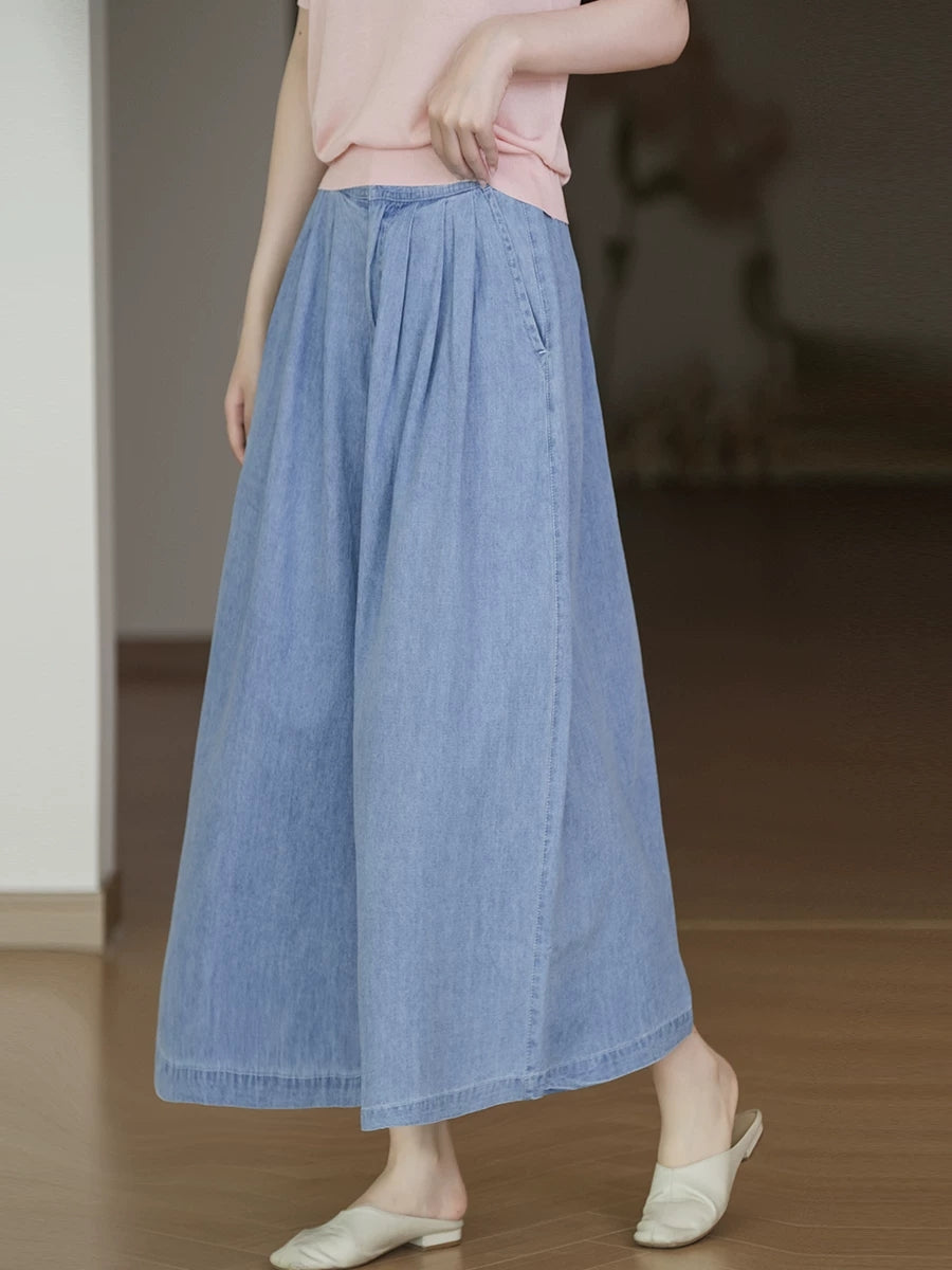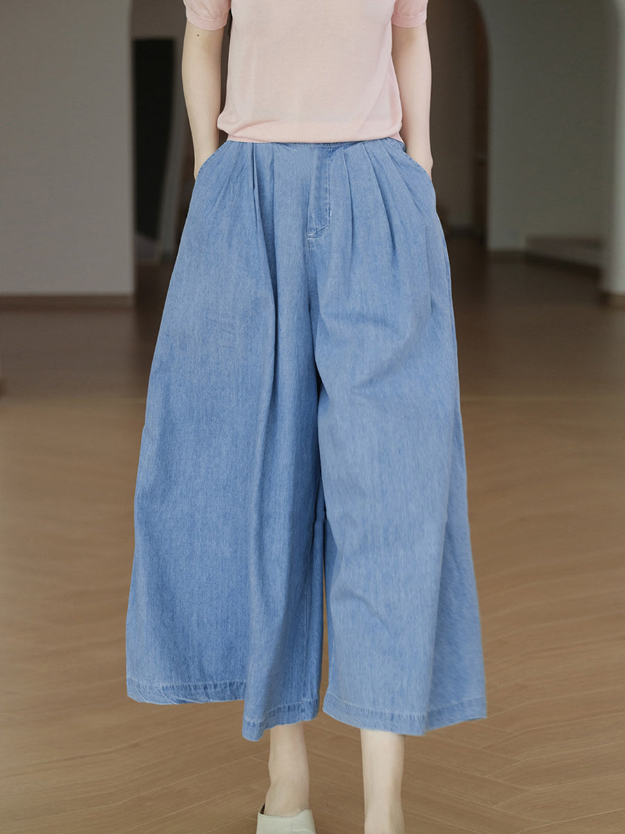 Dámské letní ležérní džíny s širokými nohavicemi v čistých barvách