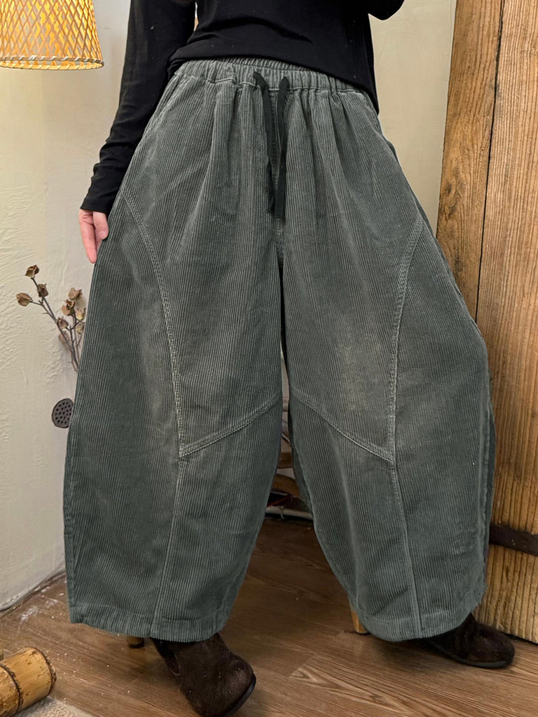 Dámské podzimní retro čisté barevné manšestrové harémové kalhoty