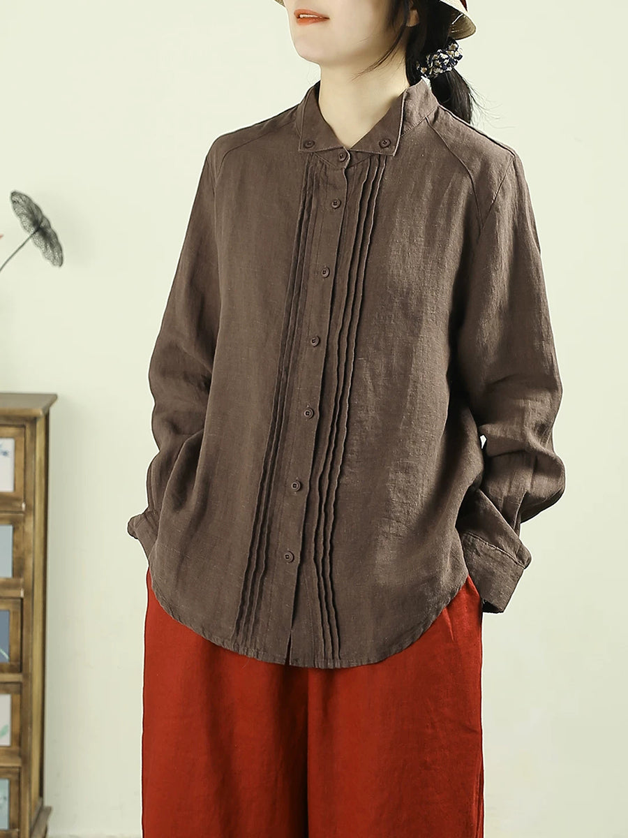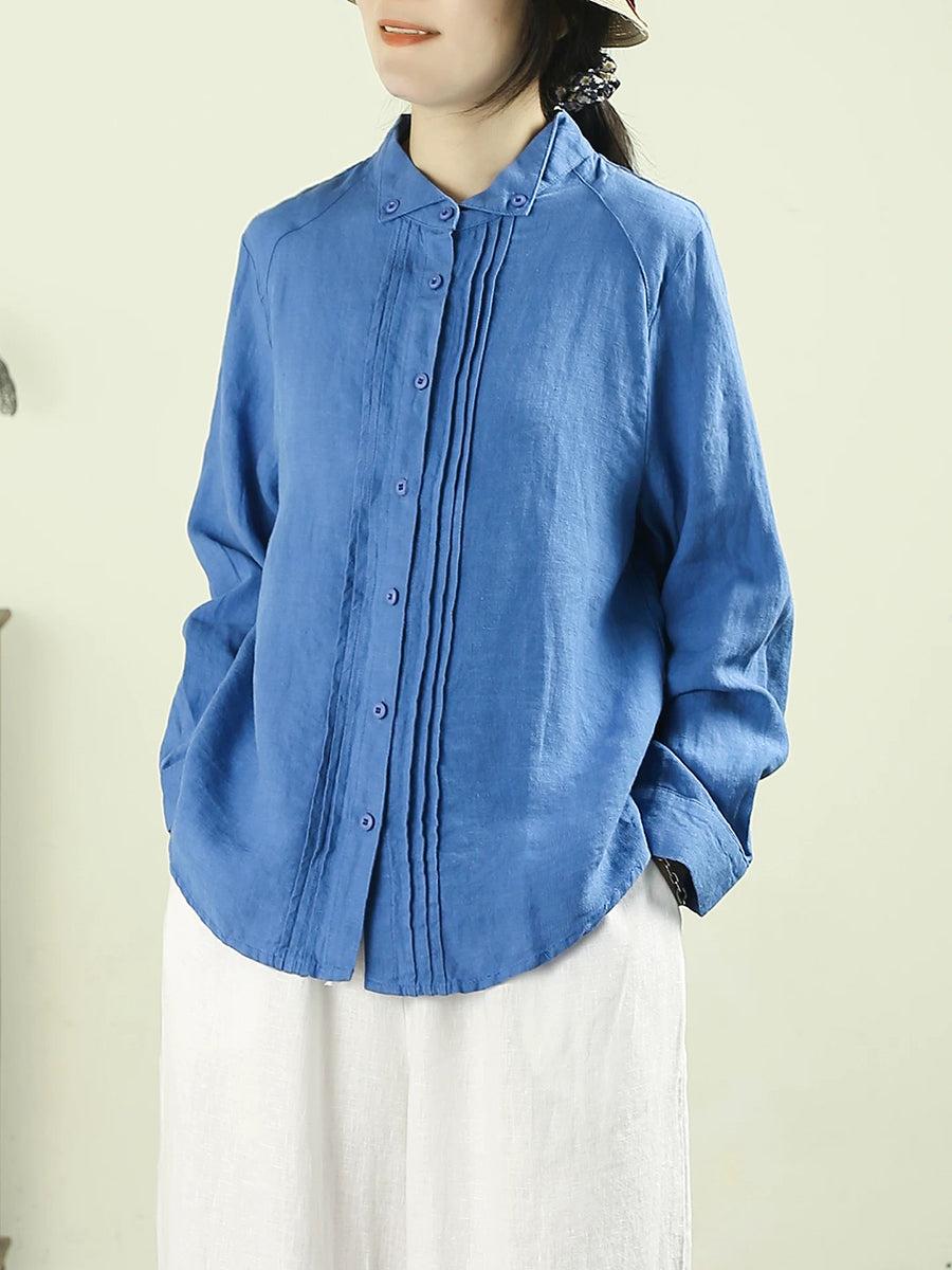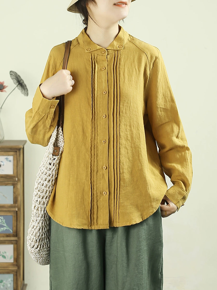 Dámská umělecká jarní nařasená košile v čistých barvách, 100% lněný vzor