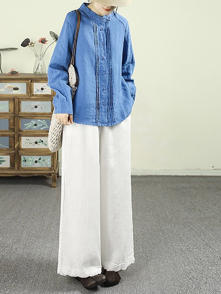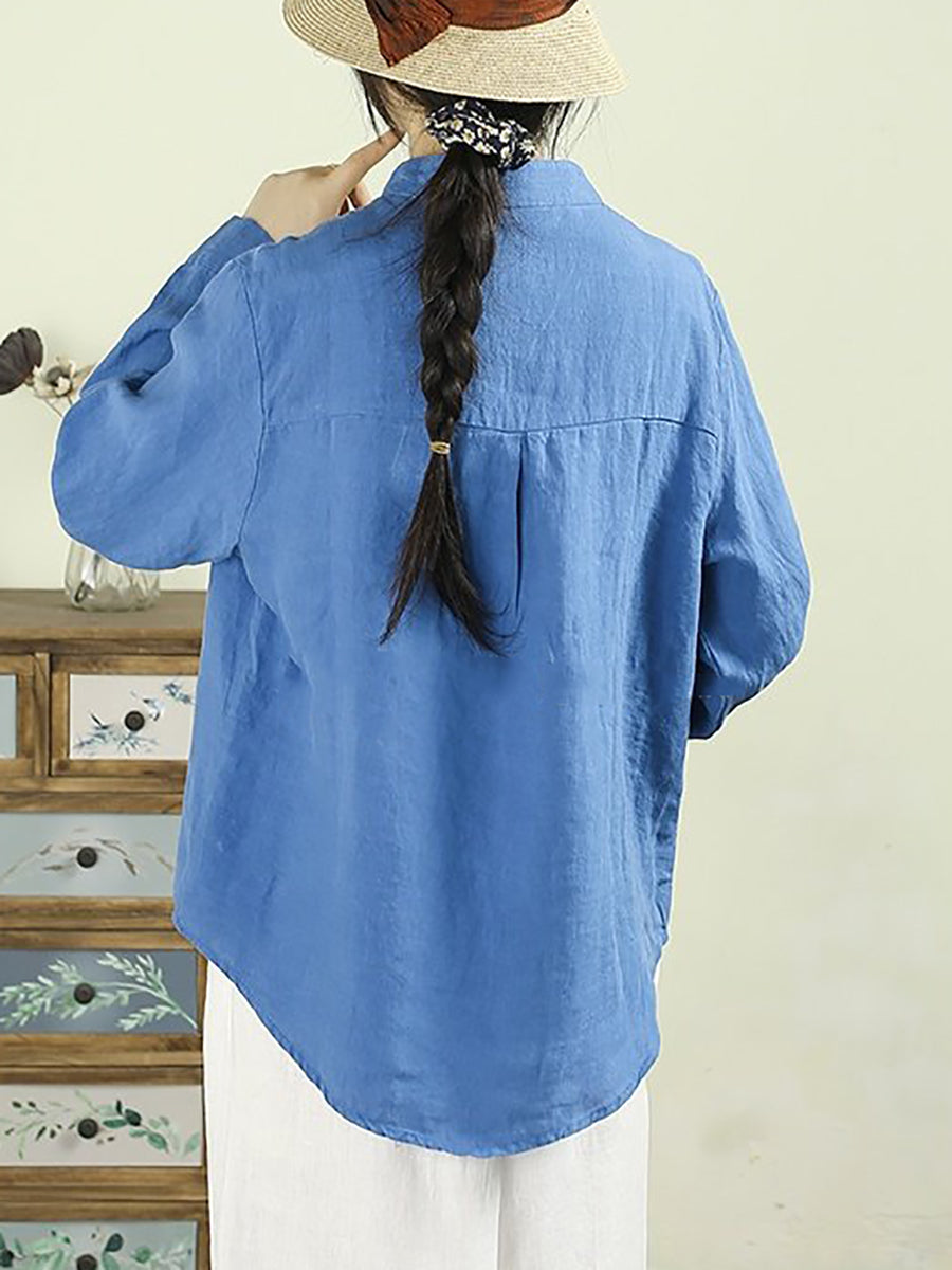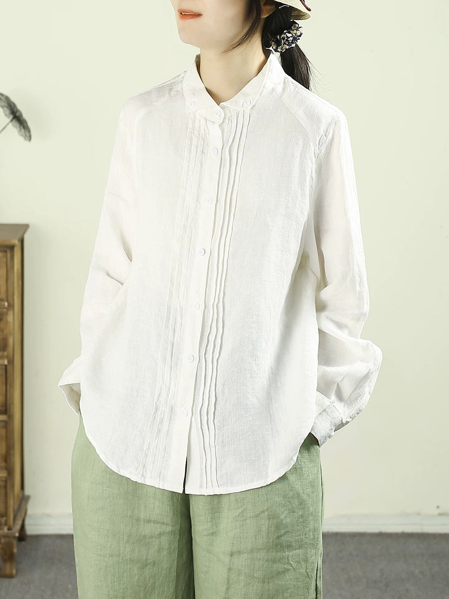 Dámská umělecká jarní nařasená košile v čistých barvách, 100% lněný vzor