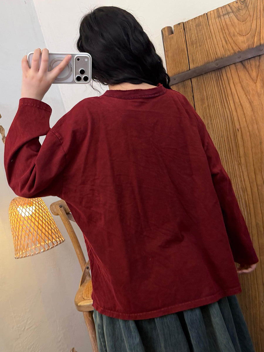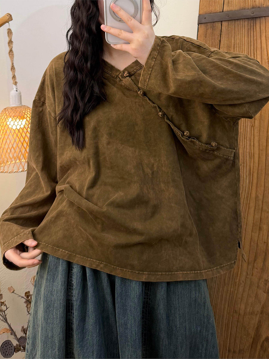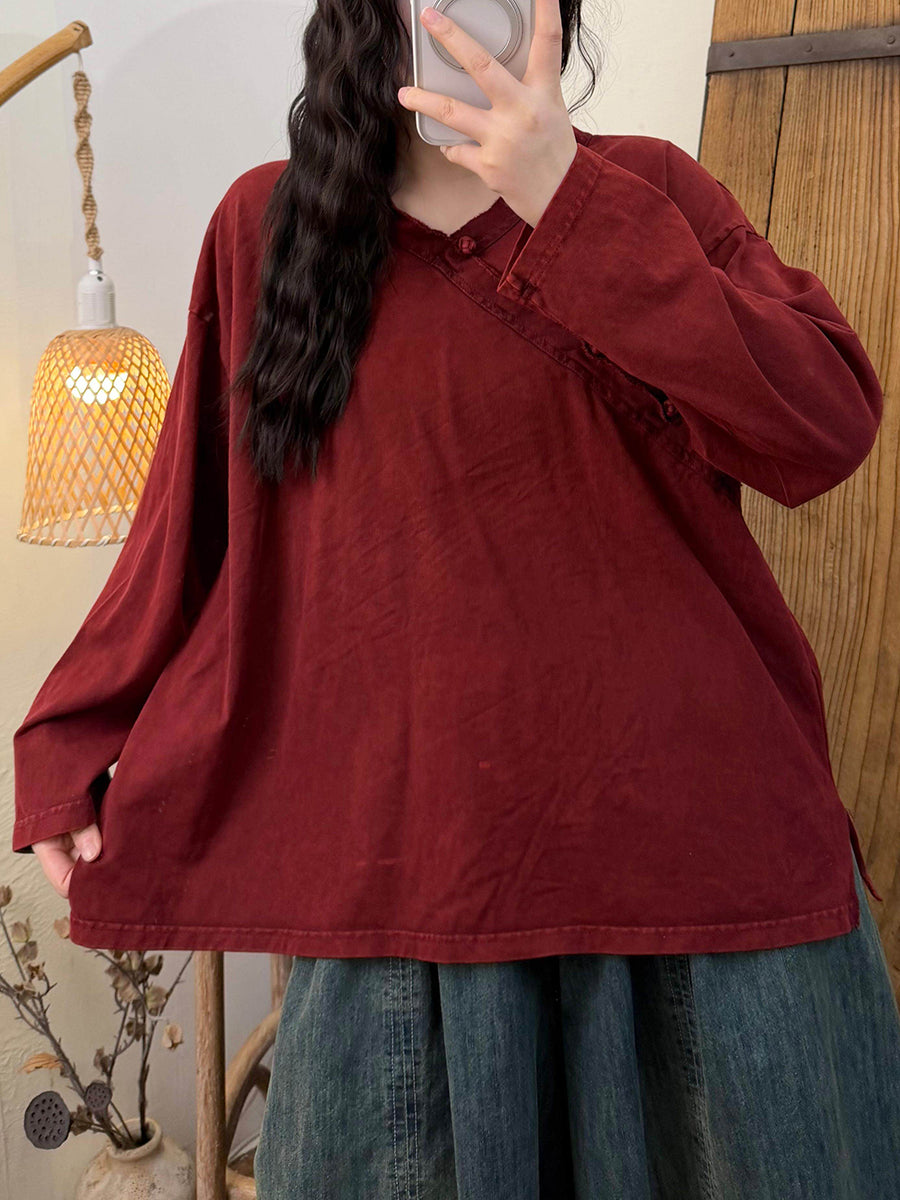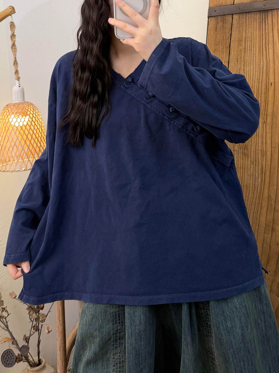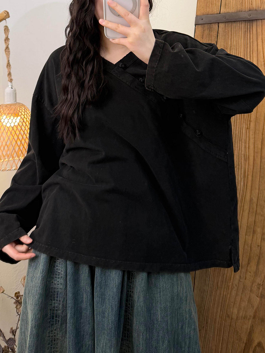 Dámská umělecká jarní vintage bavlněná halenka s výstřihem do V