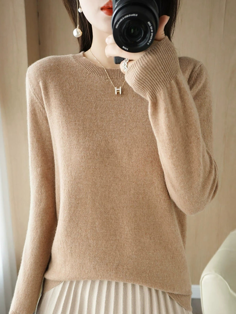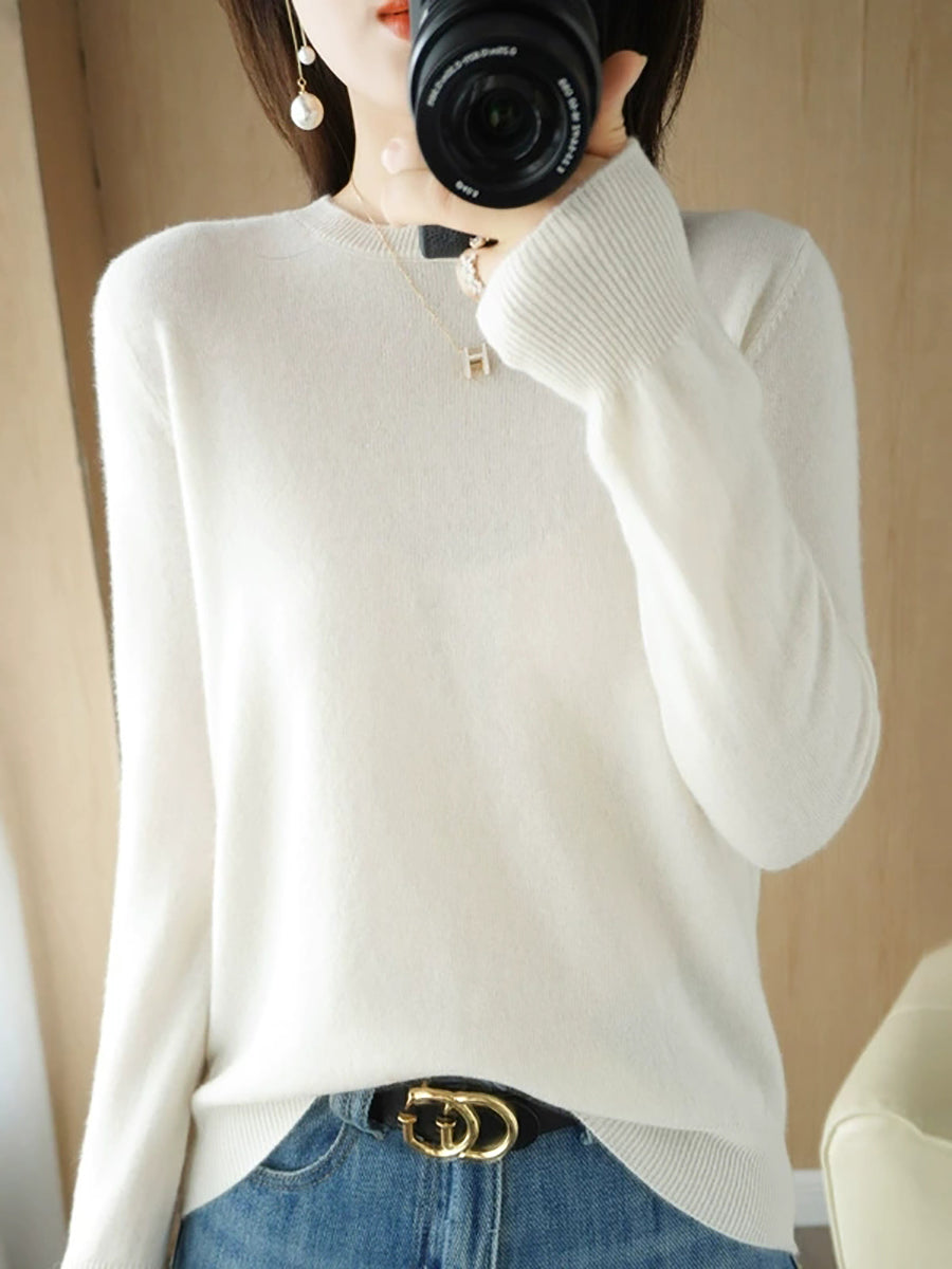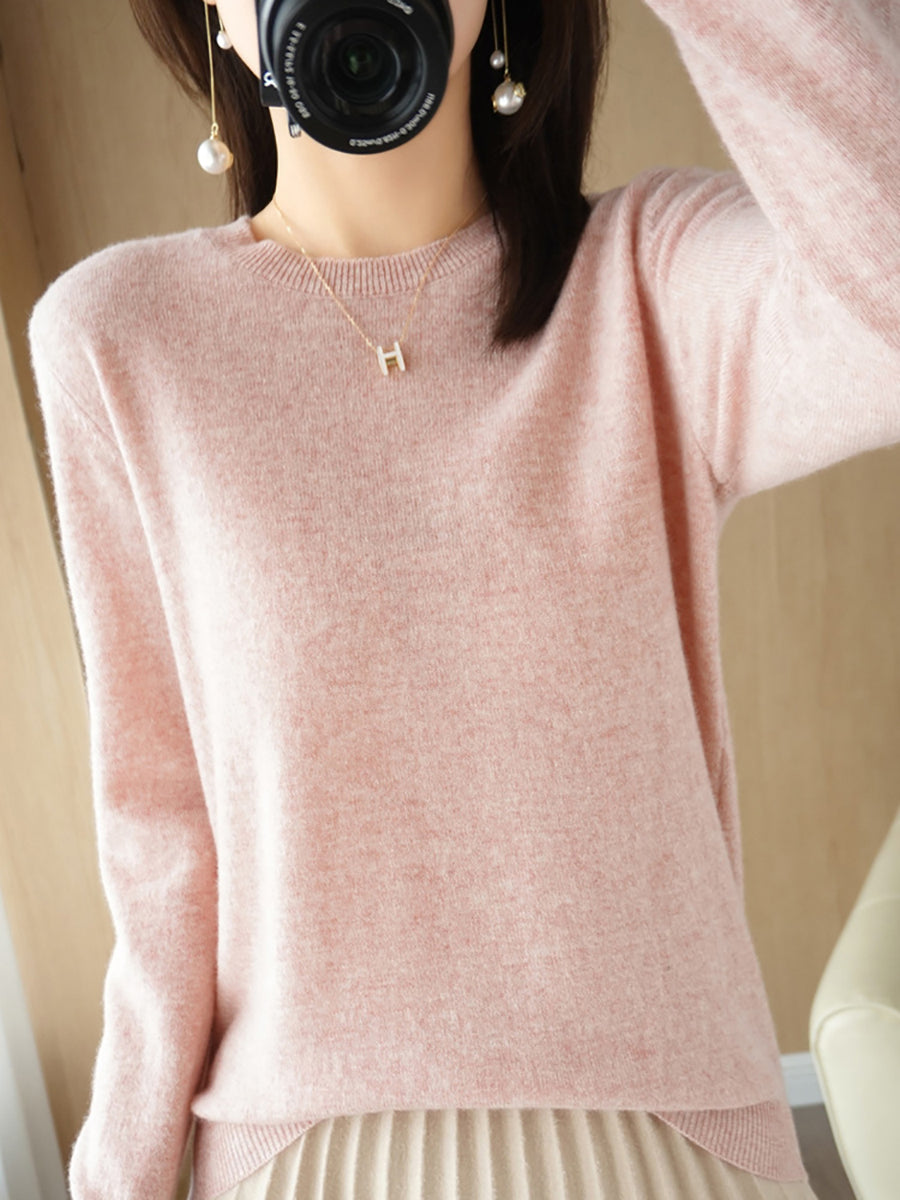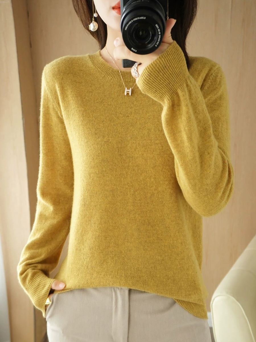 Dámský ležérní jarní čistě barevný svetr s výstřihem do O-neck