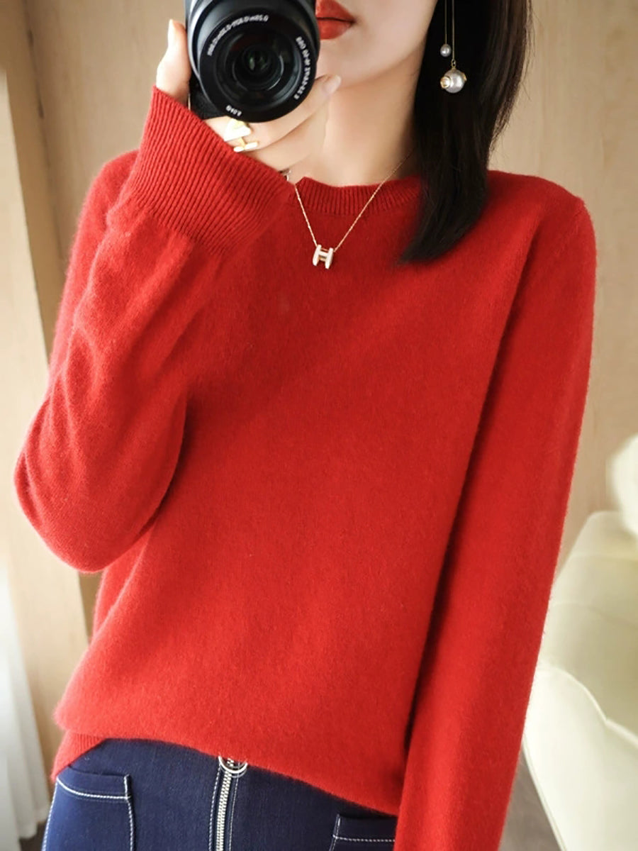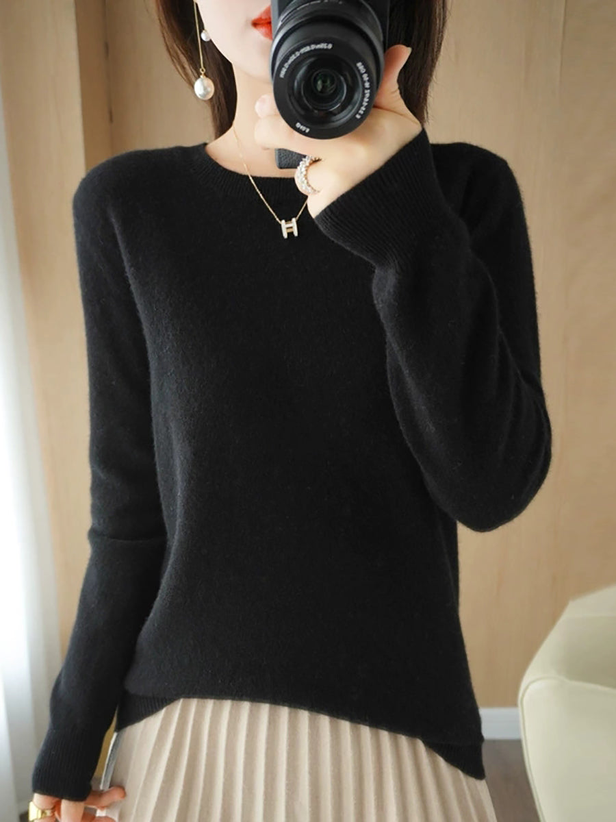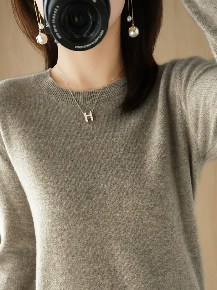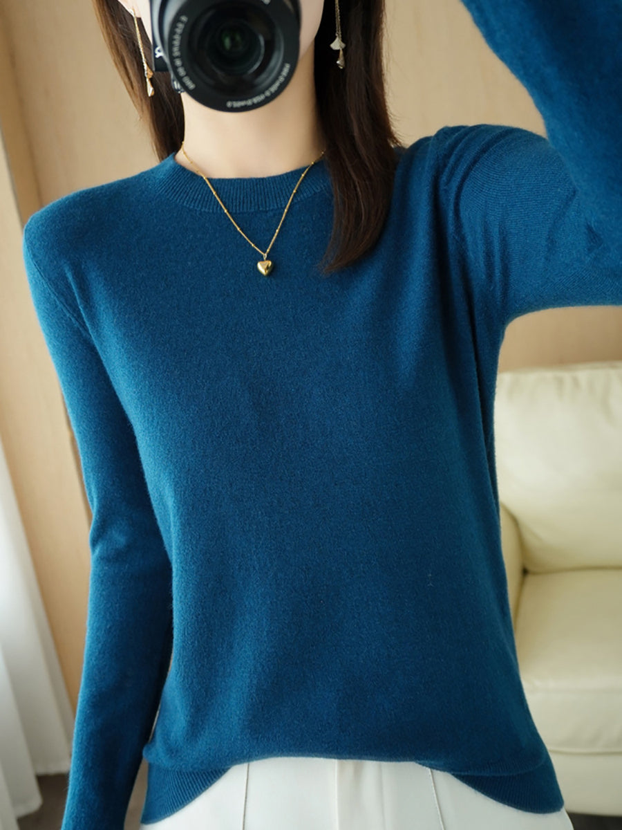 Dámský ležérní jarní čistě barevný svetr s výstřihem do O-neck