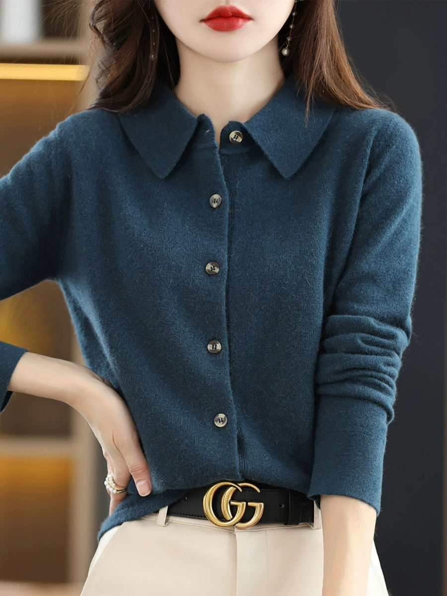 Dámský ležérní jarní kardigan s odkládacím límcem