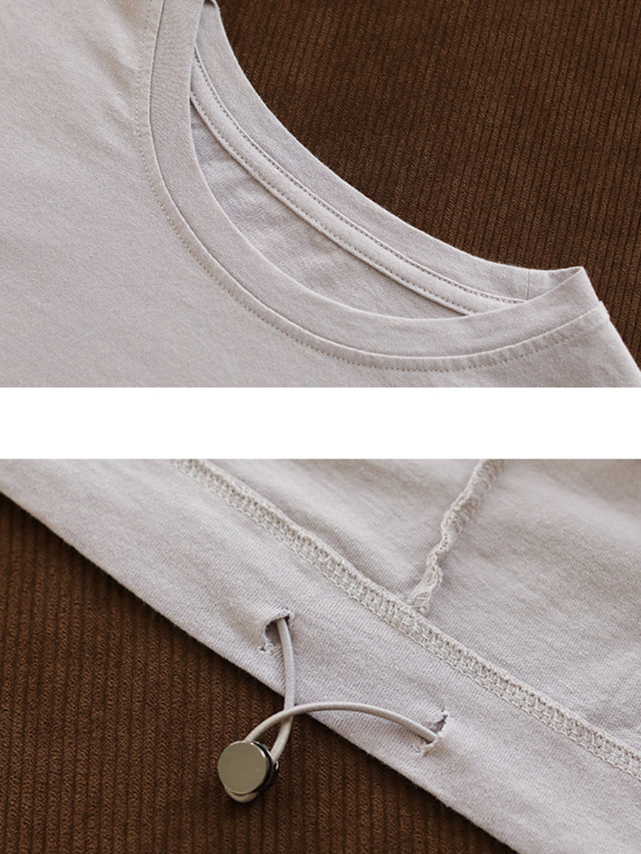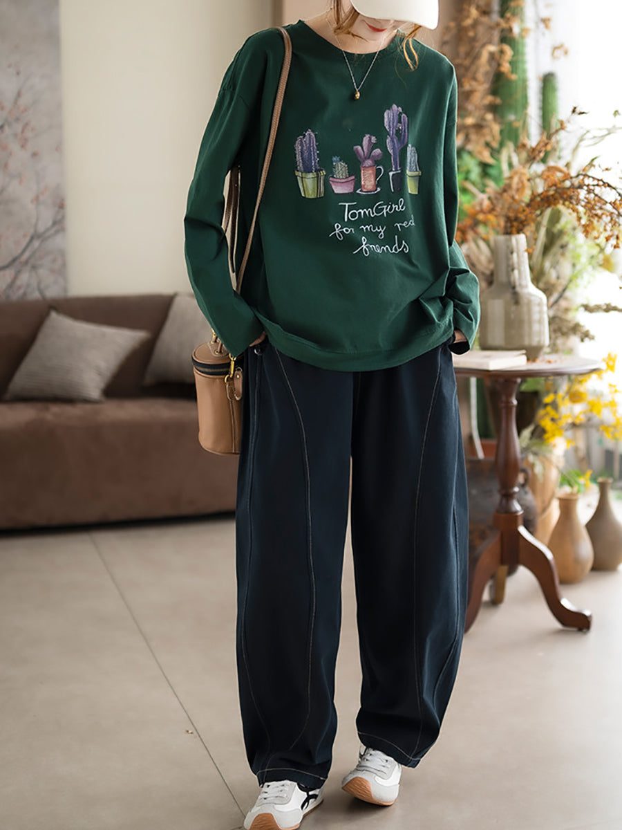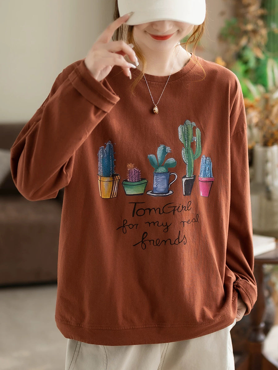 Dámská jarní bavlněná halenka s výstřihem do O-neck s uměleckými rostlinami