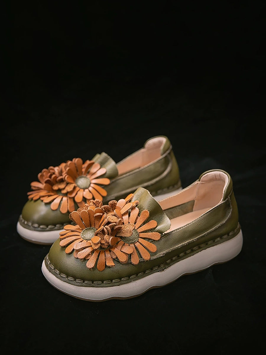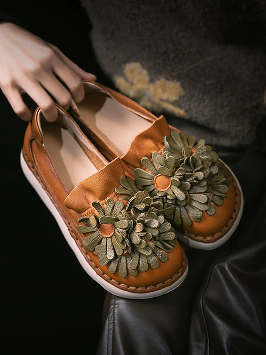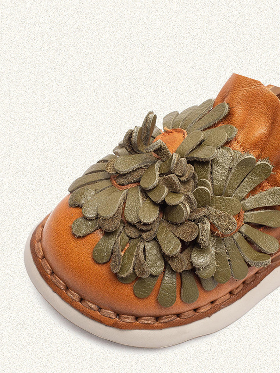 Dámské jarní boty z pravé kůže s květinovým vzorem