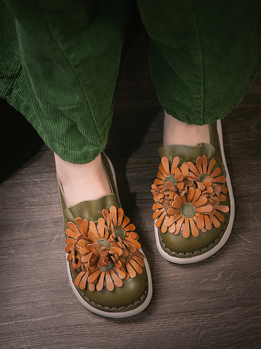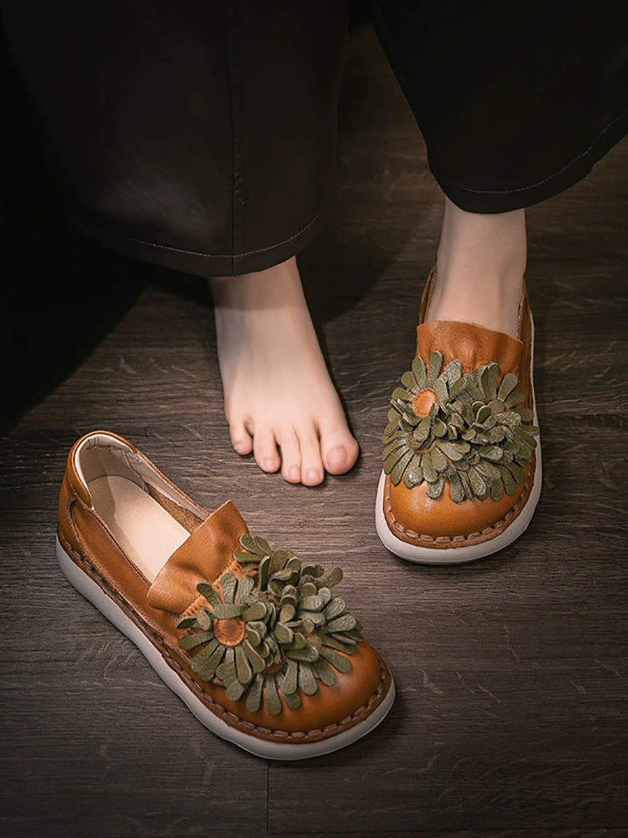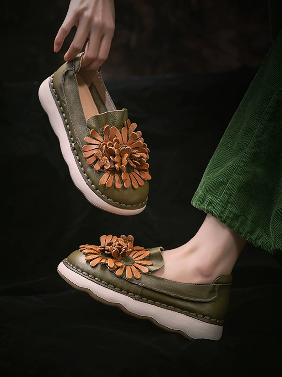 Dámské jarní boty z pravé kůže s květinovým vzorem
